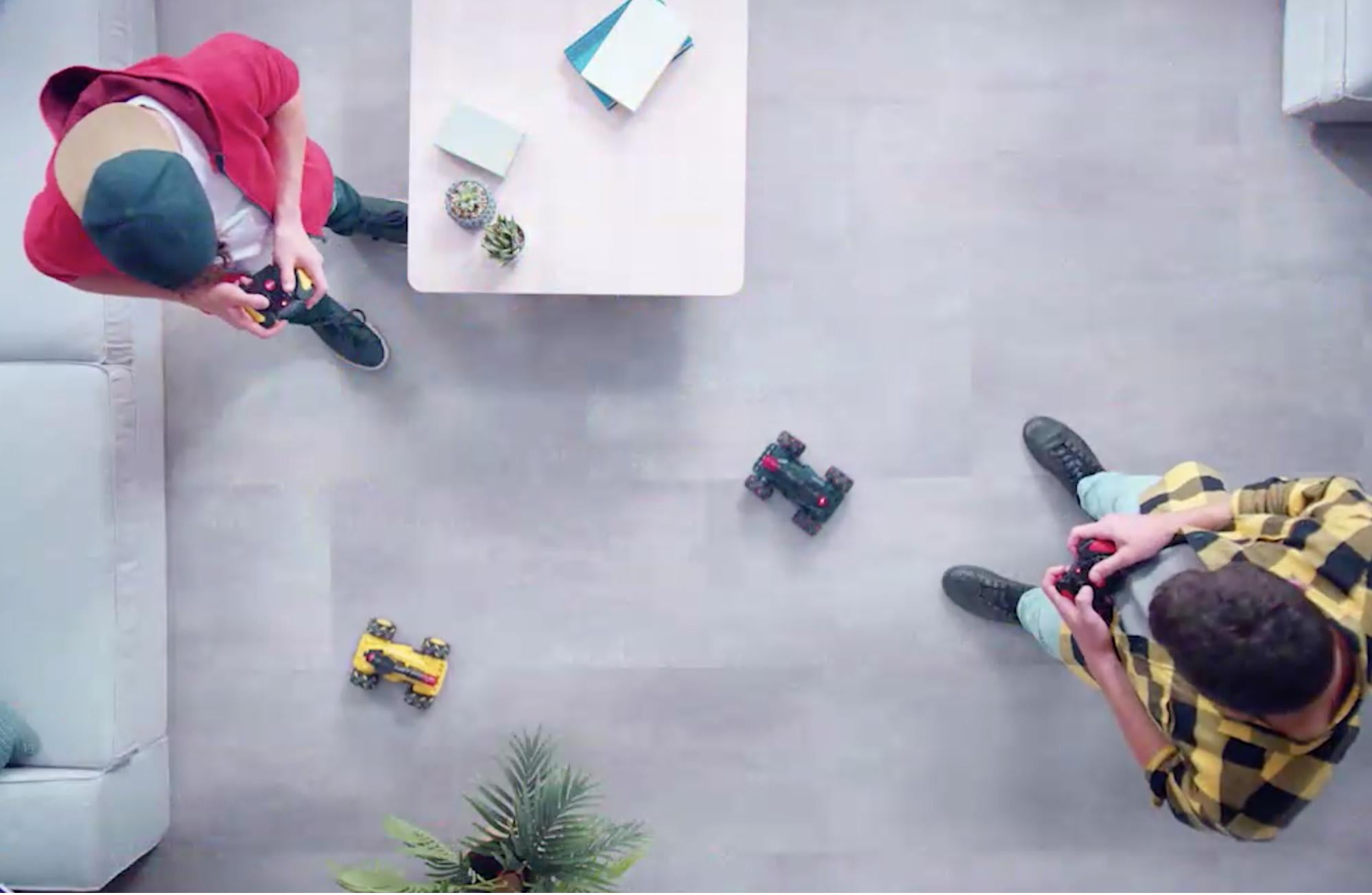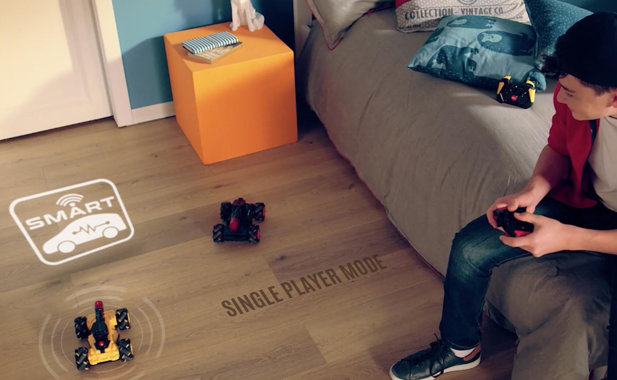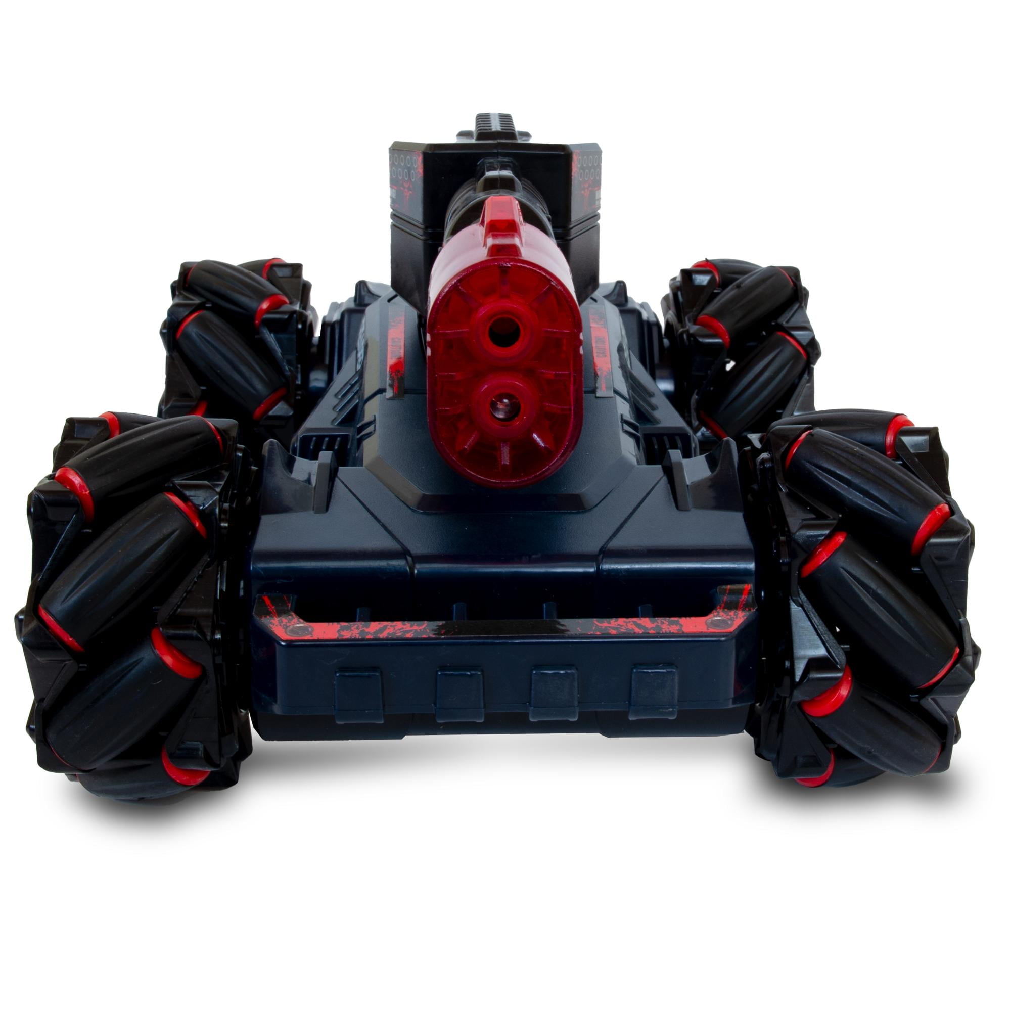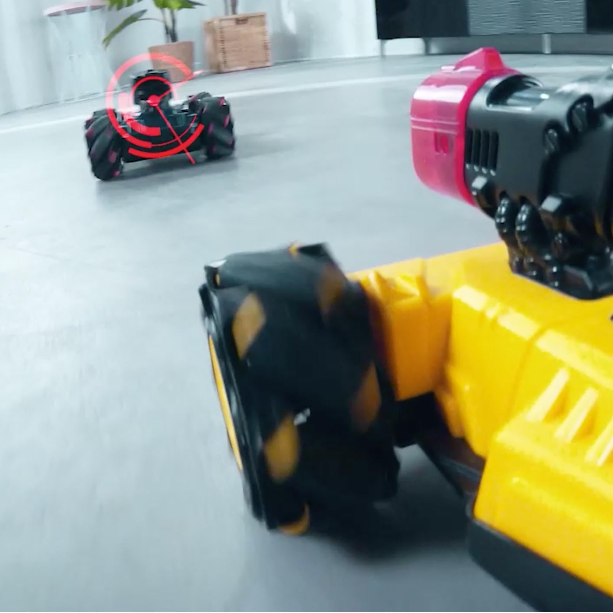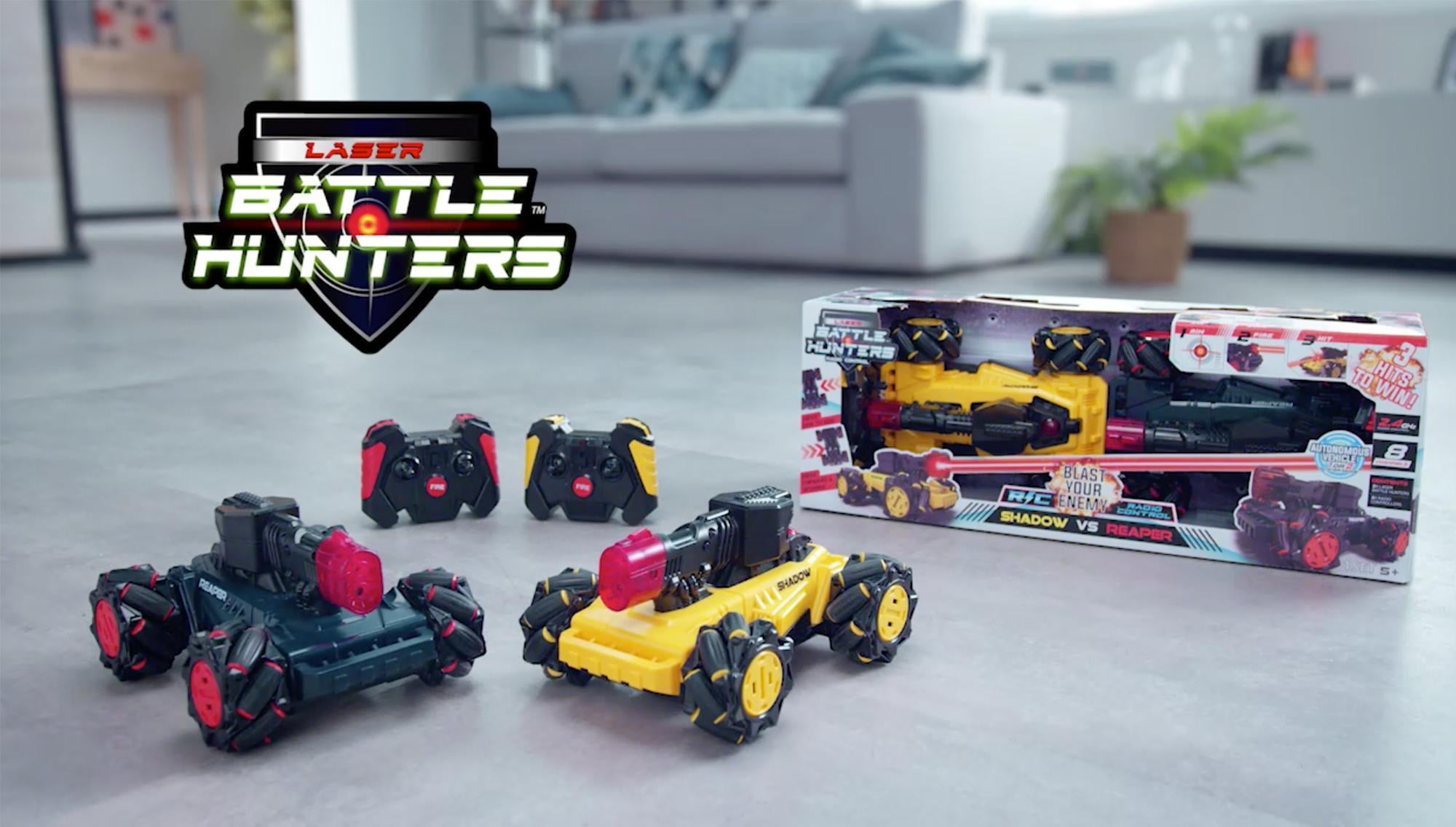 Laser Battle Hunters live up to their name with an amazing laser tag battling experience. Choose Shadow or Reaper then Game On! Single player vs. the smart car or grab a friend and go head-to-head. Ready, aim and fire…attack or be attacked. Three hits and you win. Comes with hi-tech Omniwheels for side-to-side driving in tight spaces, wide open racing or tough terrain. Sneak attack or come in blasting with blazing wide turns and epic drifting. Compatible with up to seven opponents.Lead your assault vehicle into battle with the two-pack Laser Battle Hunter. With 2 controllers equipped with FIRE buttons it’s great game play for kids ages 5+ years and older. These high-quality 2.4GHz radio control vehicles are upgraded with infrared cannons adjustable for indoor or outdoor play. Head-to-head conflict with a friend or switch to single player mode and hone your skills against the autonomous vehicle. With an operating range of 50 feet, laser-like lights and sounds and first-of-its-kind side-to-side crabbing movement you will control the fight in wide open or tight spaces. Group play can accomodate up to seven Laser Battle Hunters.