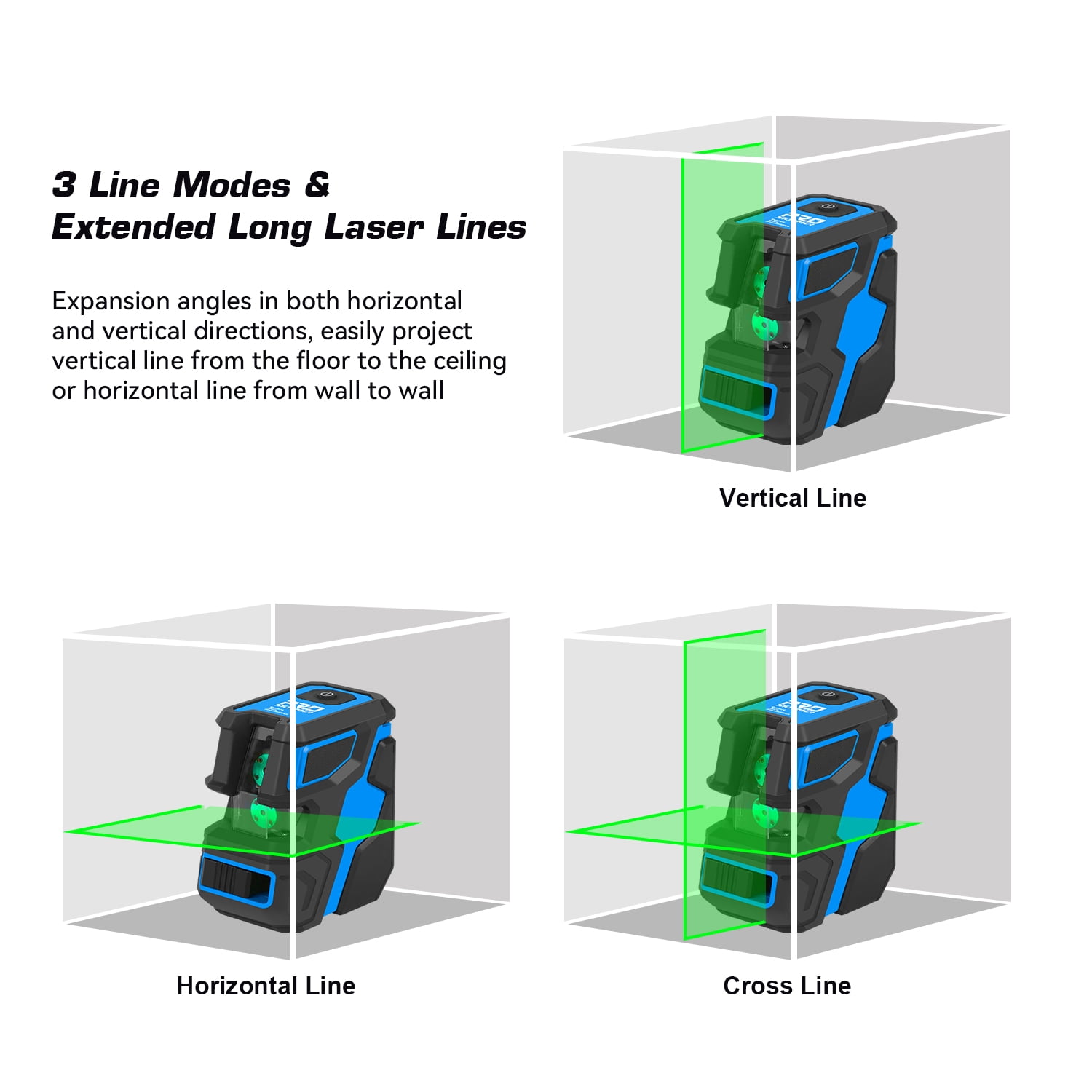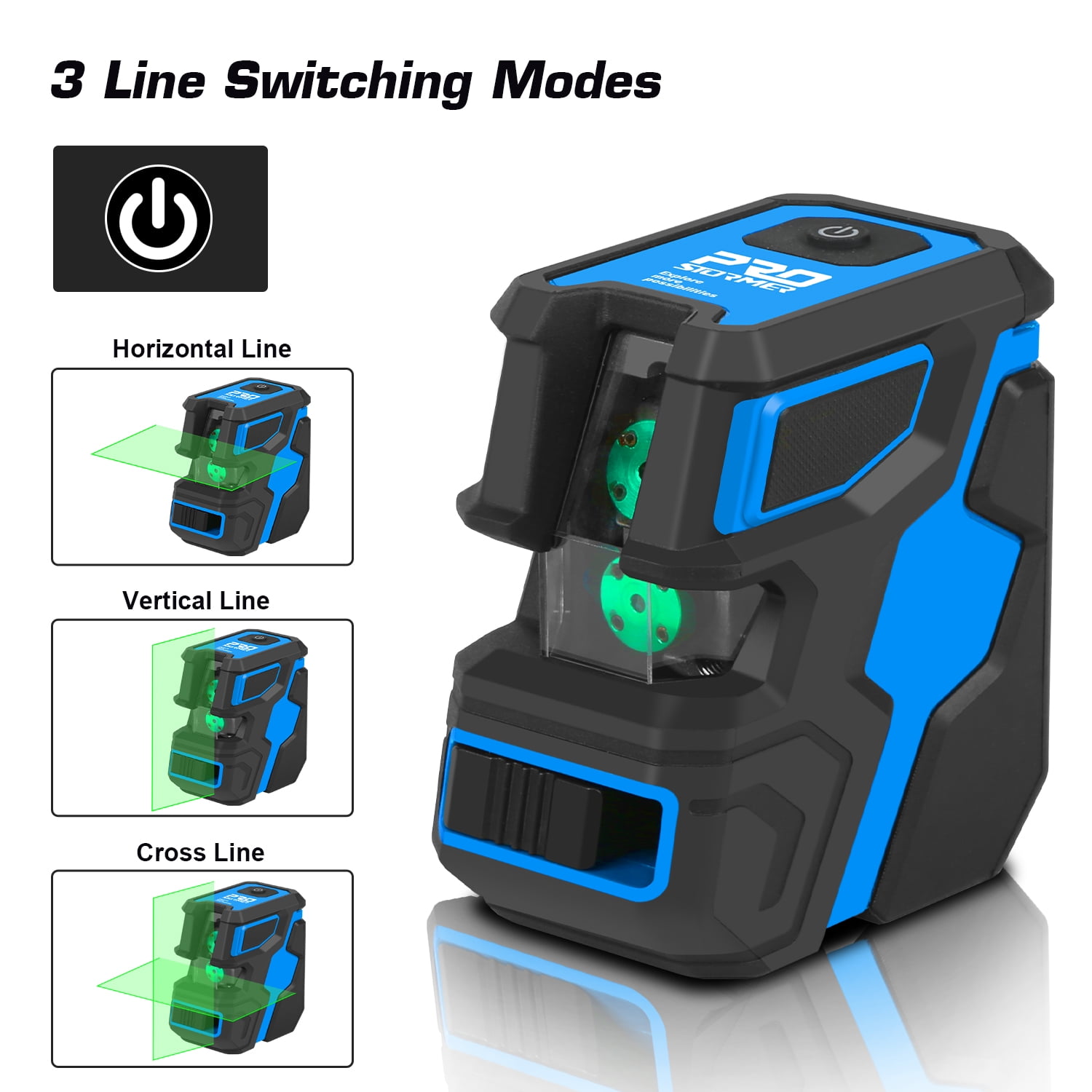 Prostormer Cross-line Laser Level is a high performance alignment tool, featuring with clear and bright laser level lines. Users can select Horizontal line, Vertical line or Cross lines by one button operation. Equipped with an adjustable magnetic stand, The device can be placed on a relatively flat ground or desktop for use, or be connected to a tripod or attached to magnetic surface. It’s ideal for hanging pictures, laying tiles, installing photos, wallpapering work, construction and home decoration, etc.