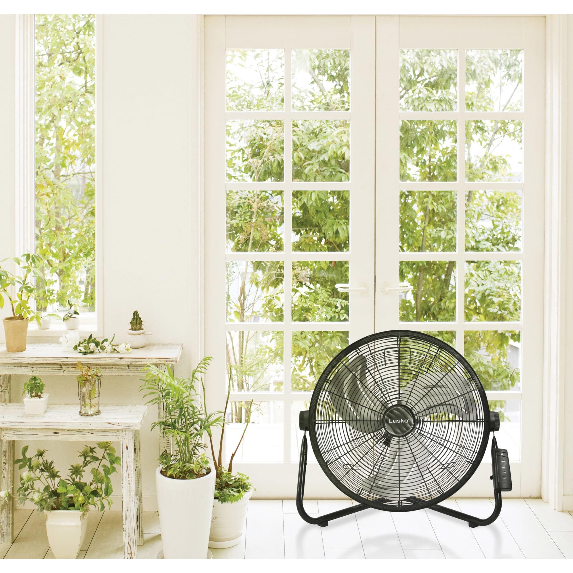 20-Inch metal fan blades 3 Powerful Speeds Comes with a remote control for easy operation QuickMount® for easy conversion from floor to wall mount Durable tubular steel construction with rubber pads to protect surfaces Pivots to direct air flow Comfortable carrying handle Ideal for garages, basements, and more Equipped with Lasko’s trusted, fused safety plug 1-year limited warranty