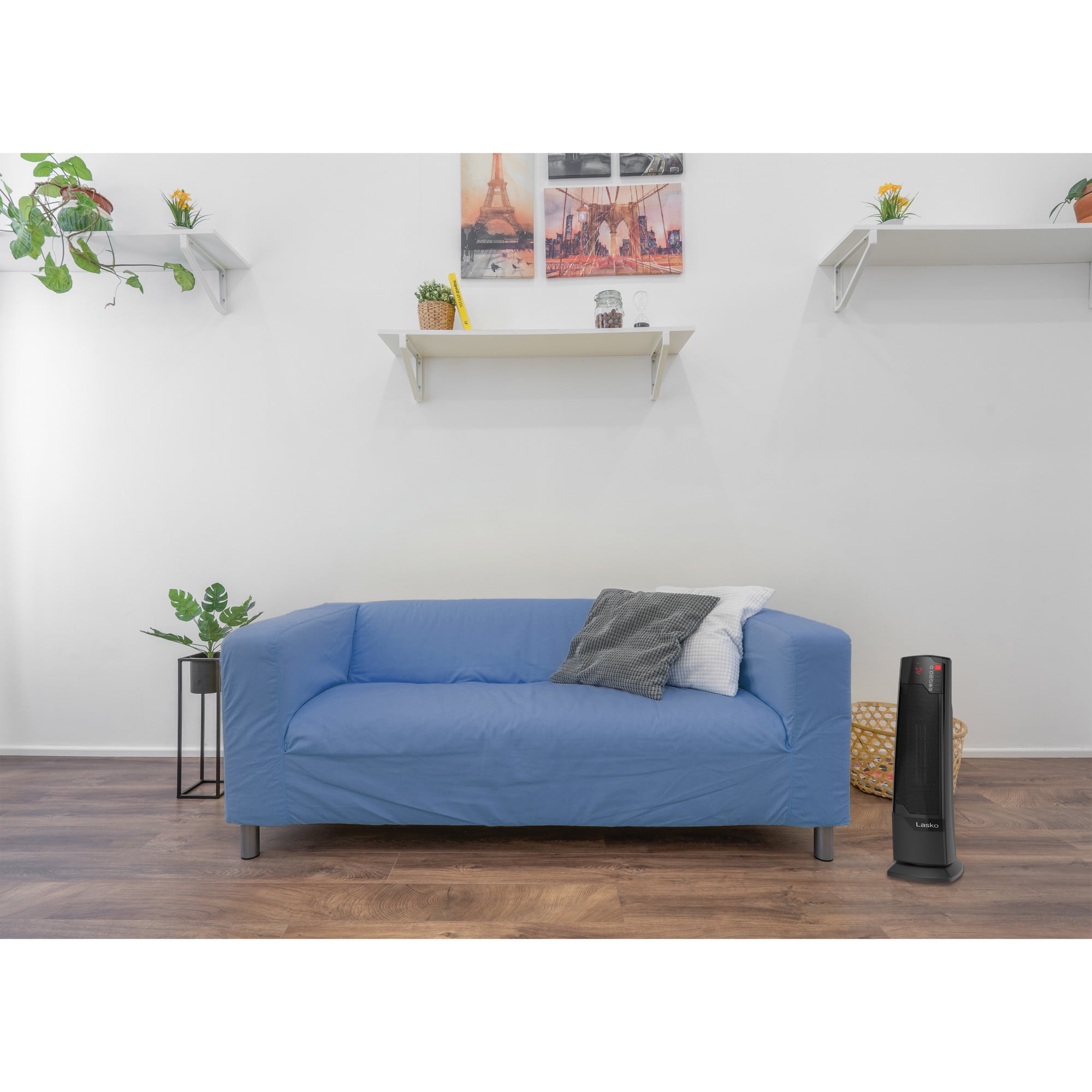 Triple Safe: Safety features include 3x overheat protection, auto shut-off and cool touch housing Two Heat Settings: Select from high heat or low heat to customize your comfort day or night Easy to Use: Features simple, Comfort Select controls and large digital display that is easy to read Energy-Efficient Heating: The adjustable thermostat automatically adjusts heat output to help conserve energy while maintaining your desired temperature Customizable Timer: The auto-off timer can be set for up to 8-hours for convenience Widespread Oscillation: Evenly distributes warm air across the room for consistent, whole-room comfort Remote Control: The multi-function remote control operates all the heater functions from a distance Ideal for Large Rooms: This space heater is perfect for bedrooms, living rooms, home offices and more Portable and Lightweight: Built-in carry handle makes it easy to move from room to room Ready to Use: Comes fully assembled with a 3-year limited warranty