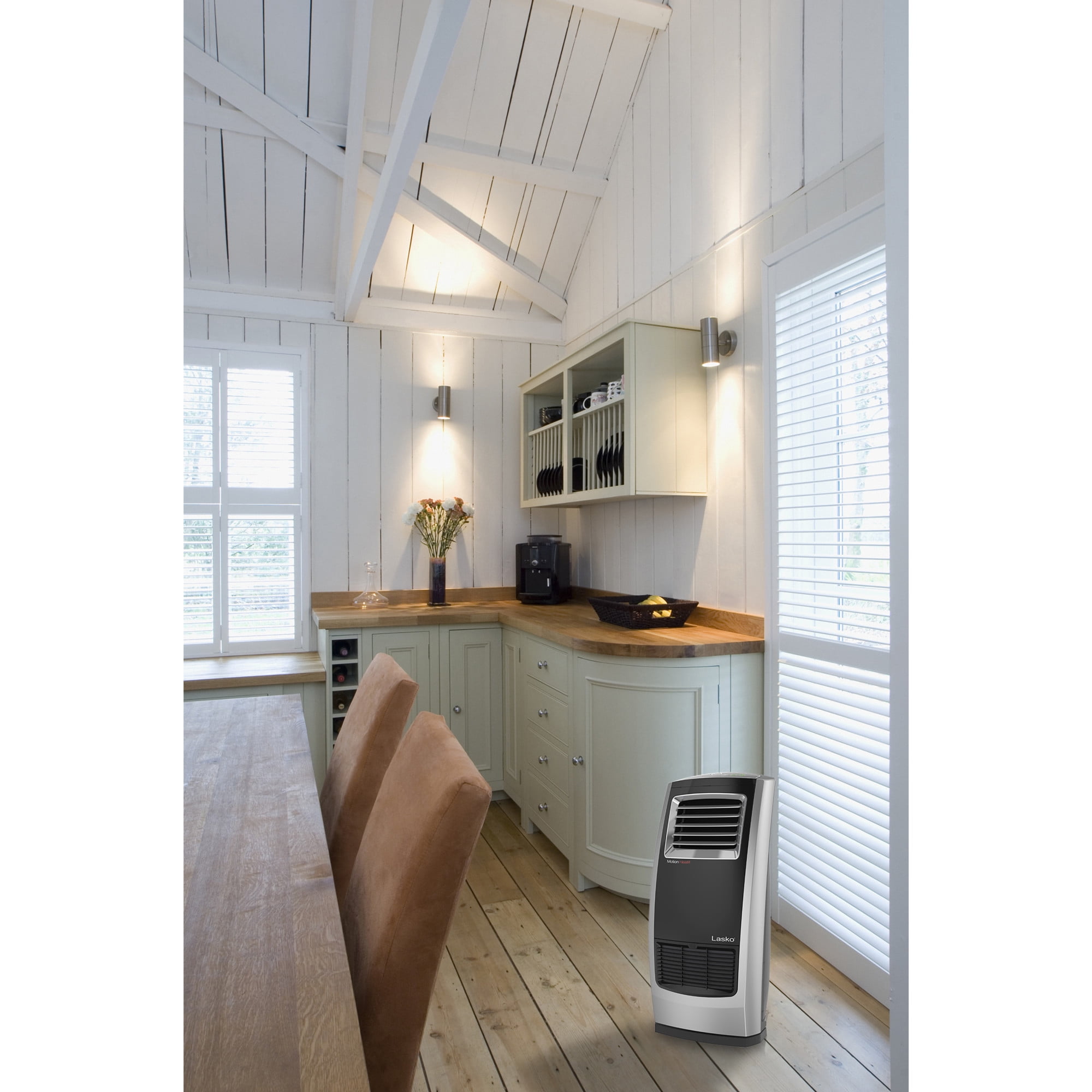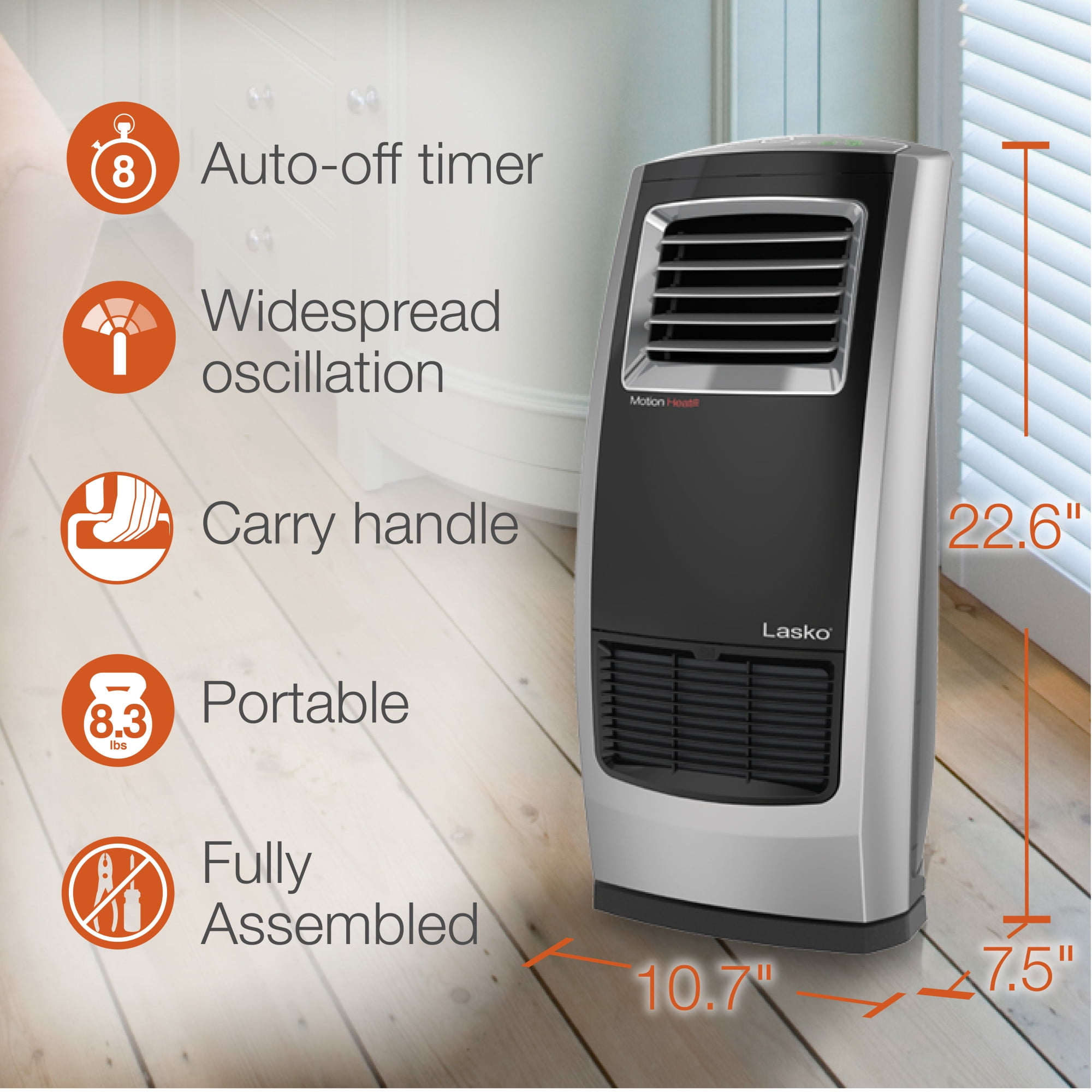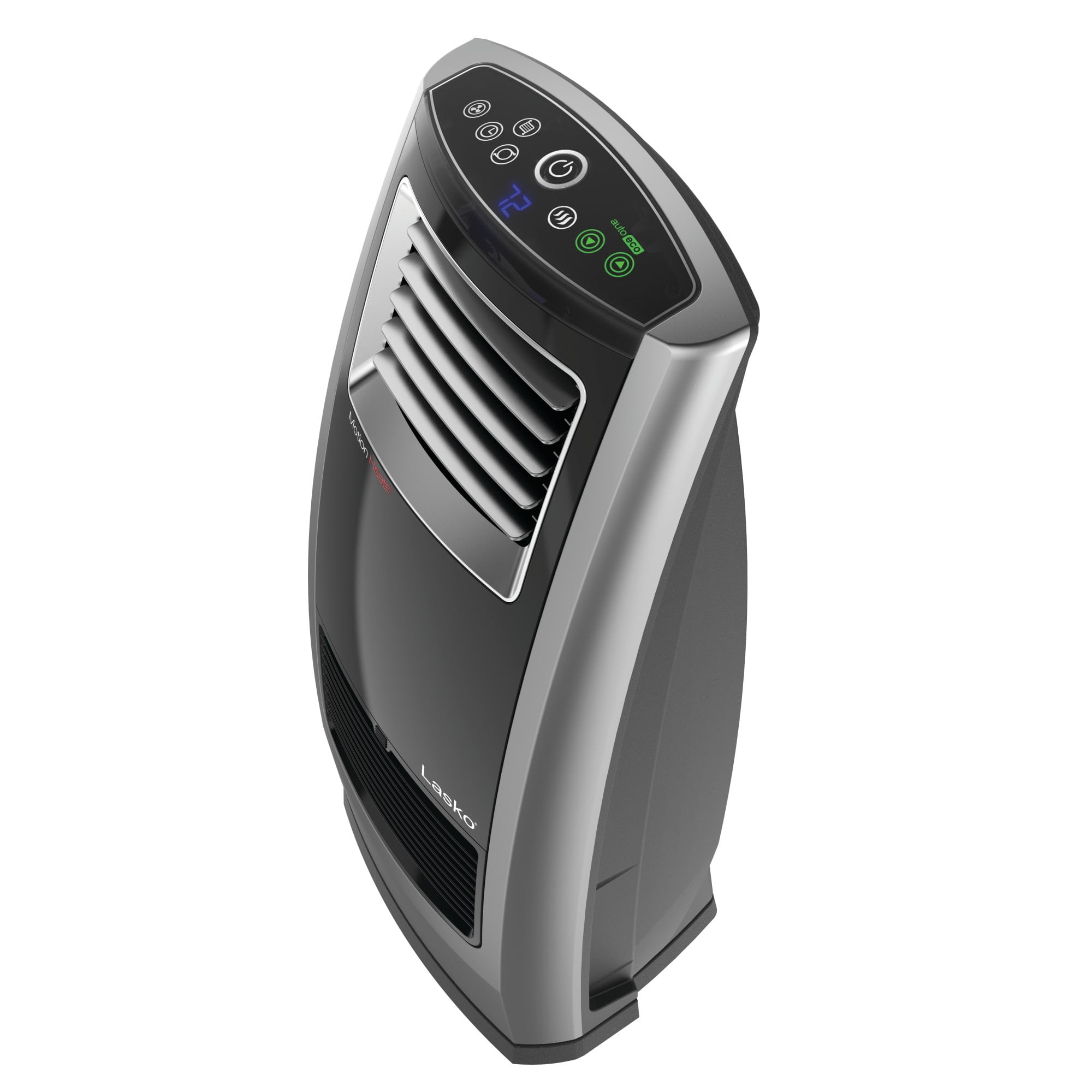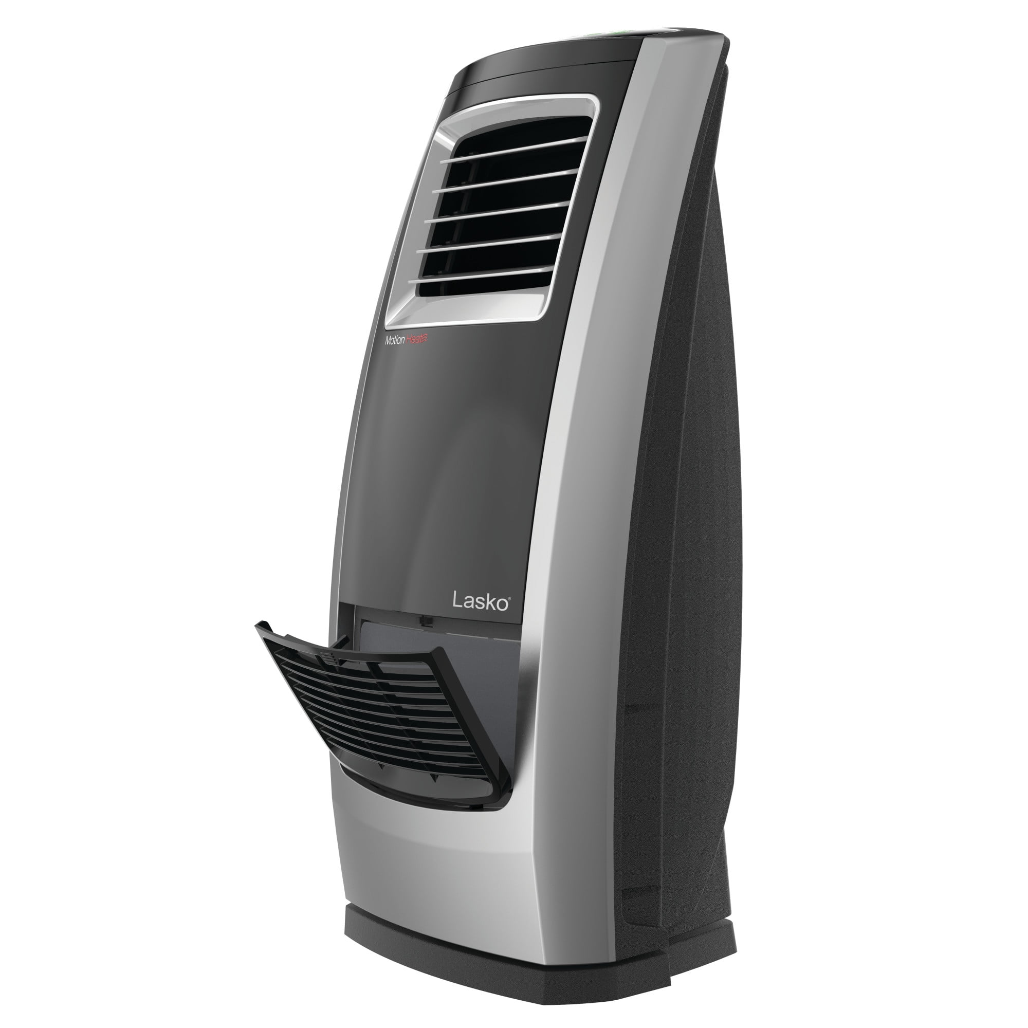 Lasko 22.5″ 1500W Motion Heat Plus Ceramic Room Heater with Remote, Black/Silver, CC23185