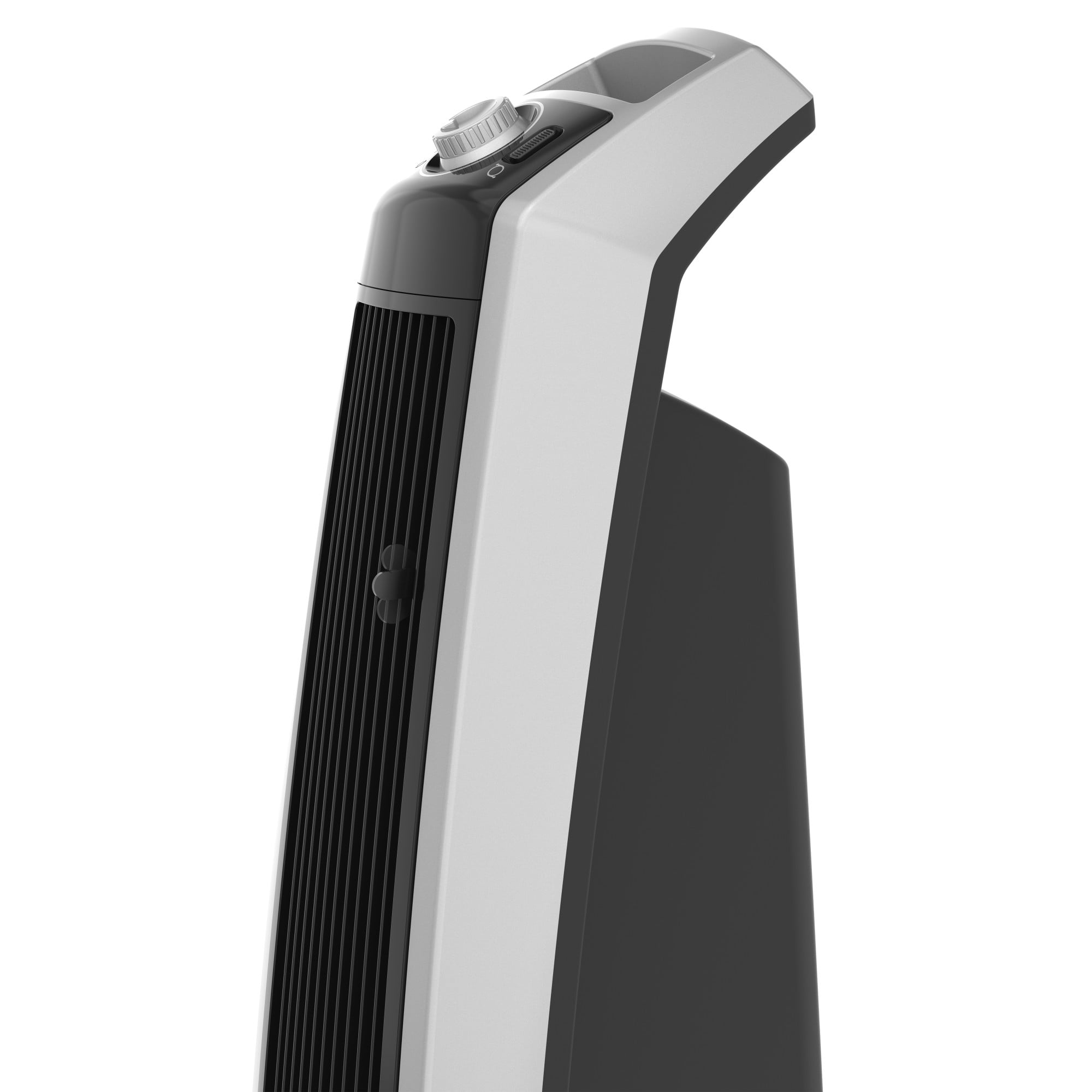 Space-saving tower fan design for home or office High-powered motor for maximum performance 3 powerhouse speeds Fully assembled and ready for use Directional louvers for precision air delivery Easy-to-use, top-mounted manual controls Oscillation for broad room coverage Easy-grip carry handle for simple portability Features patented safety fuse technology Durable construction and powerful air velocity make this ideal for garages, basements, and more