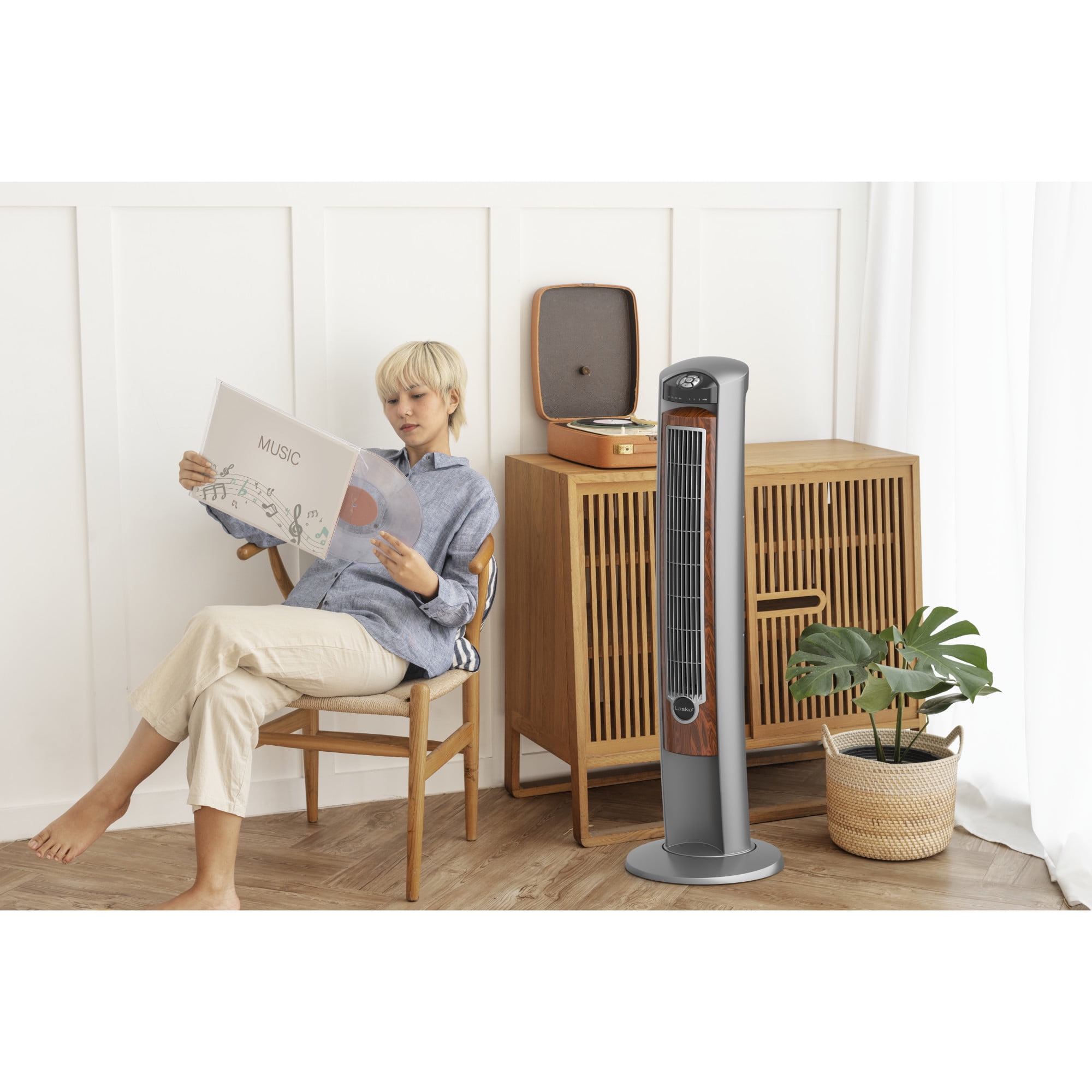 Lasko Wind Curve 42″ 3-Speed Oscillating Ionizer Remote Controlled Tower, Gray/Brown, 2554