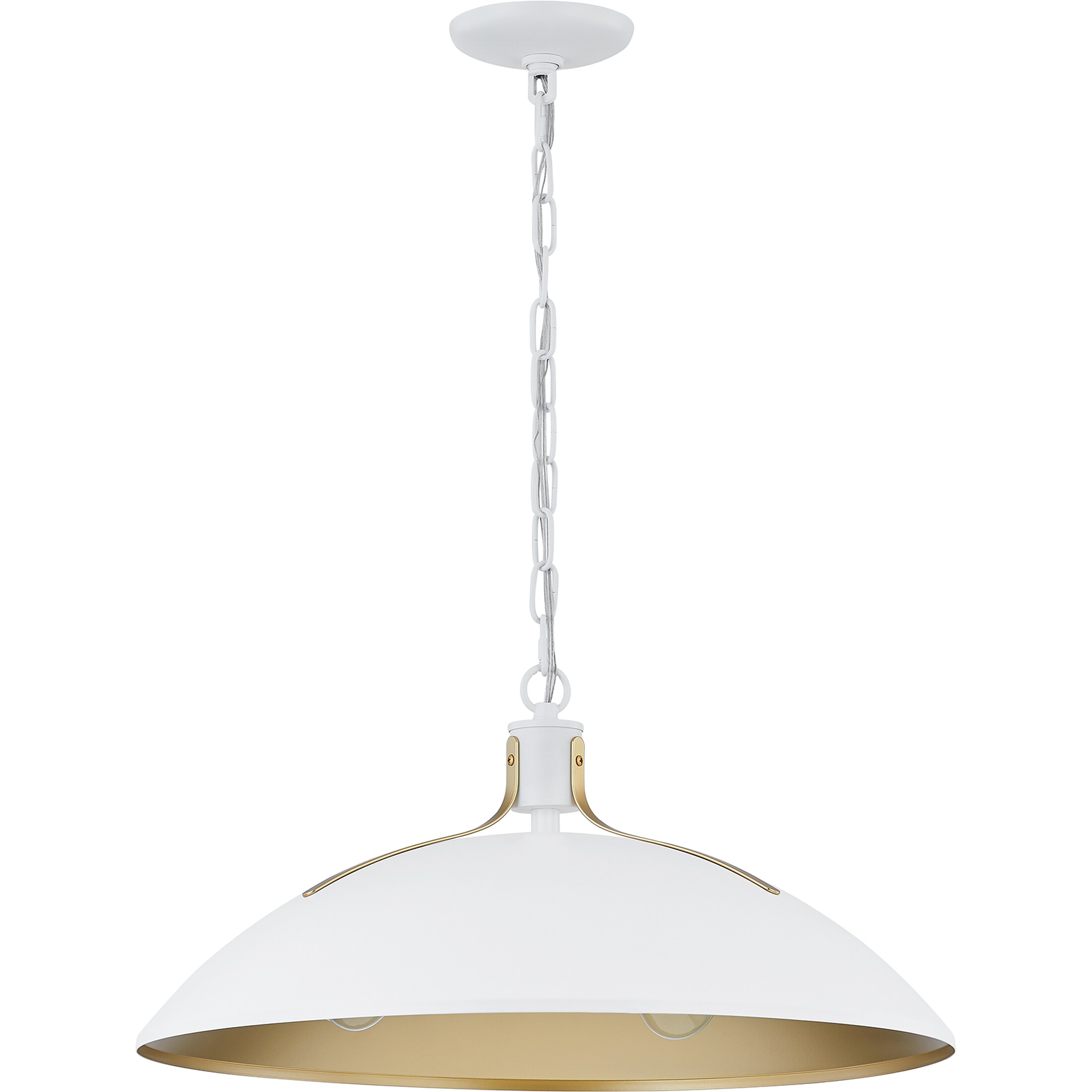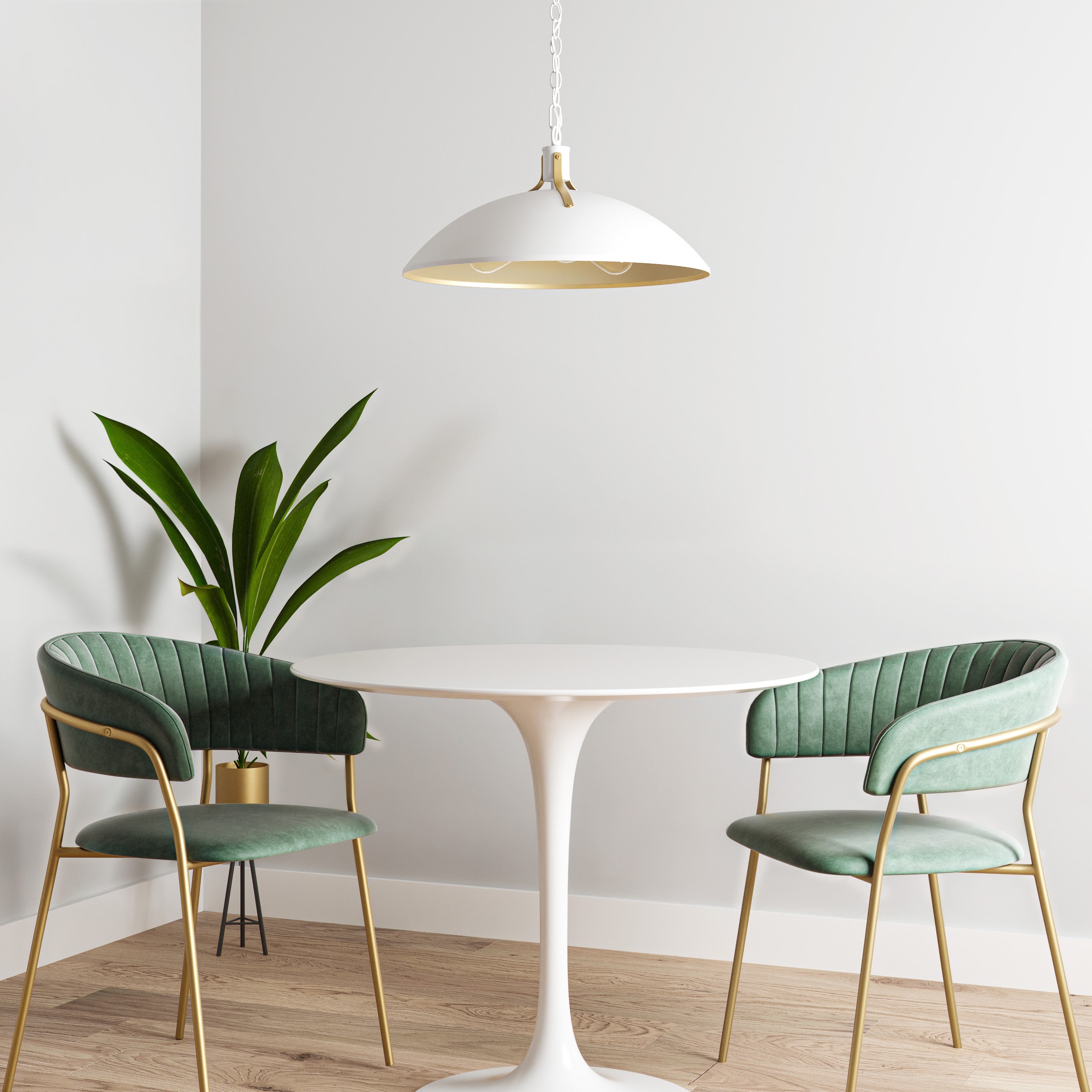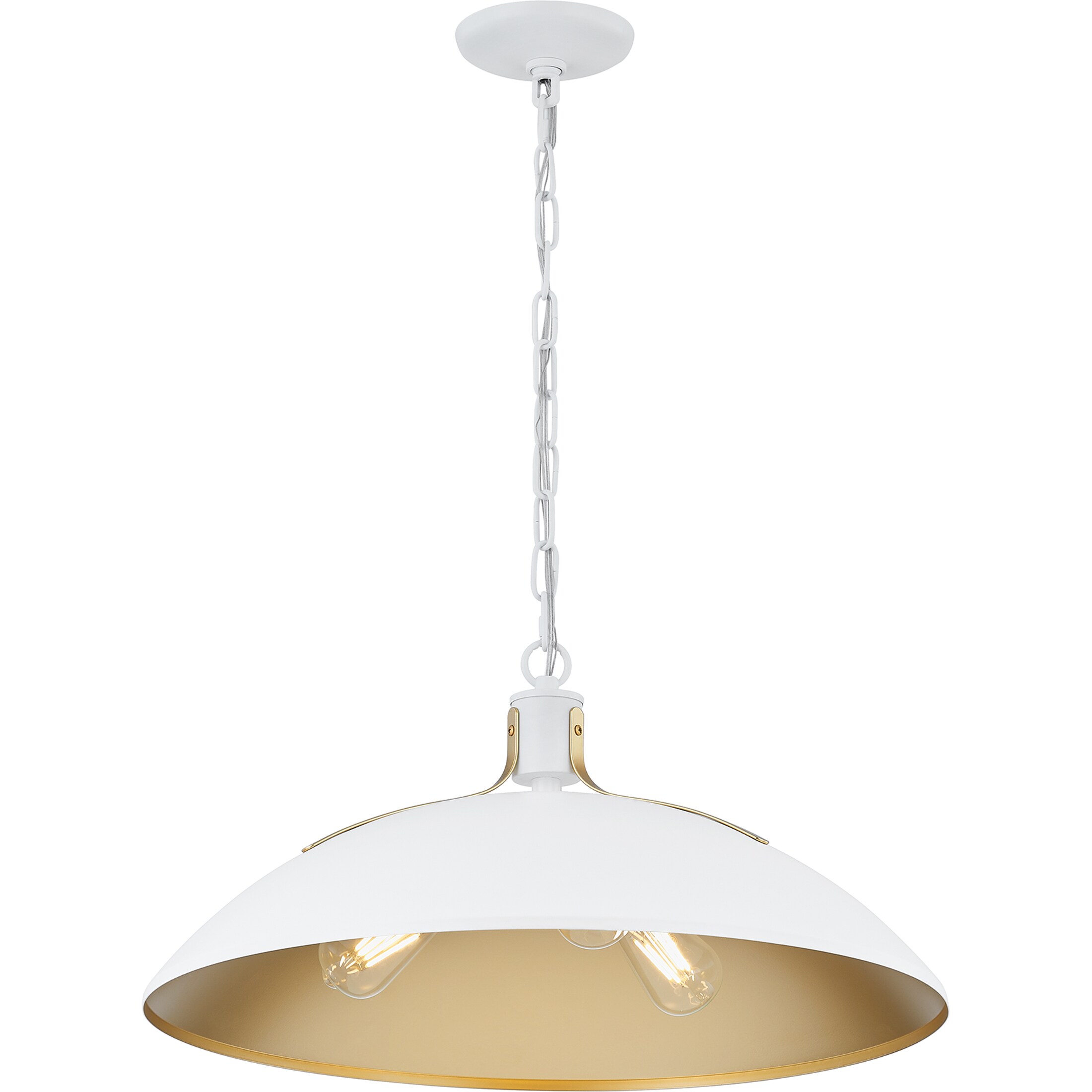 Add a touch of mid-century modern appeal with this striking 3-light pendant light. This fixture offers a matte white finish that is gorgeously contrasted by nouveau gold accents. Perfect addition to any entryway, bedroom, living room, or dining room. Height adjustable to pair with varying ceiling heights and design styles. Shop the rest of the Lassen collection for additional colorways.