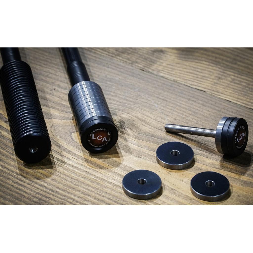 These weights are the same size overall as a standard 1oz. stainless steel weight but weigh 3oz. This gives you the ability to cut down on your weight length which then cuts down your overall stabilizer length as a whole. These weights are not threaded and require the weight cap and stud. The weights are sold individually.