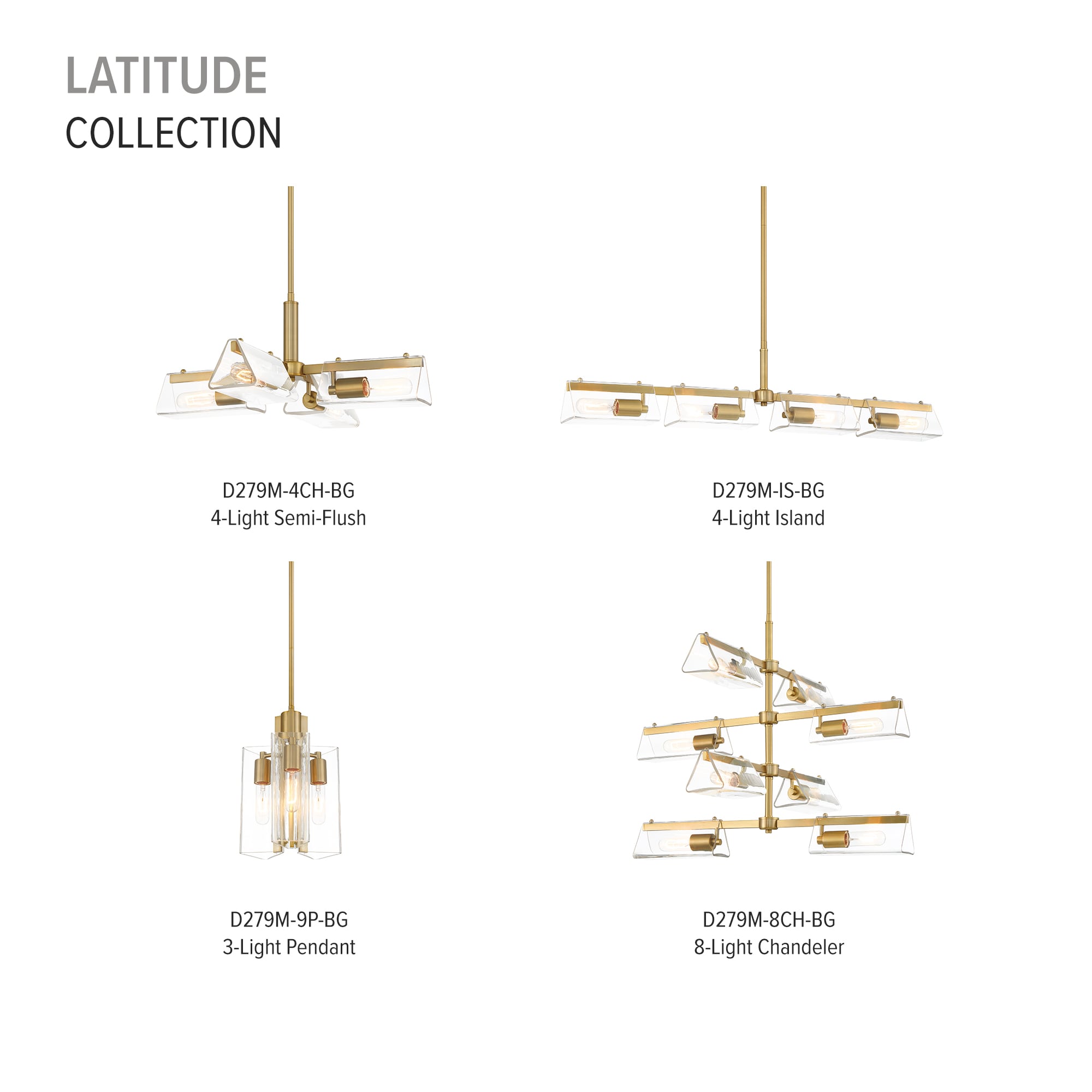 Luxury meets a Modern aesthetic in the new Latitude collection from Designers Fountain. The brushed gold finish and triangular clear glass shades provide an elegant lighting solution that works well with many interior décors and styles. Latitude offers a full family of products that can go in bedrooms, bathrooms, living spaces, dining areas, entryways, and more! Add some modern elegance to your home today with the Latitude collection.