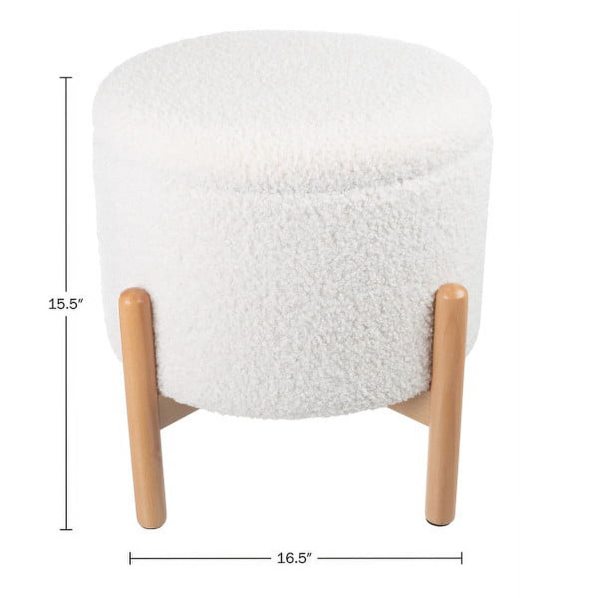 Bring the best of style and function to your home with the Round Storage Ottoman by Lavish Home. This comfortable ottoman with storage for living room features a premium white teddy plush Sherpa fabric outer cover with a highly resilient soft padded lid. This multipurpose small ottoman is great for use as a foot rest, bed stool, storage organizer, and more. It makes a wonderful stylish addition to any bedroom, living room, dorm, or utility room while keeping your belongings organized.