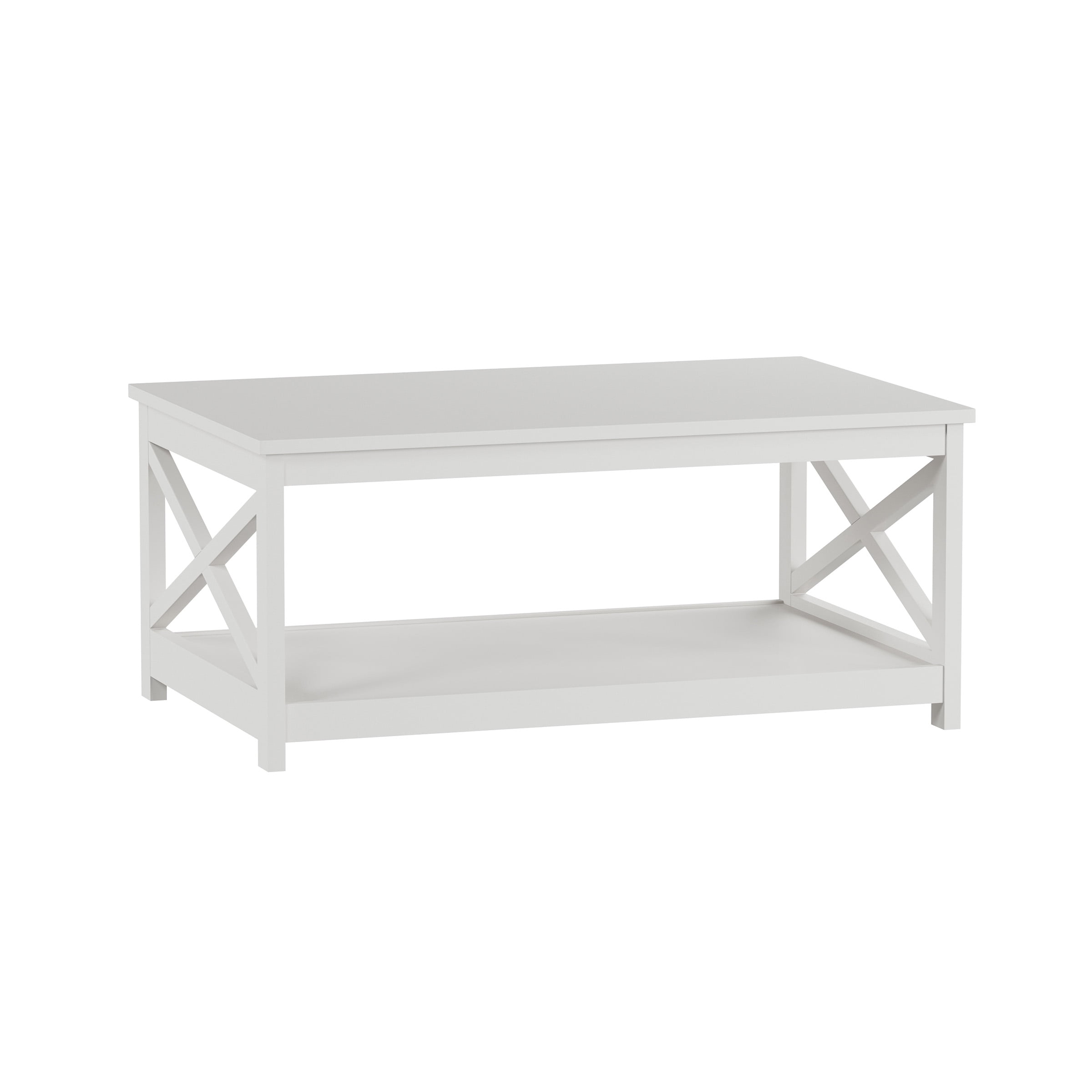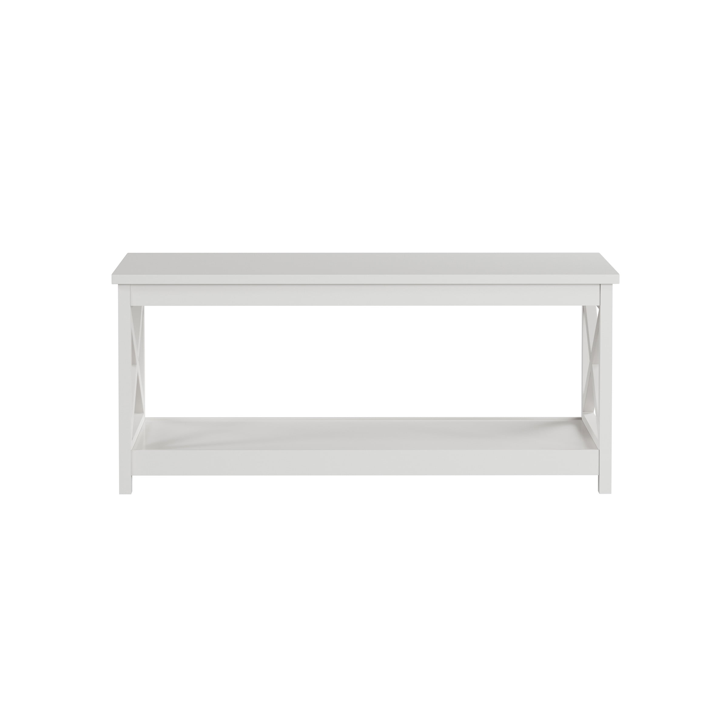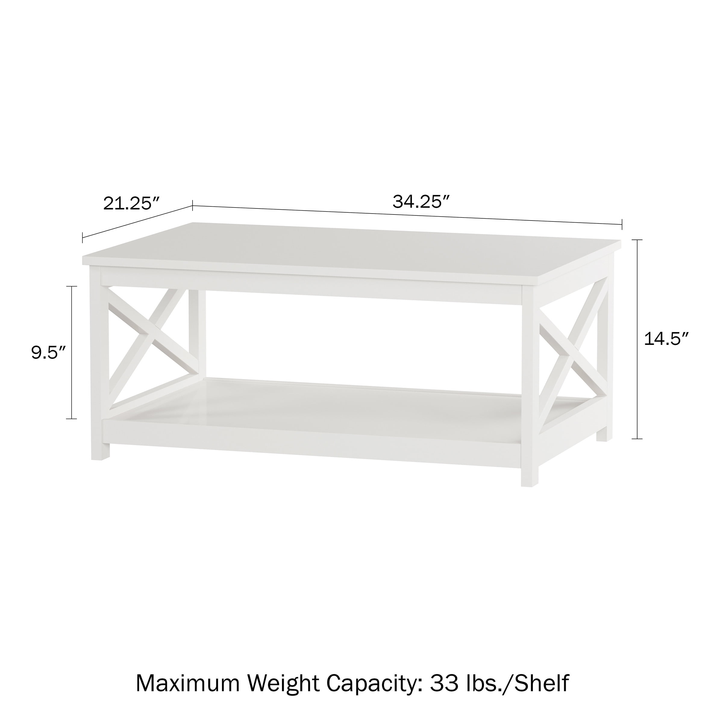 Lavish Home 34 in. Coffee Table, 2-Tiered Wood Sofa Table, Low Profile and X-Leg Design Living Room Furniture for Storage, Display and TV Stand, White
