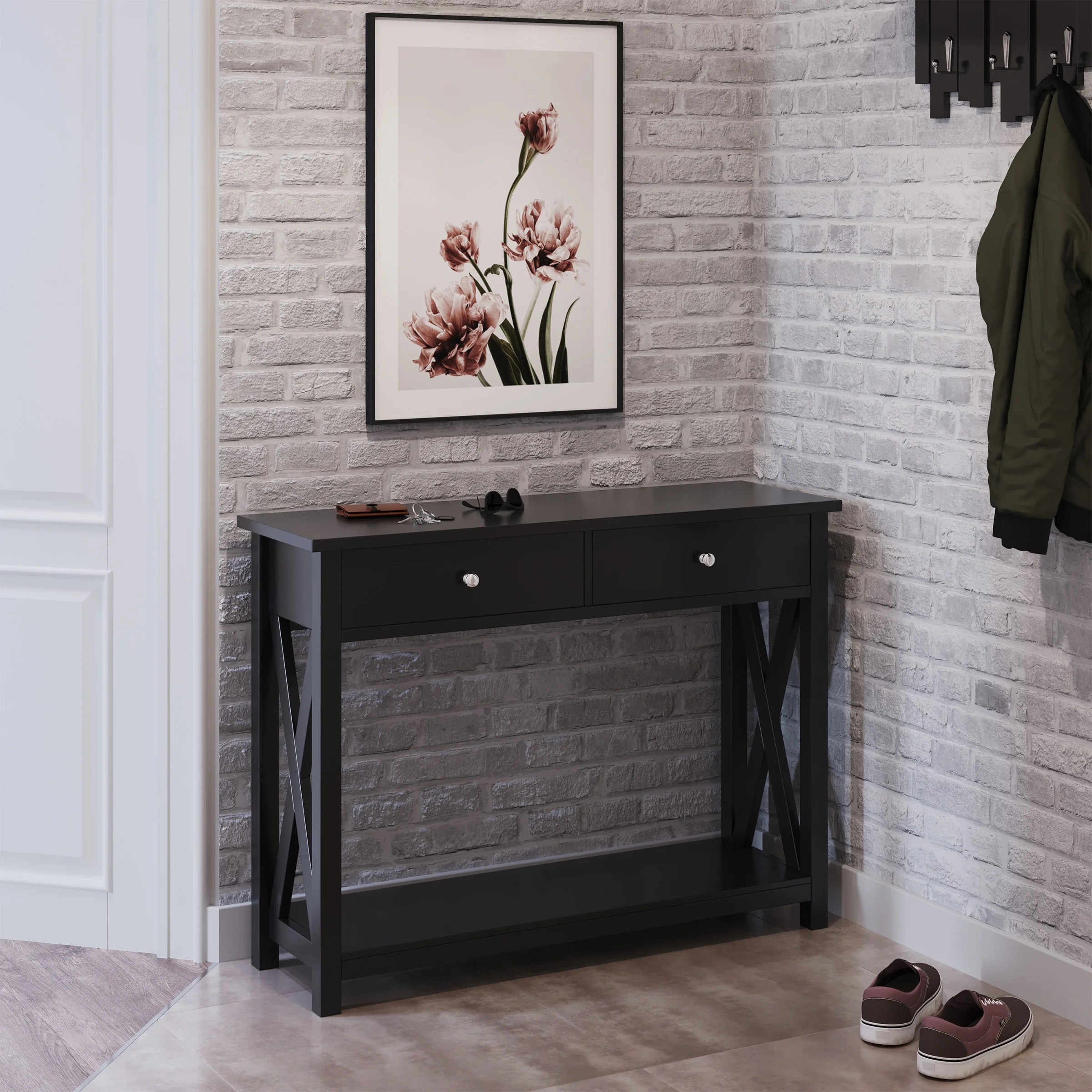 Lavish Home Console 2-Tier Entryway Table with Two Drawers, Storage Shelf, and X-Braced Legs, Black