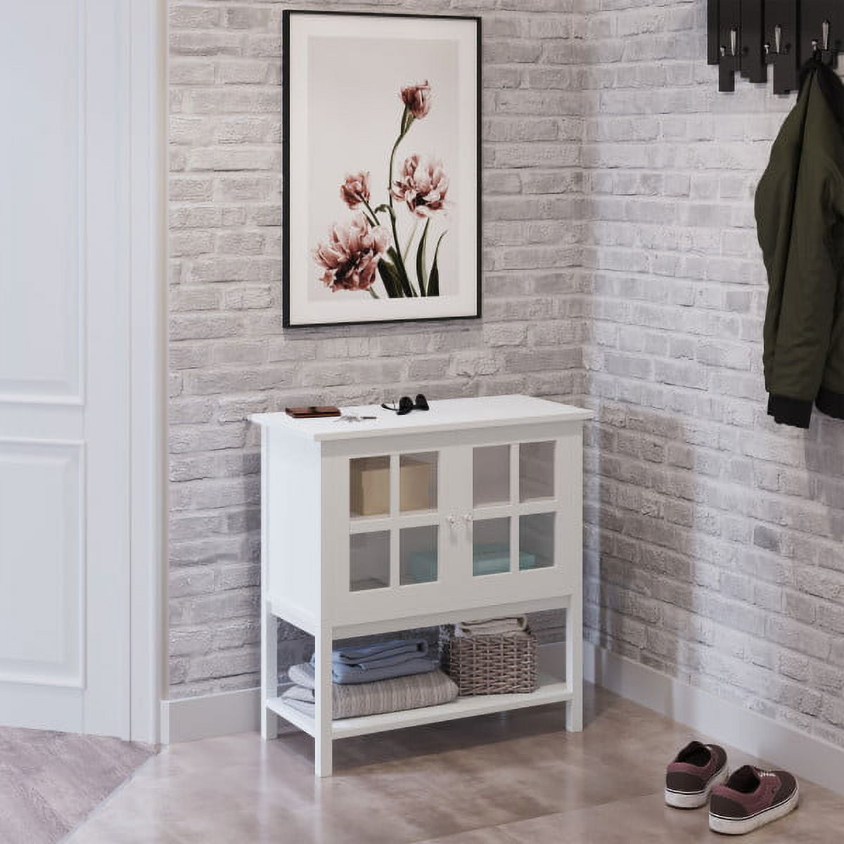 Lavish Home Console Table with Open Shelf, Sideboard with Glass Storage Cabinet (White)