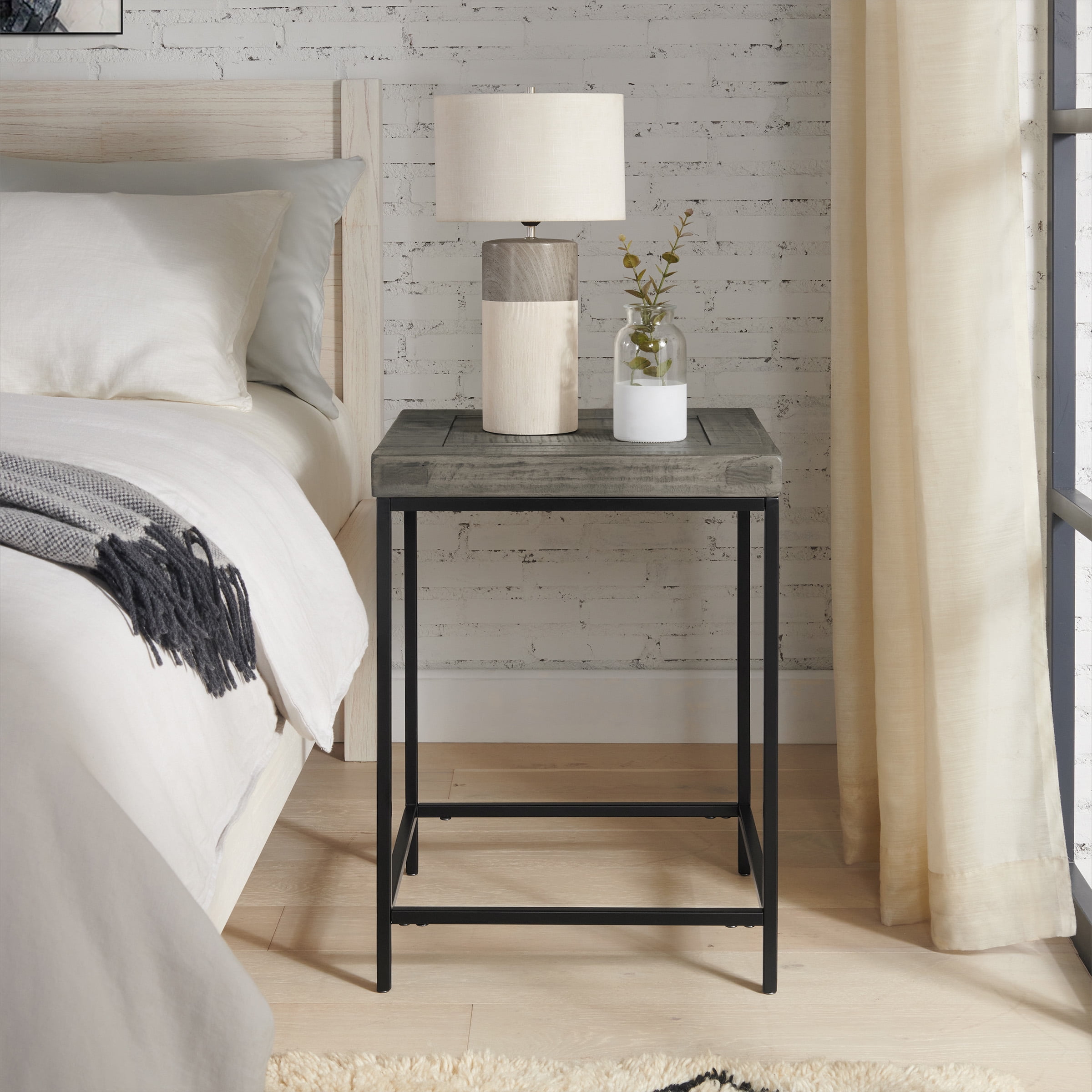 Lavish Home Industrial Modern End Table with Wood Top and Metal Frame, Gray