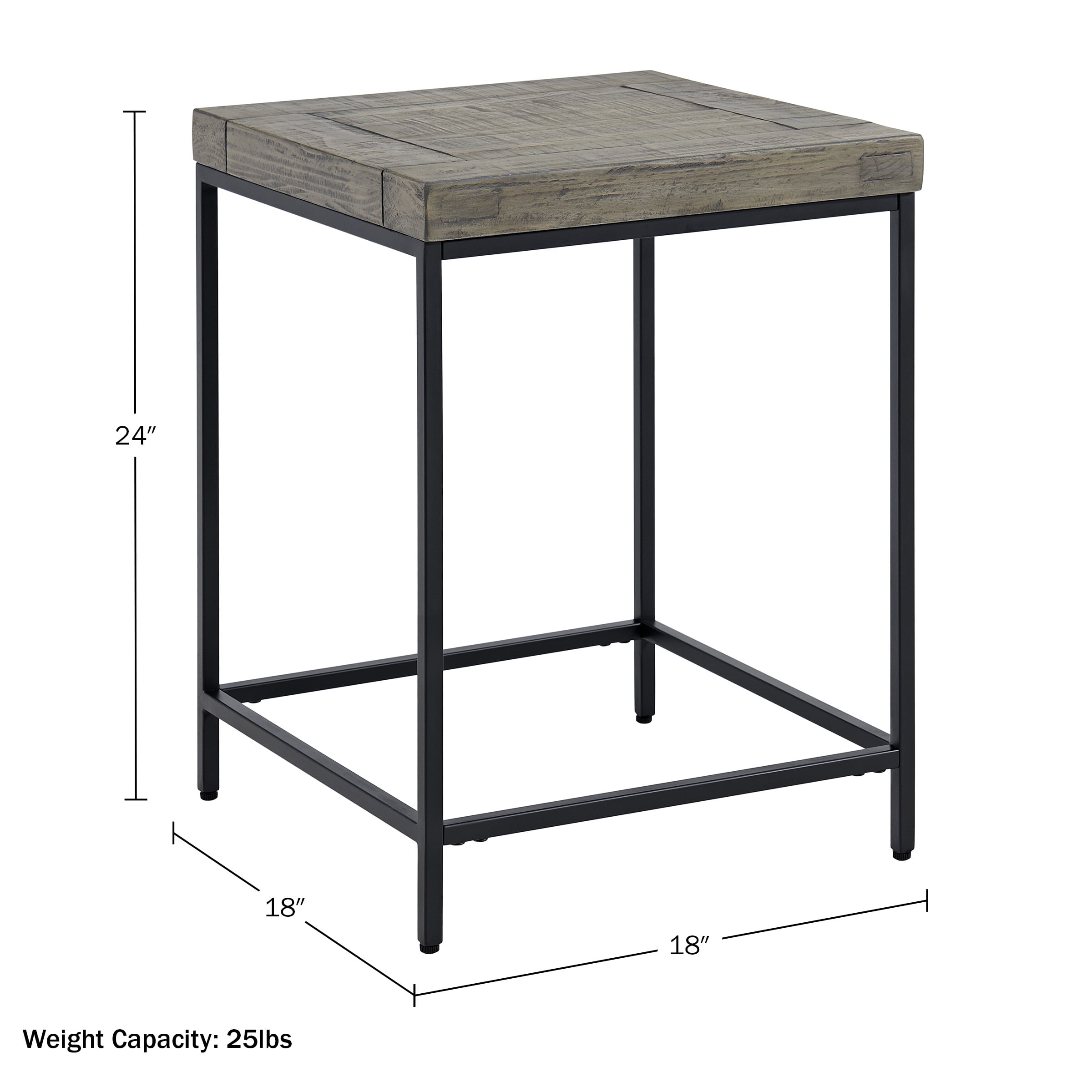 LIVING ROOM TABLE – This small table can be used as an end table in your home or office, bedside, or next to your favorite chair in the living room. DURABLE DESIGN – Made of quality materials, this small end table features a sturdy metal base and durable pine wood tabletop and is the perfect height to set your drinks on while sitting on the sofa. MODERN STYLE – The wood table has a neutral black finish on the base and an attractive gray top that makes a fabulous complement to your couch, loveseat, or bed. VERSATILE USE – This industrial couch side table is great for displaying a pretty plant in the living room, as a spot to set a snack plate, or as a bedside table, perfect for any space – big or small. MATERIALS – Pine Solid Wood and Metal. DIMENSIONS – (L) 18” x (W) 18” x (H) 24”. Weight Capacity: 25 lbs. COLOR – Gray Top and Black Base.