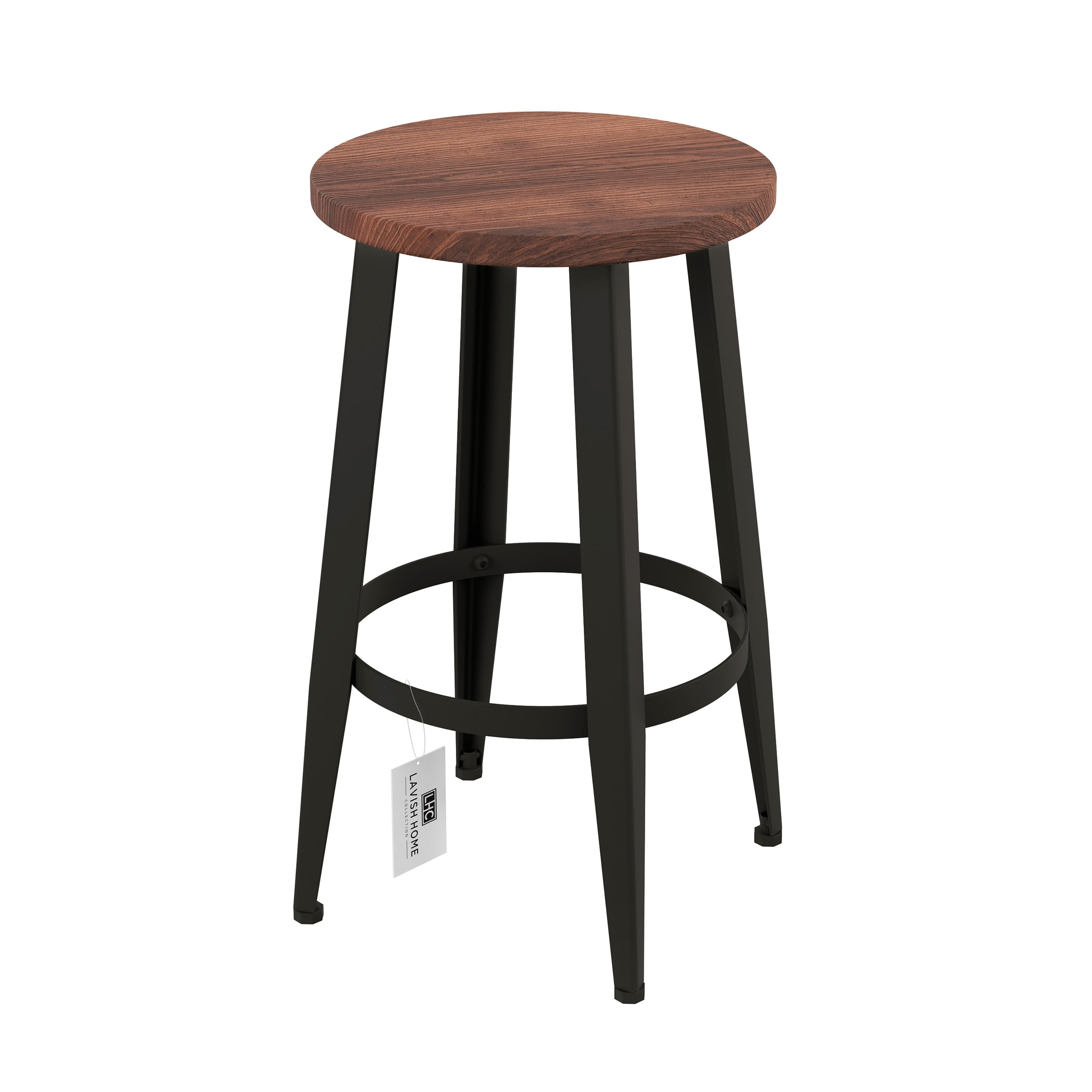 Lavish Home Set of 2 Wood Counter-Height Bar Stools with Black Metal Base