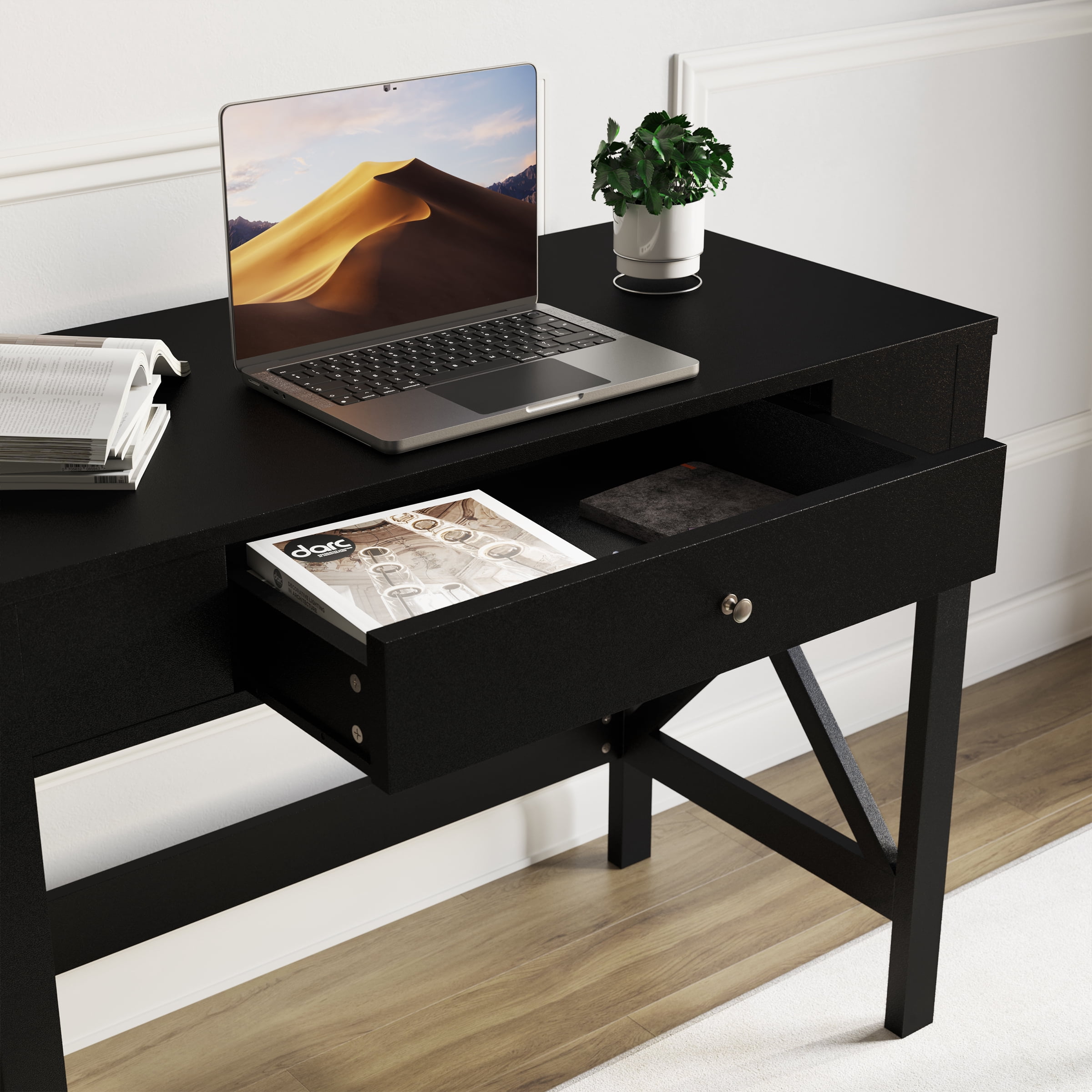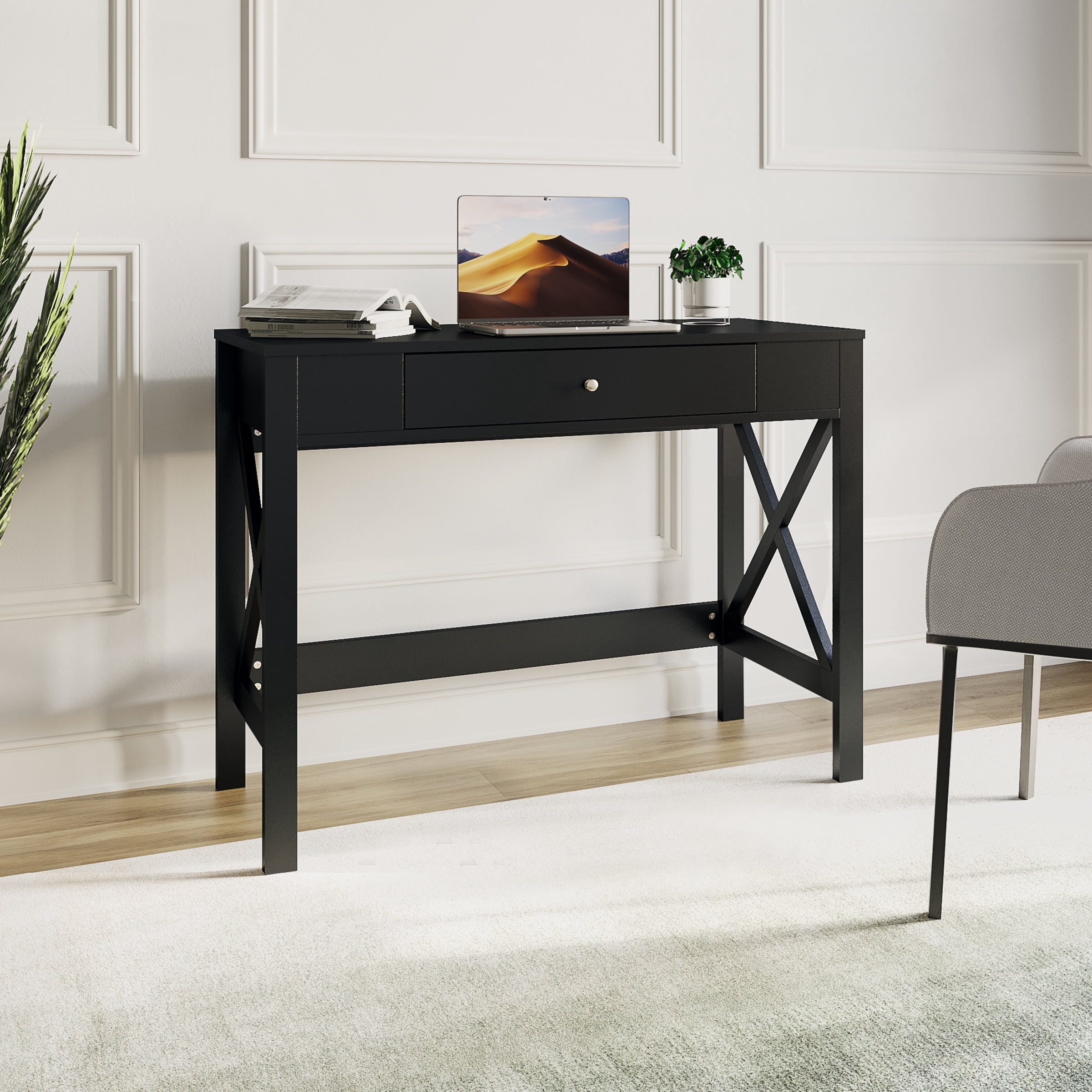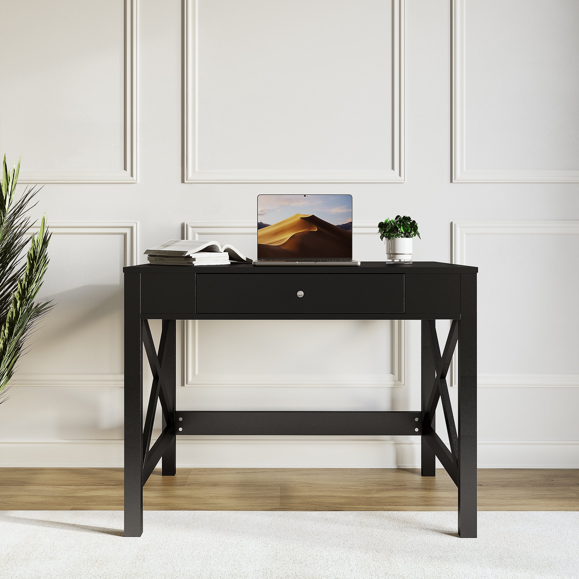 Lavish Home Writing Desk with X-Pattern Legs and Drawer Storage (Black)