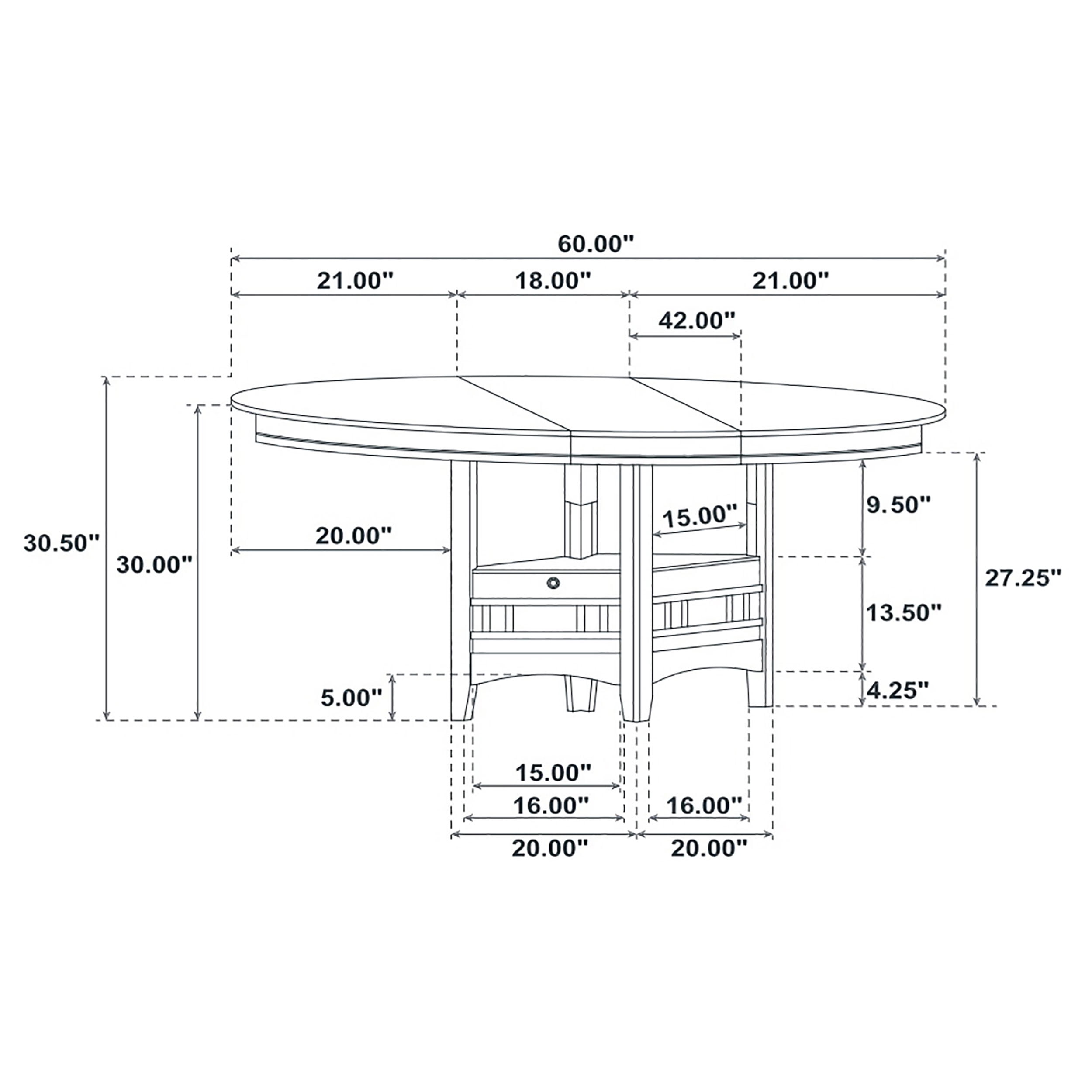 Set includes: One (1) dining table Table finish: Medium Grey Dimensions: 42″ W x 43-60″L x 30.5″H Materials: Asian hardwood, MDF, oak veneer and plywood Assembly required: Yes