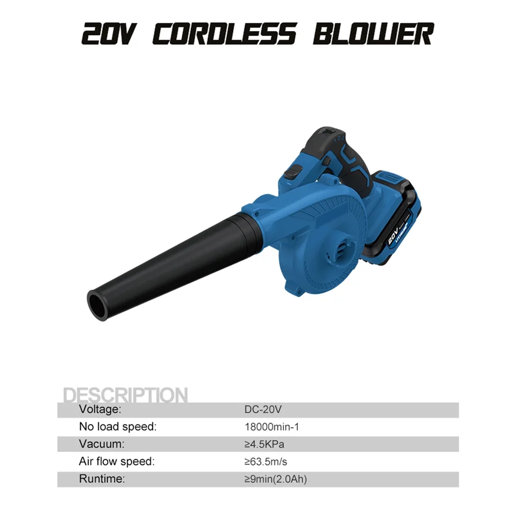 Leaf Blower Cordless,20V Electric Cordless Leaf Blower with 2.0Ah Battery and Charger, Lightweight Leaf Blowers for Patio,Garden Cleaning(Blue)
