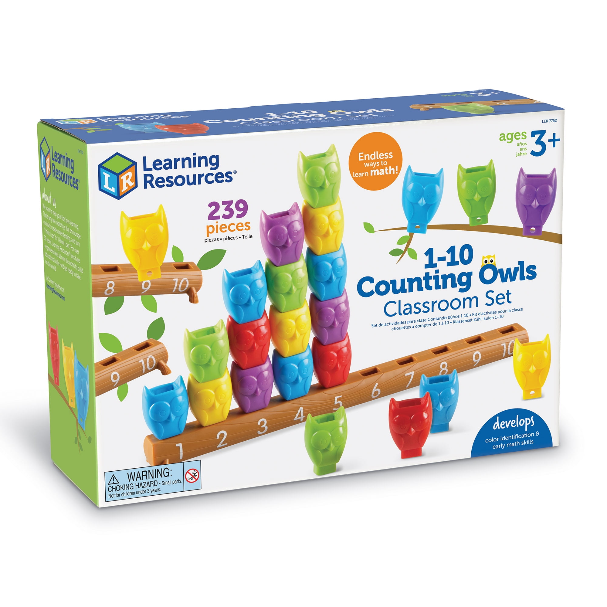 INTRODUCE number recognition, counting, and early math skills with these wise little owls! COUNT the owls, sort by color, or visualize simple math concepts! EXPANDED set is designed for classroom and small-group playincludes 4 branches and 220 owls! INCLUDES classroom guide with expanded activity list Ages 3+ Model : LER7752 Brand : Learning Resources