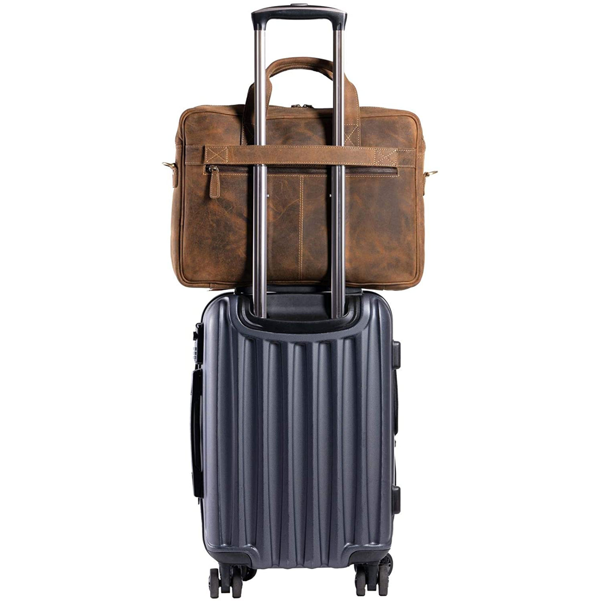 Leather briefcase 18 Inch Laptop/ Messenger Bags for Men and Women Best Office School College briefcase Satchel Bag (Distressed Tan)
