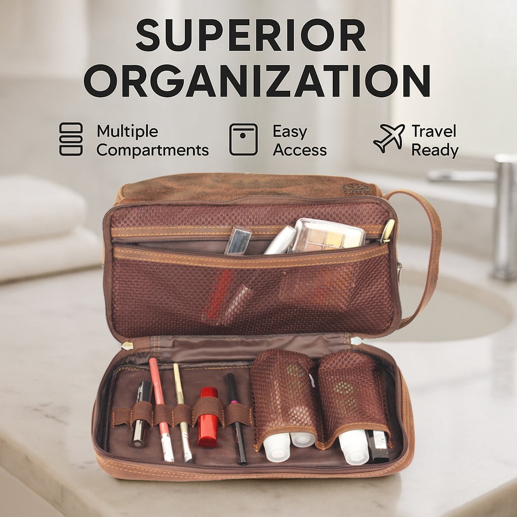 Leather Toiletry Bag Shaving Dopp Kit Travel Case Cosmetic Toiletries Organizer Makeup Bag for Men & Women by Rustic Town