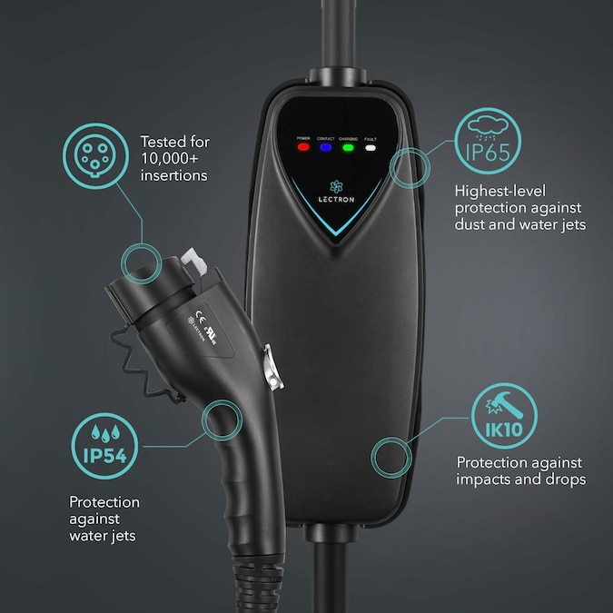 Charge your J1772 EVs quickly and effortlessly with the Lectron NEMA 14-50 Level 2 EV Charger. Get up to 240V of input power and a 40A charging rate for fast charging at home or on the go. Easily monitor your charging status and be alerted if anything is amiss with the LED indicator lights. Enjoy powerful Level 2 charging without having to install a separate line as it plugs directly into a NEMA 14-50 outlet and is fully compatible with all J1772 electric cars and plug-in hybrid vehicles. Charge safely and efficiently rain or shine with this electric car charger’s Energy Star rating. And with its extra-long 15-foot cable, you no longer have to worry about having to park close to the outlet as this Level 2 charger can easily reach across most garages or driveways.