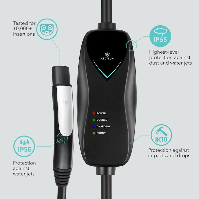 - SAFE AND RELIABLE – At Lectron we prioritize safety and reliability, with IP65 weather resistance and built-in protection against overvoltage, overcurrent, and short circuits, you can confidently enjoy secure and dependable charging every time