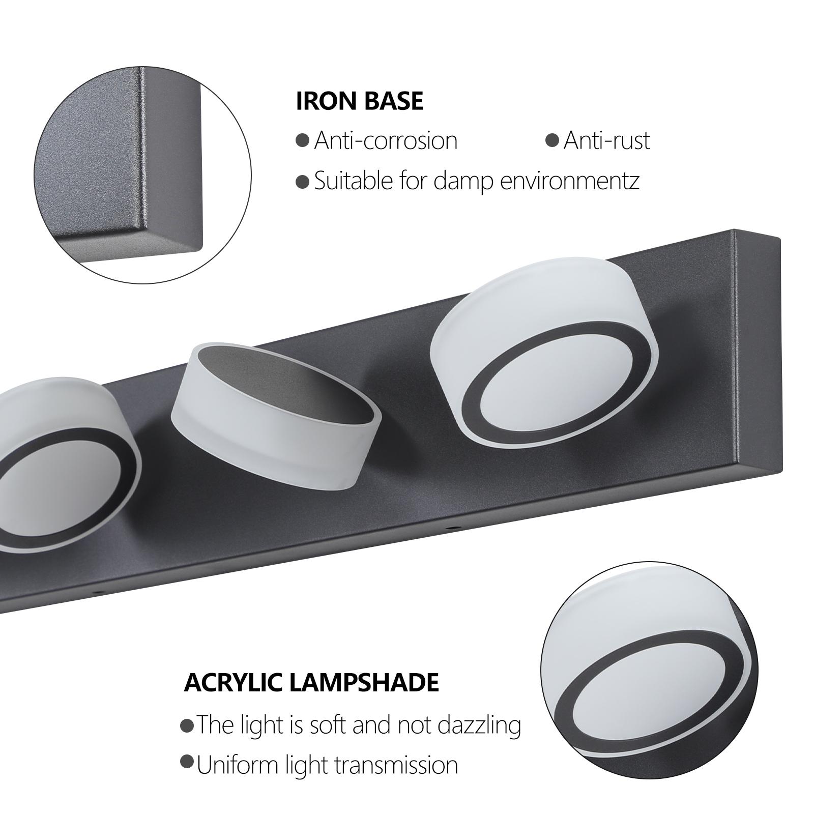 This luxurious lights for vanity mirror design is very much in line with the modern pursuit of design indoor, the bright sconce light emitted from the black bathroom light fixtures creates a beautiful and soft mirror lighting effect, the sconces wall lighting black metal part and frosted acrylic decoration design, the bathroom vanity light is suitable for your bathroom, mirror cabinet, living room and dressing room etc. With advanced plating process and sealing technology, the black vanity light can be dustproof, fog-proof, put corrosion and moisture-proof in bathroom above vanity mirror as lights for mirror.