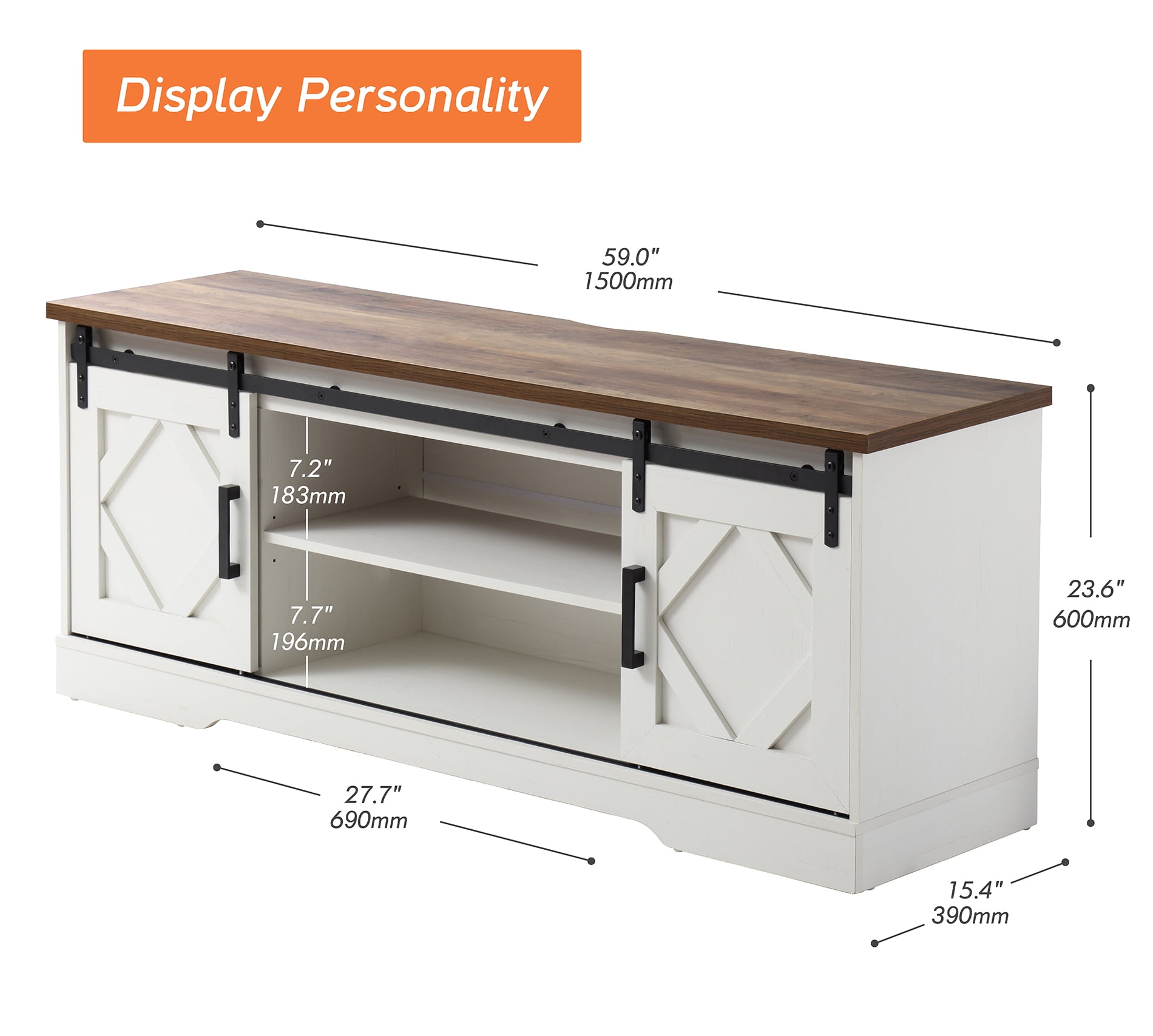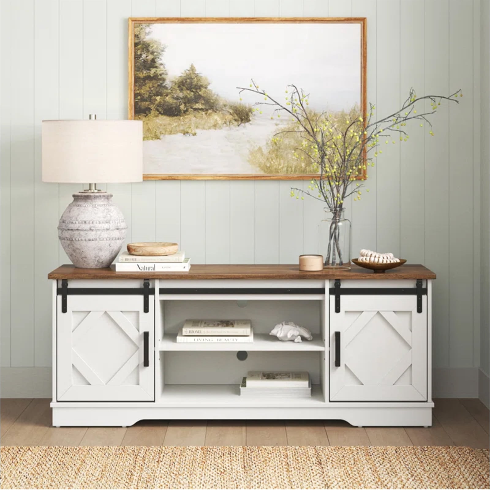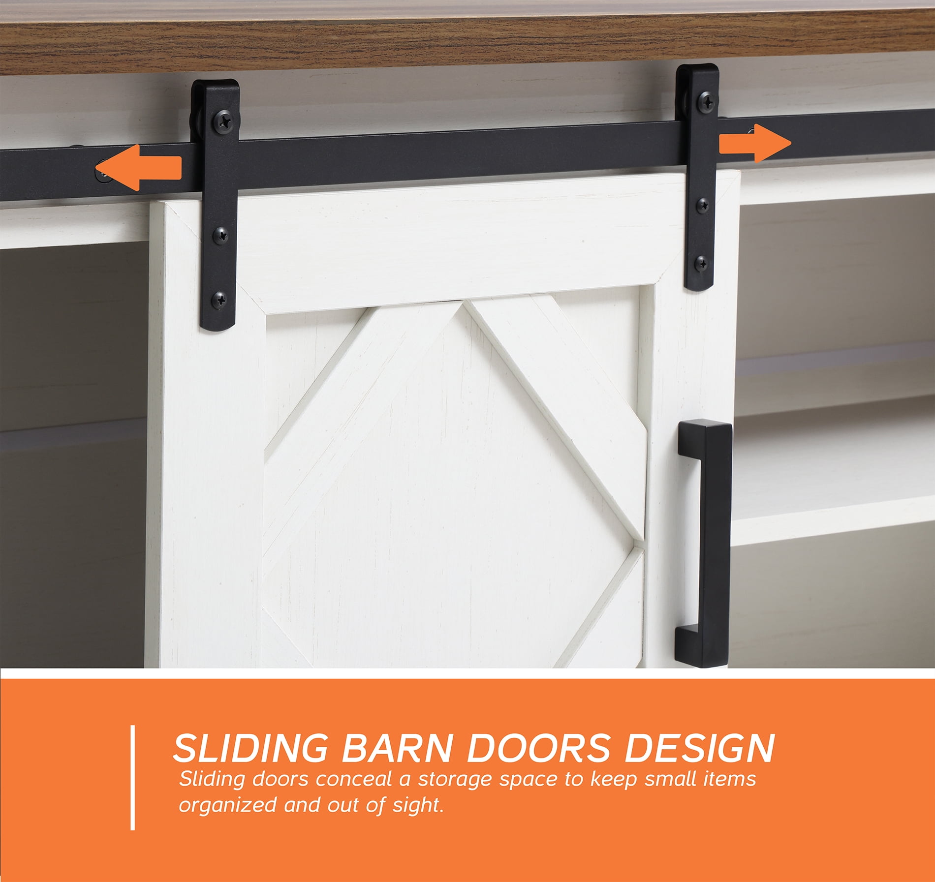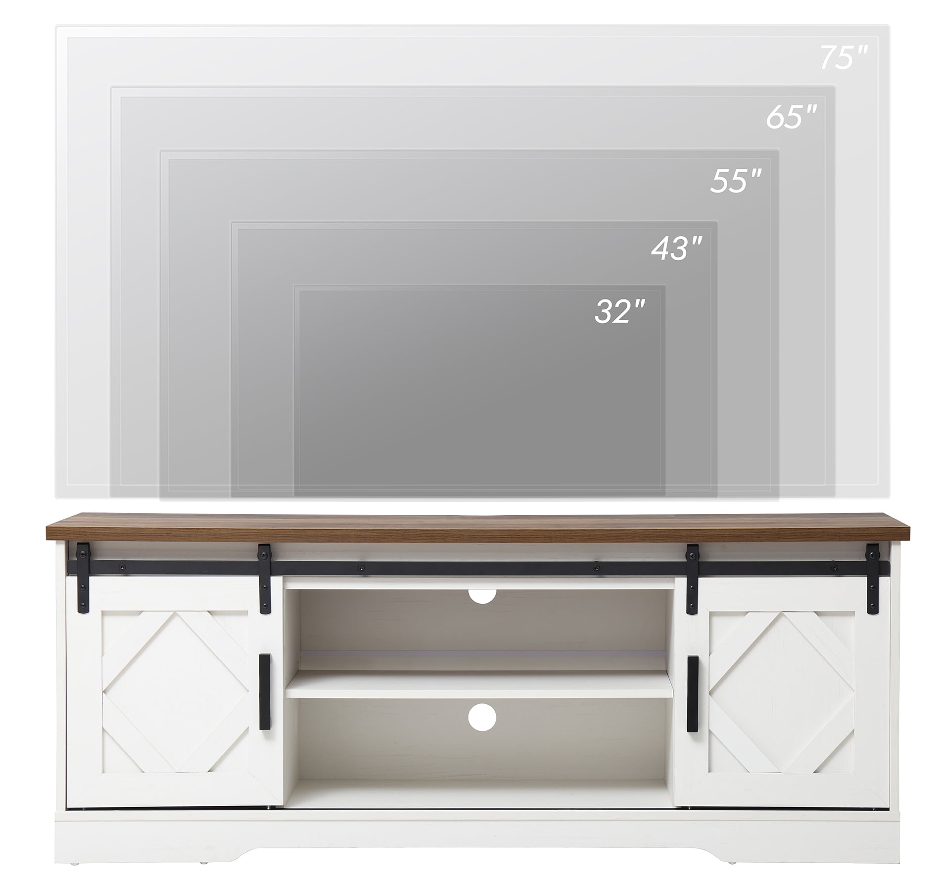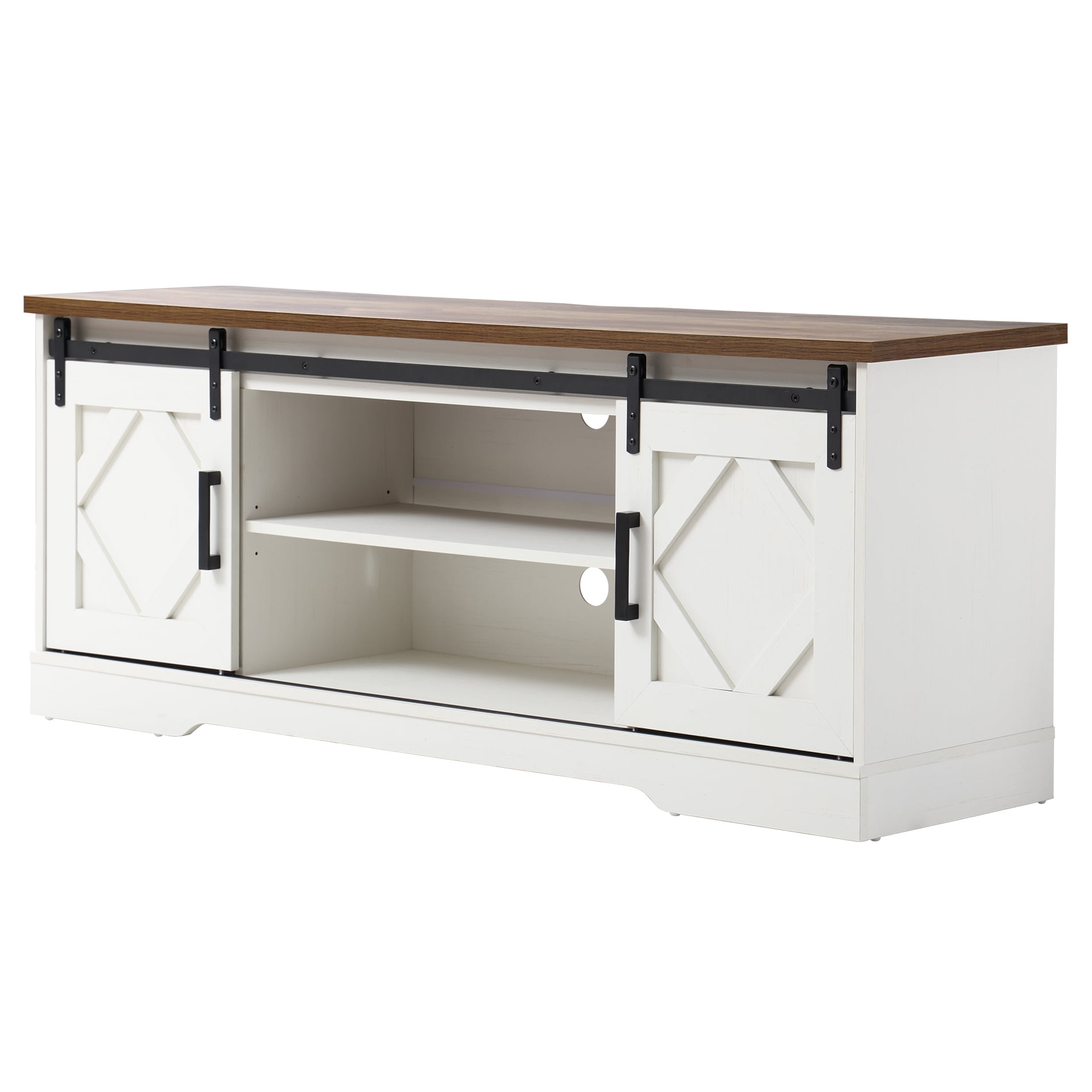 LED Farmhouse Sliding Barn Door TV Stand Modern TV Console for up to 70″ TV White