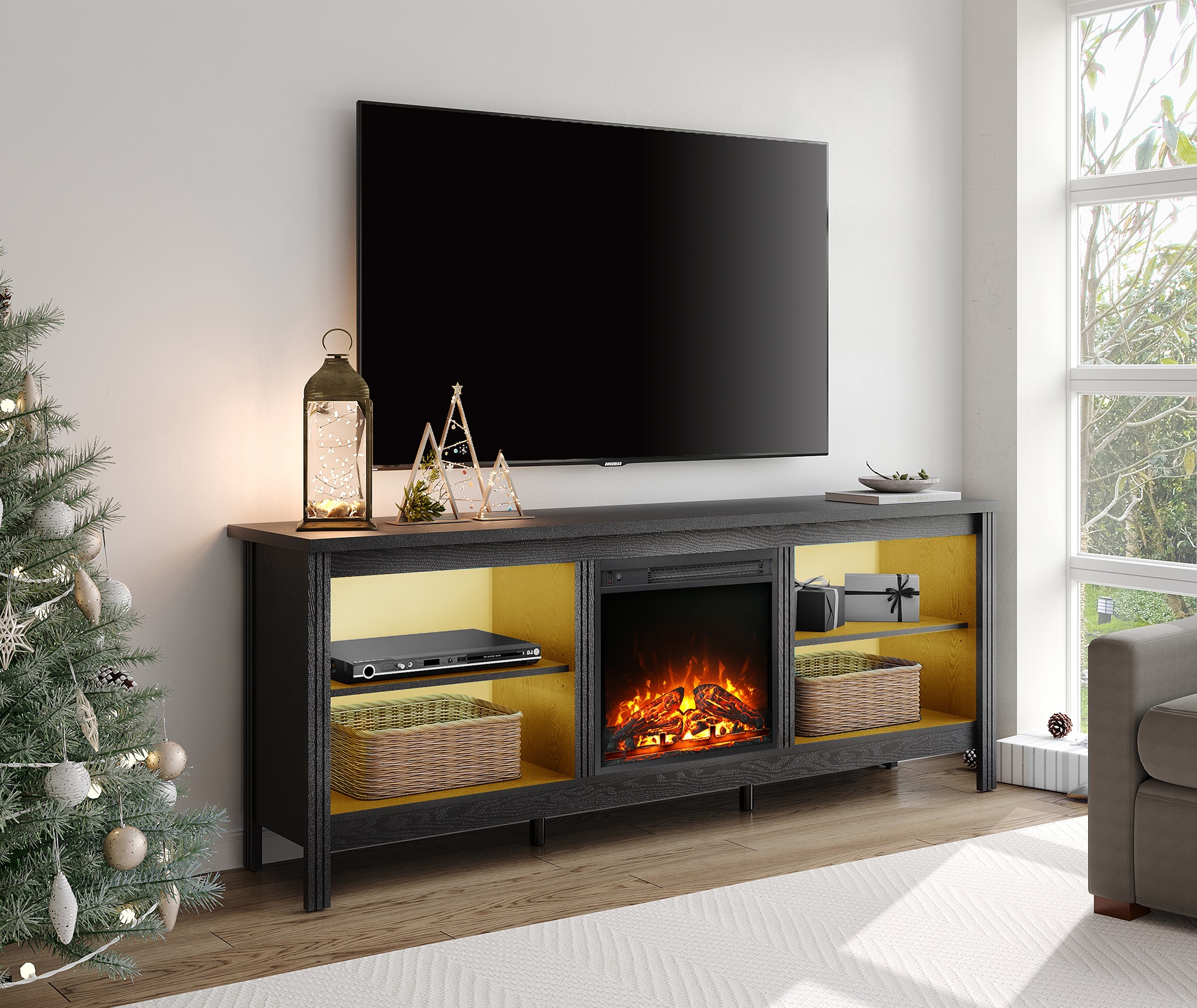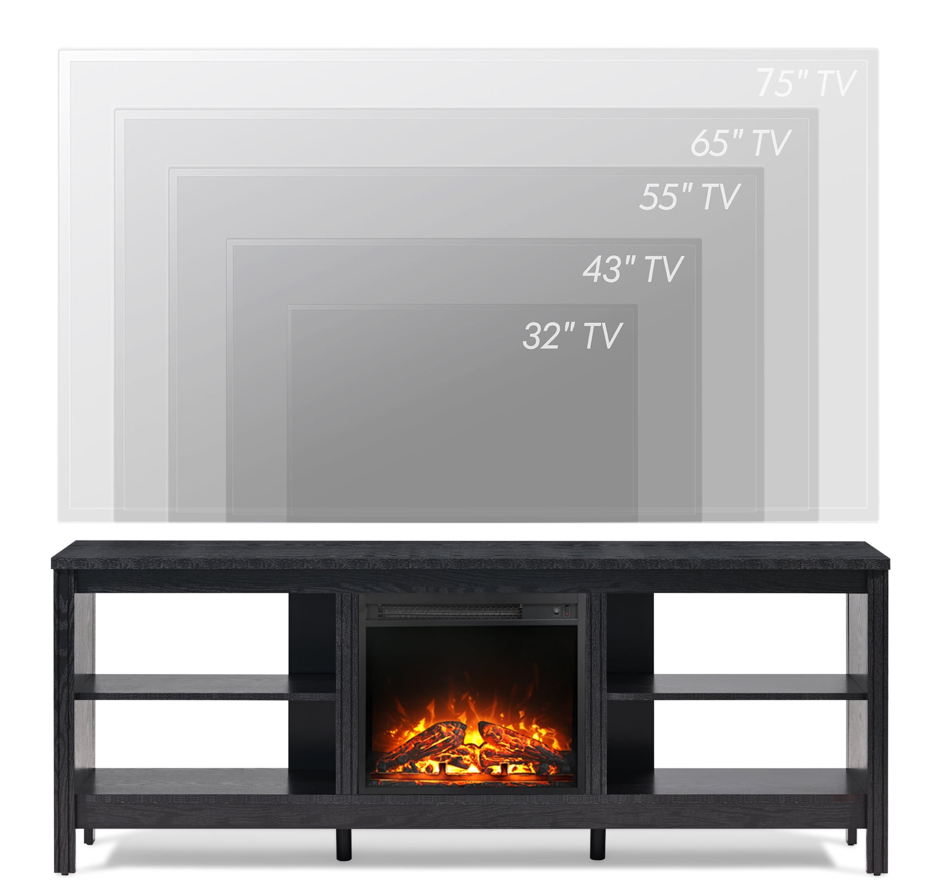 LED Fireplace TV Stand for 75 inch TV, Black 70 inch