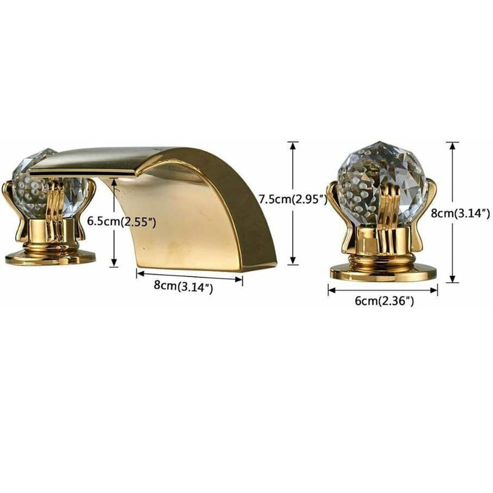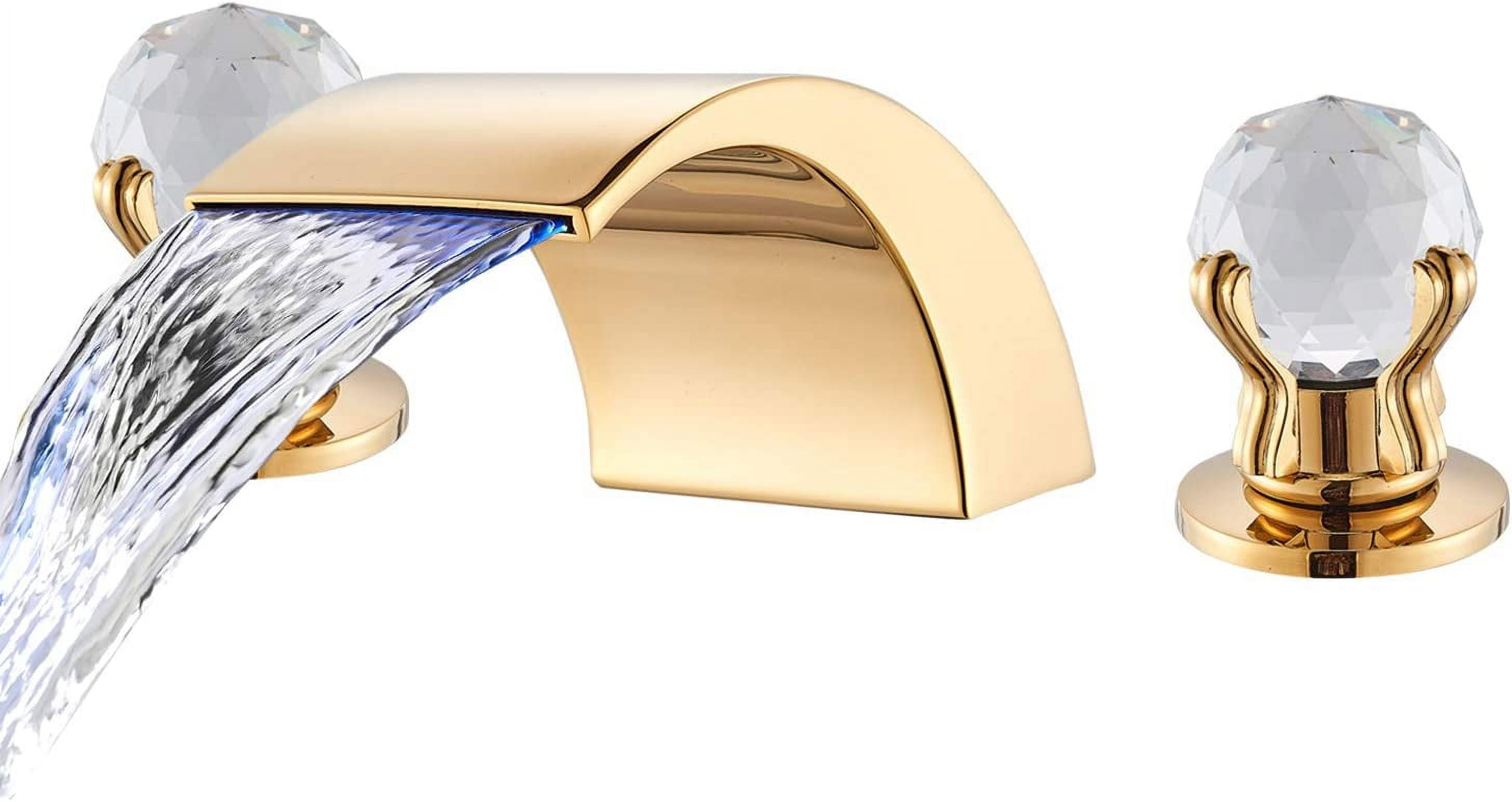 LED Light Waterfall Widespread Bathroom Basin Faucet 2 Crystal Knobs Sink Mixer Tap Gold Polished