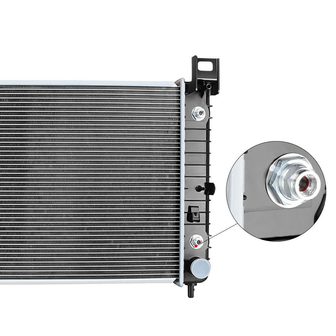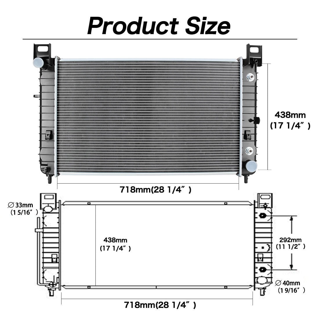To ensure you will get the right item, please read it: There are 2 different size fit these same compatibility., one is 28 inch, Other is 34 inch. SO PLS NOTICE: The radiator core width of this link is 28 inch. So please confirm that this radiator will fit your car before ordering. FITMENT: For 2002 – 2005 Cadillac Escalade 5.3L (Not for 6.0L) For 1999 – 2012 Chevrolet Silverado 1500 4.3L, 4.8L & 5.3L (Not for 6.0L or 6.2L) For 2013 Chevrolet Silverado 1500 4.8L & 5.3L (Not for 4.3L, 6.0L or 6.2L) For 2007 Chevrolet Silverado 1500 Classic 4.8L & 5.3L (Not for 4.3L, 6.0L & 6.2L) For 1999 – 2013 Chevrolet Silverado 2500 4.8L & 5.3L (Not for 5.7L or 6.0L) For 2000 – 2006 Chevrolet Suburban 1500 5.3L (Not for 5.7L or 6.0L) For 2000 – 2006 Chevrolet Tahoe 4.8L & 5.3L ( Not for 5.7L) For 1999 – 2006 GMC Sierra 1500 4.8L & 5.3L ( Not for 4.3L & 6.0L) For 2007 GMC Sierra 1500 Classic 4.8L, & 5.3L ( Not for 4.3L & 6.0L) For 1999 – 2000 GMC Sierra 2500 5.3L & 6.0L For 2000 – 2006 GMC Yukon 4.8L & 5.3L (Not for 5.7L or 6.0L) For 2000 – 2006 GMC Yukon XL 1500 5.3L (Not for 6.0L) DETAILS: Core Material: Aluminum Tank Material: Plastic Core Dimension: 28 ” (L) x 17-1/4” (H) Inlet Diameter: 1-5/16 In. Outlet Diameter: 1-9/16 In. Row quantity: 1 Core Thickness: 26mm ( 1 Inch ) Transmission Oil Cooler: Included Engine Oil Cooler: NO Type of Transmission: AT / MT Interchange Part Number: 15193110, 2334, 52484047, 52486598, CU2334, GM3010436, Q2334, RAD2334, RK878