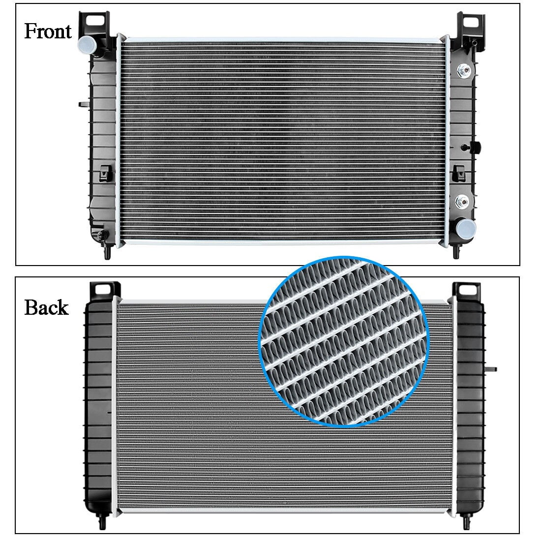 Double Protection of Package:Upgraded packaging (EPE foam and cardboard) enable radiators to arrive intact.EPE foam helps fix radiators to reduce wobble. Aluminium Oil Cooler:Aluminium oil cooler has better heat dissipation performance than stainless steel ones to cool down your vehicle more quickly. Maintenance:Regularly clean your radiator to prevent clogging that may lower cooling efficiency. Don’t mix different brands of coolant. Manufacturer Part Number/Interchange part numbers: 2334 Q2334 CU2334 DPI2334 RAD2334 52486598