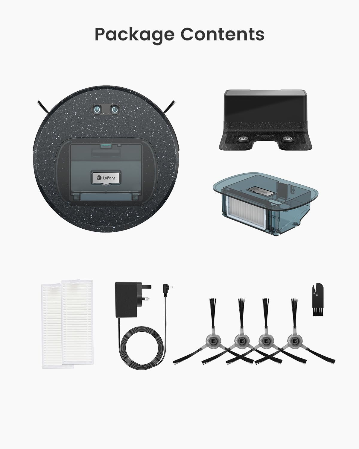 The Lefant F1 Robot Vacuum Cleaner is a powerful and ultra-thin cleaning solution, ideal for pet owners. With 5000Pa strong suction, it effortlessly picks up pet hair and debris, while its brushless suction port prevents clogs. It features four smart cleaning modes for thorough coverage, along with FreeMove 3.0 infrared sensors for obstacle avoidance and anti-drop protection. The 600ml dustbin offers large-capacity storage with a clear view for easy maintenance. You can control it via the Lefant Life App, voice commands, or manual buttons, and it supports mopping. With a 250-minute runtime and auto-recharge, it efficiently cleans up to 200㎡ on a single charge, making it a smart, hassle-free choice for pet-friendly homes. ➤ Key Features: ????️5000Pa Strong Suction & 6.9cm Ultra Thin The Lefant F1 robot vacuum cleaner is only 6.9cm high and 28cm in diameter. With its ultra-thin design, it offers a super suction power of 5000pa, making it quiet yet powerful. It ensures that no debris is left hidden, even in corners and under furniture. ????Upgraded Infrared Sensor FreeMove 3.0 is our brand’s original full-body detection technology. Equipped with built-in infrared sensors, the robot vaccum can sense obstacles and navigate around them. With the Freemove button on the app, you can proactively detect barriers, such as bathroom thresholds, kitchen areas, or balcony stones, preventing random collisions. ????Smart App & Voice Controls The vacuum cleaner robot can be conveniently controlled through the Lefant Life App or via voice commands using Alexa or Google Home. The app allows you to monitor the cleaning path, schedule cleaning plans, adjust suction levels, and change cleaning modes, among other features. Note: It only supports 2.4GHz Wi-Fi. ????Large Capacity & Visual Dust Box The Lefant automatic robotic vacuum boasts an ultra-thin body and exceptional suction power. Additionally, its dust box has a large capacity of 600ml, capable of storing all the garbage from your entire house. The transparent dust box allows you to easily monitor its fill level, making maintenance a breeze! ????4 Cleaning Modes Unlike most robotic vacuum cleaners on the market that follow random cleaning patterns, the Lefant cleaner robot offers four cleaning modes: automatic, planning, fixed point, and edge cleaning. The planning mode ensures a meticulous cleanup of every corner of your home, making cleaning a breeze! ????️Unique Suction Mouth The Lefant F1 Robot Vacuum Cleaner features a unique inlet design that doesn’t clog with pet hair like other robot vacuums with rotating brushes. This makes the F1 an excellent choice for pet owners, eliminating any worries about hair entanglement. ➤What’s Included Lefant F1 Robot Vaccum Cleaner*1 Adapter*1 Charging Base*1 Dustbin(600ml) HEPA Filter*2 Side Brushes*4 Cleaning Brush*1 User Manual*1