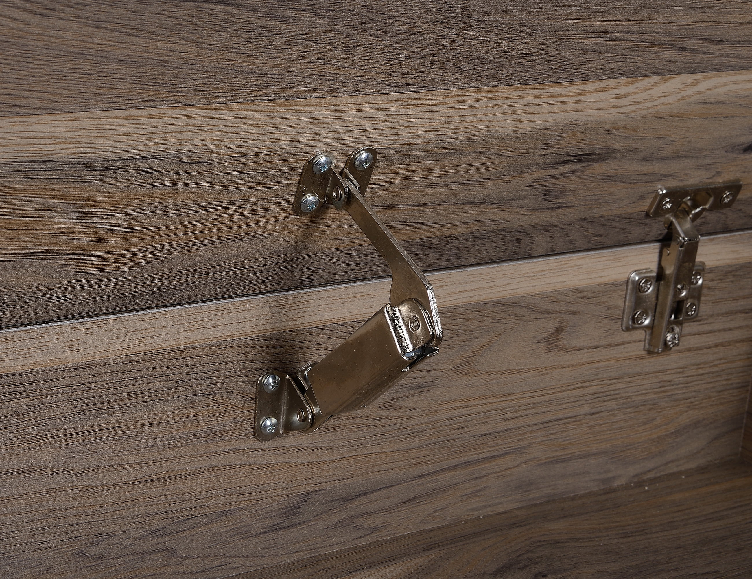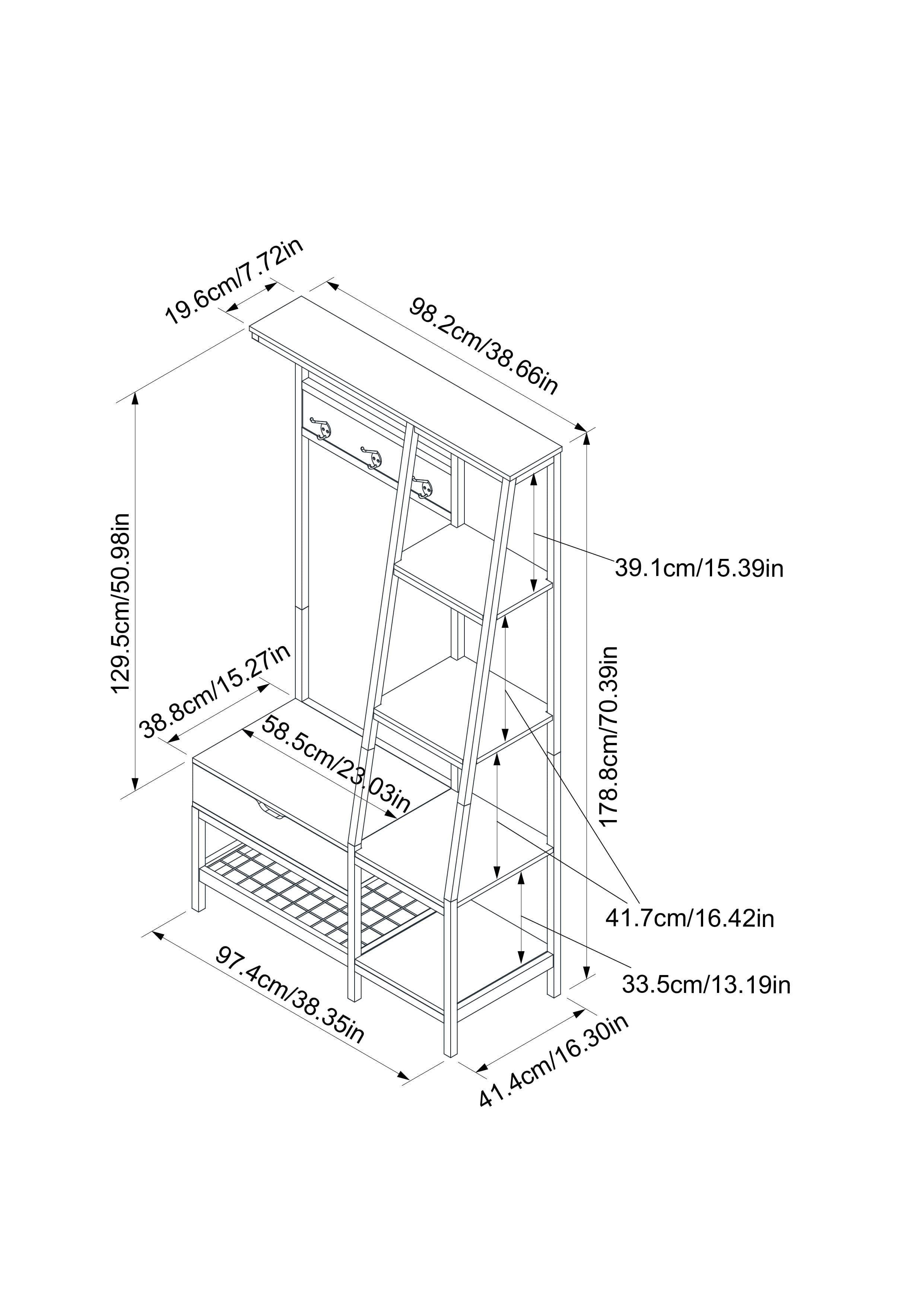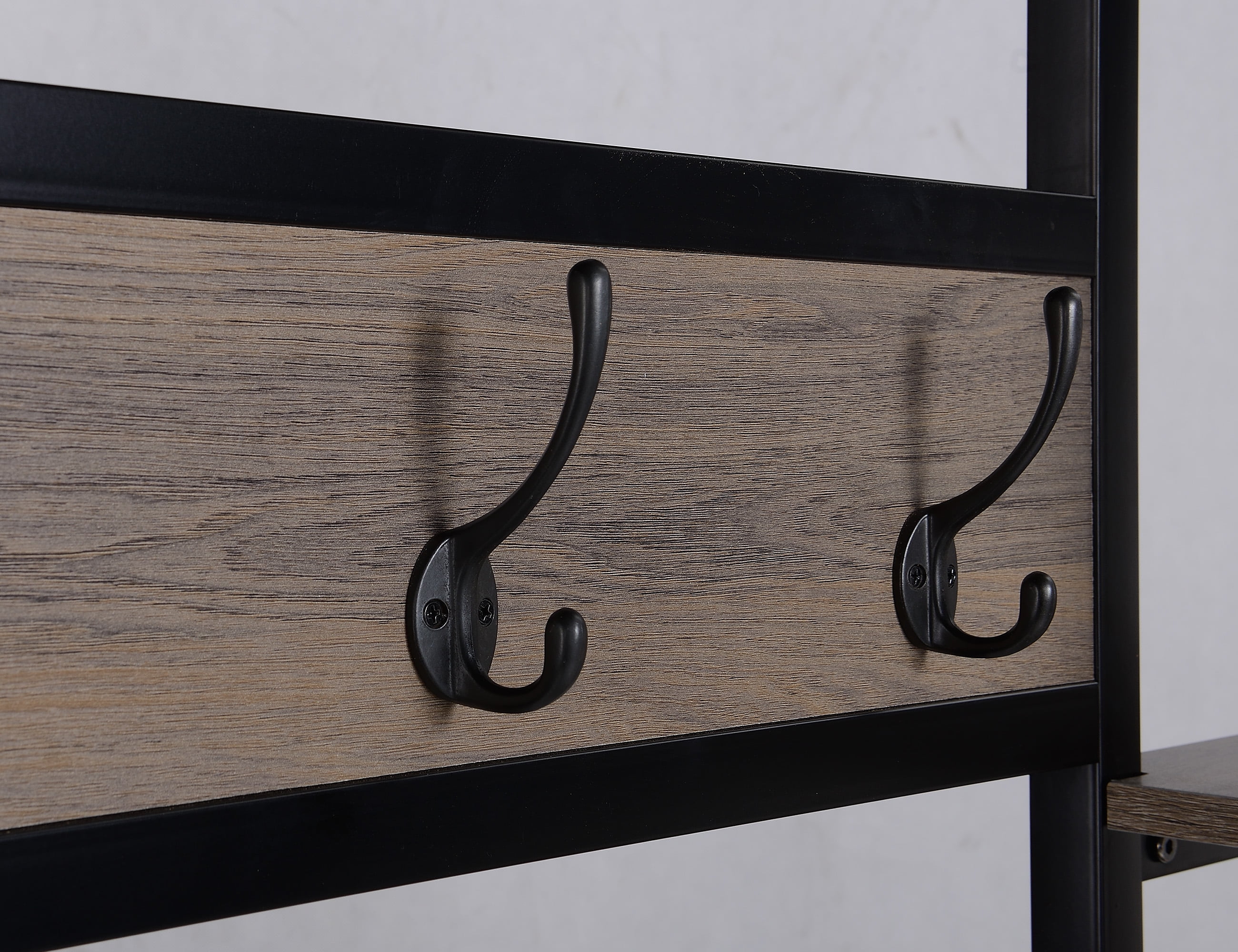 Three double hooks Melamine surface resists moisture and stains while helping to prevent scratches Attractive Gray Oak Finish