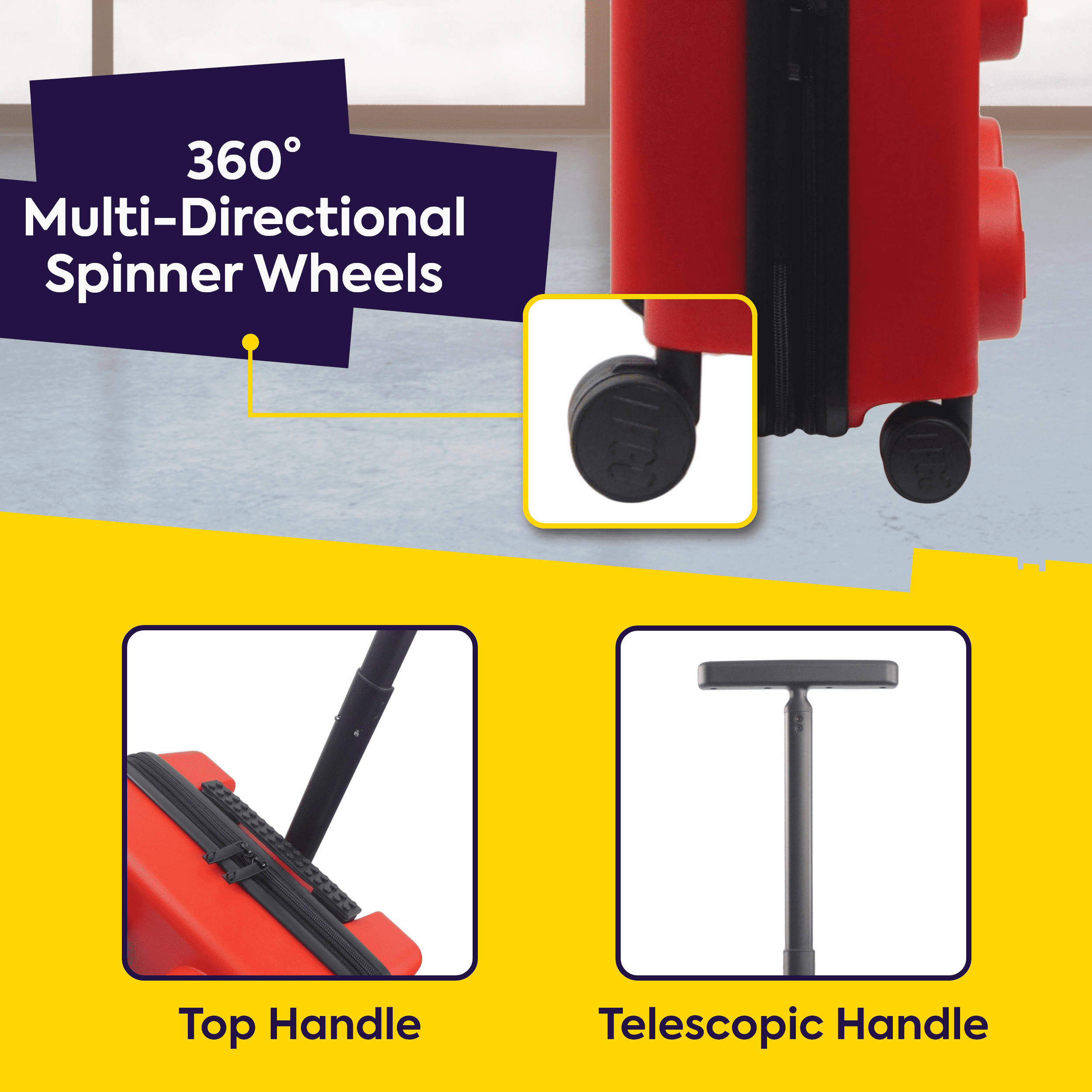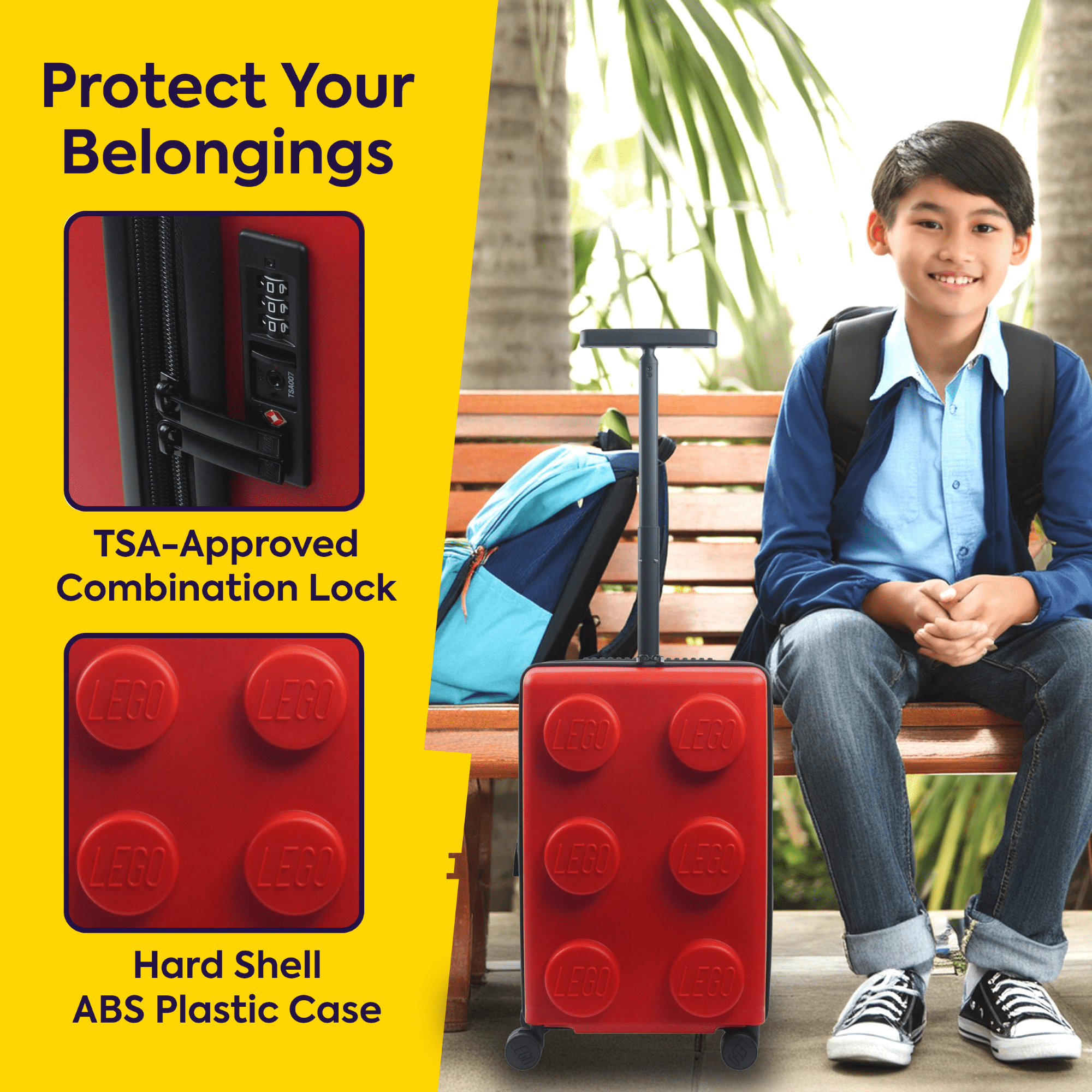 LEGO 22 Inch Rolling Luggage, Signature Trolley Expandable Hardshell Carry On Suitcase with Spinner Wheels, Red