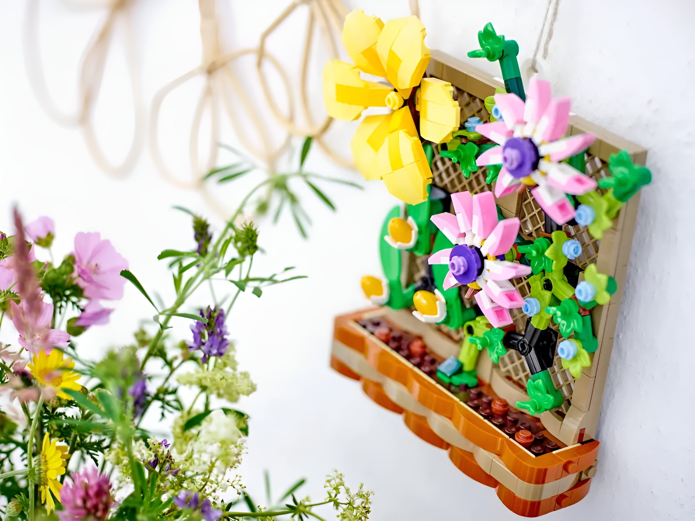 Plant seeds of creativity with this LEGO® Flower Trellis Display (40683) Spring gift. Featuring spring blooms and a trellis with wicker detailing, it’s a great spring gift for kids aged 12 and up, as well as adults who love nature. Featuring LEGO flowers in shades of yellow, pink and blue, plus buds and greenery, this is a piece of floral decor that will never wilt or need to be watered. Once built, it can be displayed standing or hung on a wall.