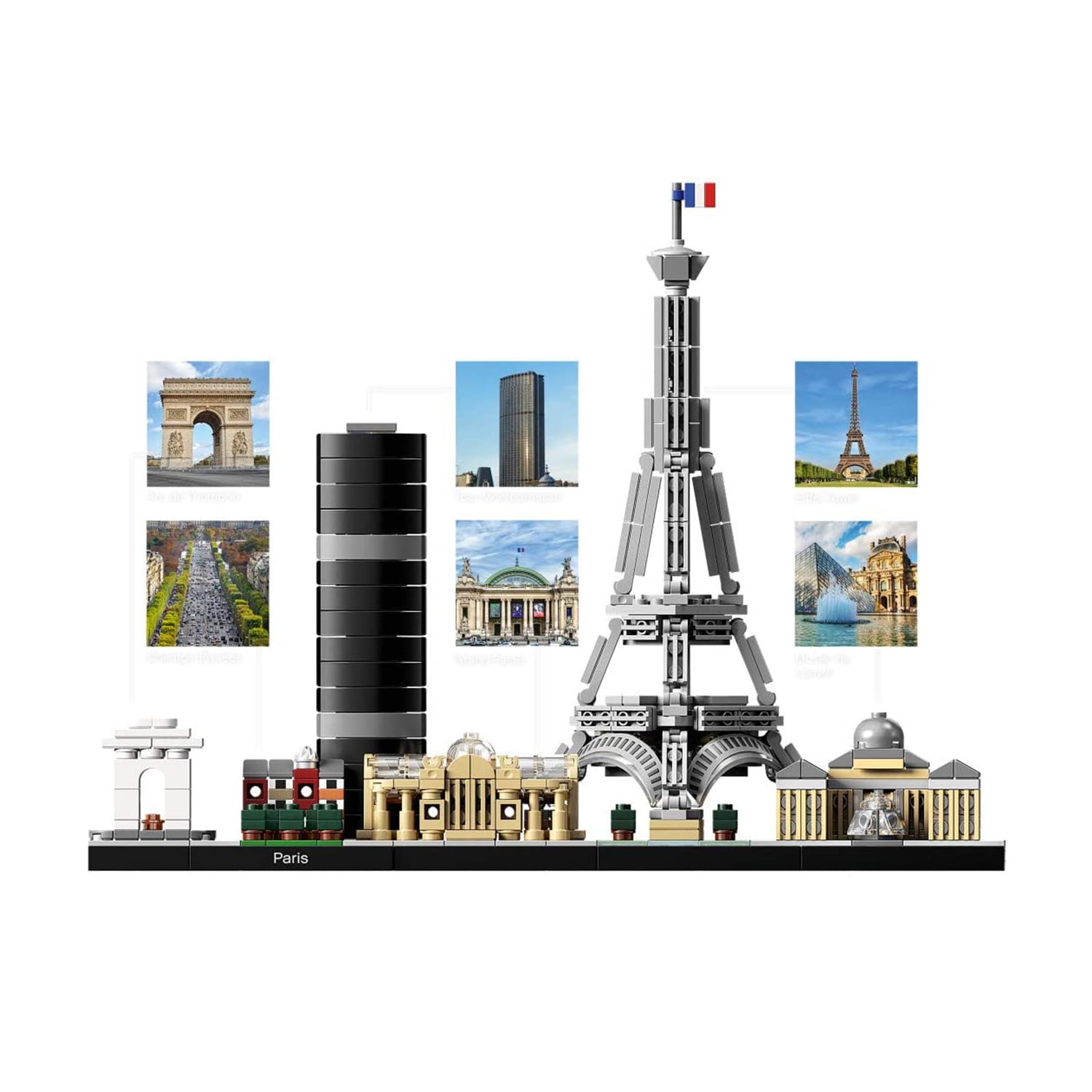 Highly detailed LEGO Architecture interpretation of the Paris skyline, featuring a selection of famous landmarks, including the Arc de Triomphe, Champs-Elysées, Tour Montparnasse, Grand Palais, Eiffel Tower and the Louvre, plus grass and tree areas This model building kit for adults and kids aged 12+ has been designed to deliver a rewarding and relaxing building experience and makes a truly “magnifique” décor piece for the home or office LEGO Architecture sets celebrate the world of architecture through the medium of the LEGO brick, and are developed for all with an interest in travel, design, architecture and history Each skyline model is scaled to give an accurate representation of the comparative size of the featured structures, with realistic color depiction The included booklet contains information about the designer, architecture and history of each structure Looking to give something special to Dad, this makes a great Father’s Day gift from both daughters and sons