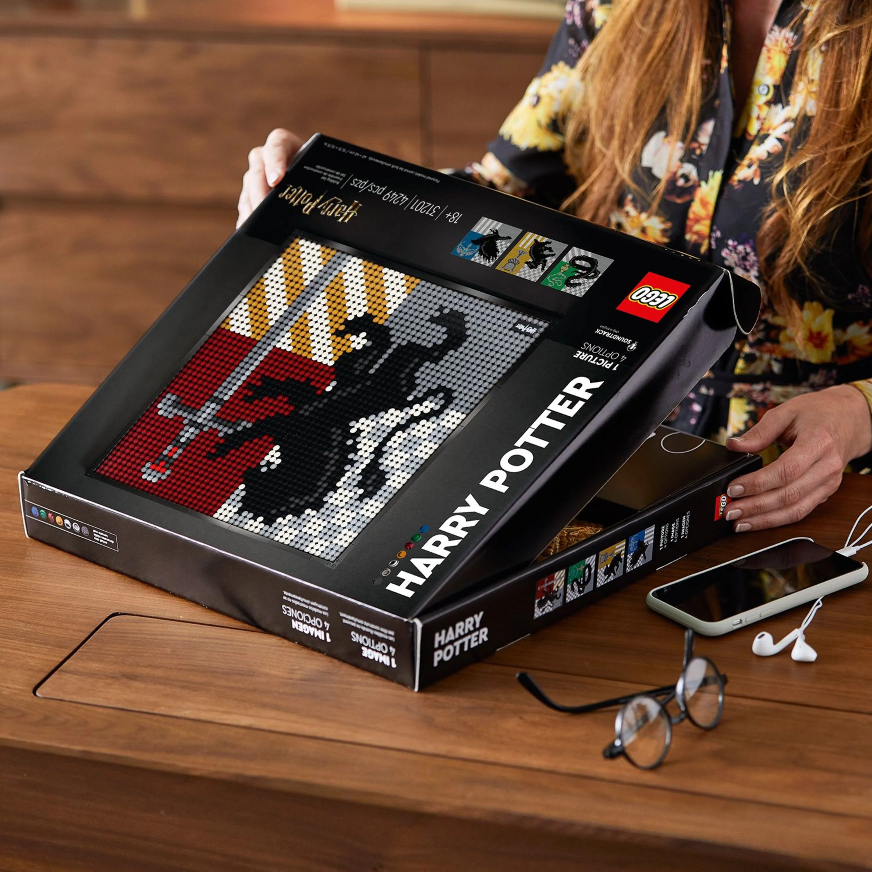 Reflect your love of all things Hogwarts with this stunning LEGO Art Harry Potter Hogwarts Crests (31201) set, which lets you build and display 1 of 4 detailed house crests Escape the daily grind with this LEGO set, featuring 4,249 pieces, including 9 canvas wall decor plates, exclusive Harry Potter logo tile, brick-built frame, unique hanging element and tile tool This set immerses you in your passion for both arts and crafts and the Harry Potter series while you relax and recharge; With the included Soundtrack, you learn more about the houses as you build Celebrate your love of magic and adventure by building and displaying this unique mosaic wall art; To extend the stress relief, combine 4 of the sets to create the ultimate Hogwarts crest This piece measures over 15.5 in. (40 cm) square, has 4 building options and makes a relaxing activity for you or any other Harry Potter enthusiasts in your life who also love DIY art projects