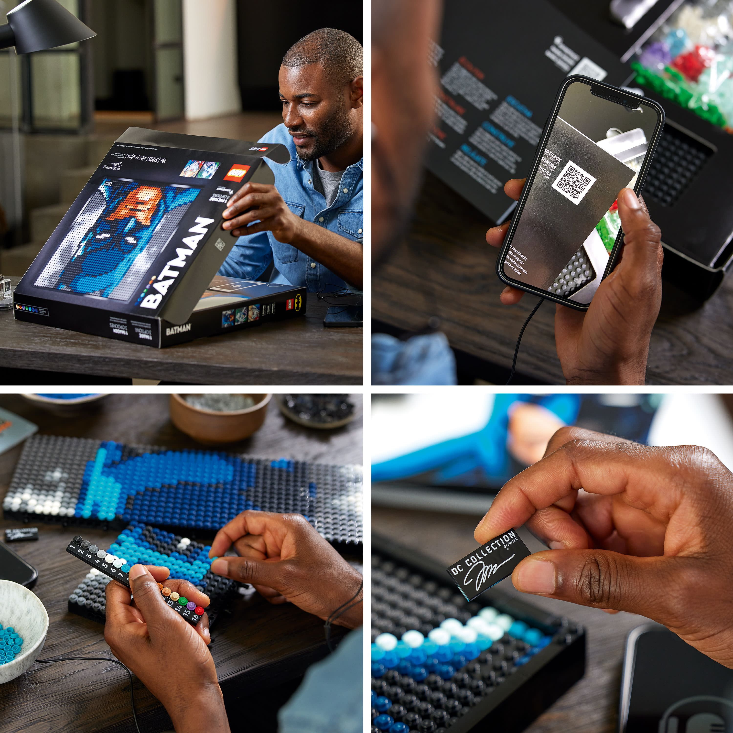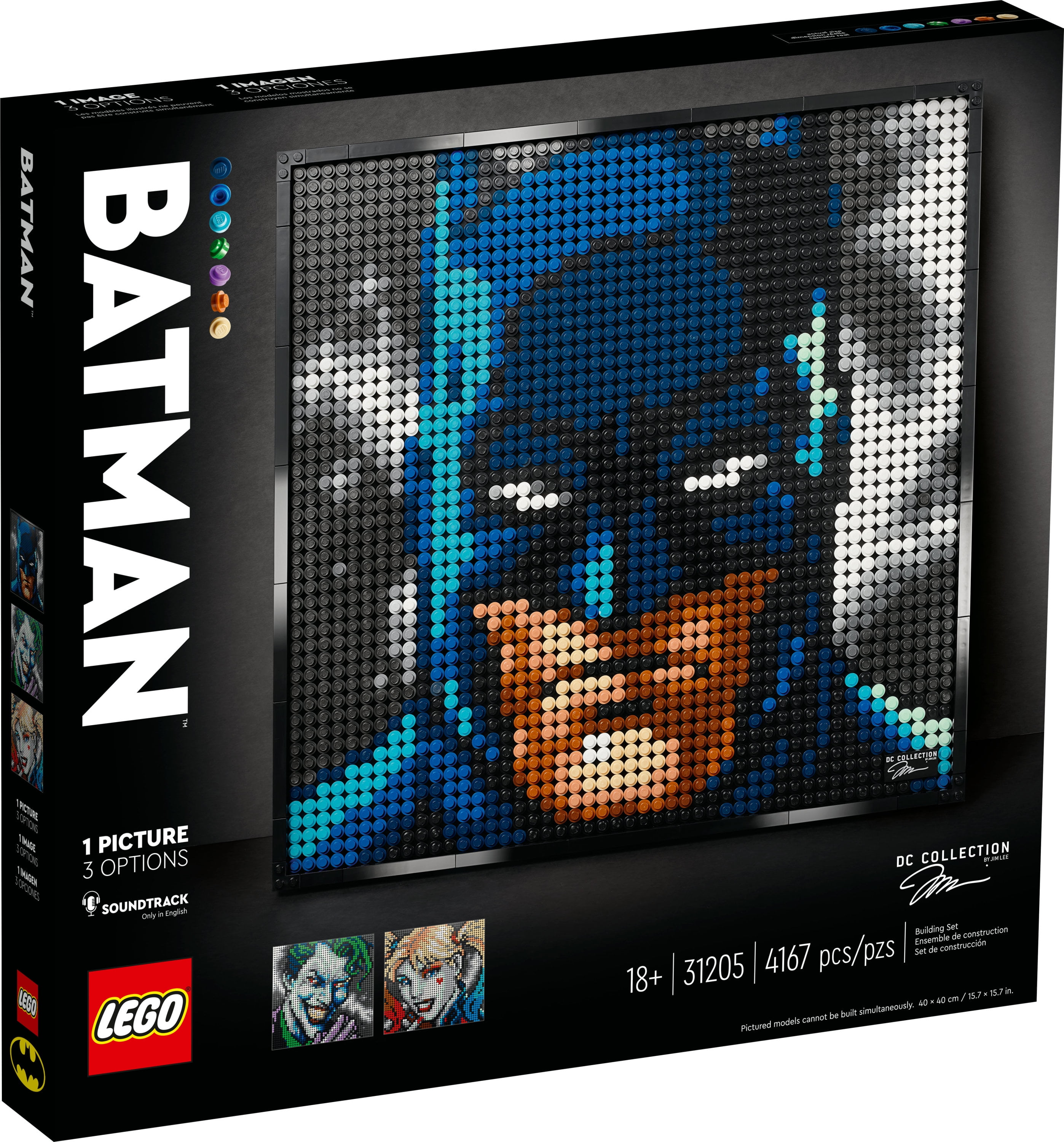 Pick from 3 designs – Choose justice or the agents of chaos as you build this LEGO Art Jim Lee Batman Collection (31205) wall art, featuring a portrait kit with 3 build options Made for display – This immersive 4,167-piece LEGO project includes 9 canvas wall decor plates, a signature tile, 2 hanger elements, a color palette, brick separator and a brick-built frame Designed for DC Universe fans – Showcase the talent of comic book legend Jim Lee by creating 1 of 3 portraits of Batman, The Joker or Harley Quinn in LEGO tiles Find your creative zone – Enter a realm of total relaxation and joyful focus with the Soundtrack, which immerses you in unexpected details as you produce this art project Celebrate your passion – To stretch your creativity further, combine 2 or 3 of the sets to create 1 of 2 Batman inspired wall art pieces to display in your home or office