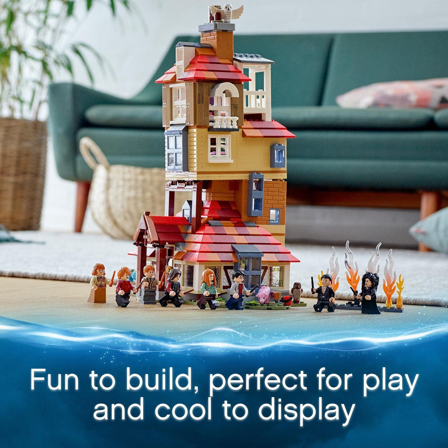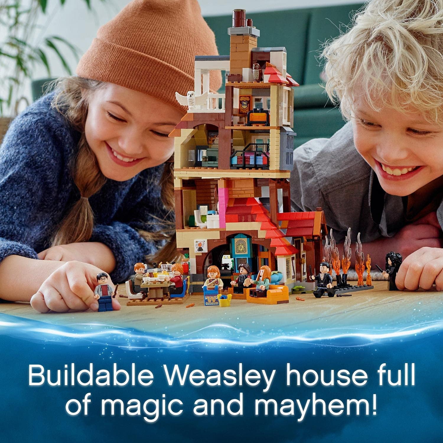 Kids bring a crazy houseful of action-packed magic to life with the iconic LEGO�� Harry Potter��� Attack on the Burrow (75980) dollhouse as they recreate Christmas celebrations and a scary fire-assault on the house. Includes 8 LEGO�� minifigures ��� Ron, Ginny, Arthur and Molly Weasley���, Nymphadora Tonks, Bellatrix Lestrange, Fenrir Greyback and Harry Potter��� ��� plus lots of features, functions and accessories, and special fire elements. There’s fun, excitement and adventure when youngsters explore the feature-packed Weasley house and take on the evil Death Eaters when they try to capture Harry by setting the house on fire. This collectible LEGO�� Harry Potter��� dollhouse toy makes a great birthday or Christmas gift. It will enchant, entertain and inspire endless, magical, role-play adventures for boys and girls aged 9 and up. The Weasley family house measures over 13��� (34cm) high, 8��� (22cm) wide and 7��� (18cm) deep. The playset’s scale and level of detail make it ideal for hands-on play, and it also looks great on display in any kid���s room. This cool building toy doesn���t need batteries ��� which means kids can enjoy Harry Potter��� magical fun and adventure that never ends. Simple, clear instructions are provided to ensure kids can enjoy a rewarding building experience and imaginative play straight from the box. LEGO�� Harry Potter��� toys contain favorite characters, amazing creatures and familiar locations from the popular movies. They’re an ideal gift for any childwanting to be part of the movie magic. LEGO�� playsets meet the highest industry standards, which means every building brick is consistent, compatible and connects and pulls apart perfectly every time ��� no need for magic! ��� and it���s been that way since 1958. LEGO�� bricks and pieces are dropped, heated, crushed, twisted and analyzed to ensure they meet the highest safety standards in the world and are perfectly safe for your little witch, wizard or Muggle.