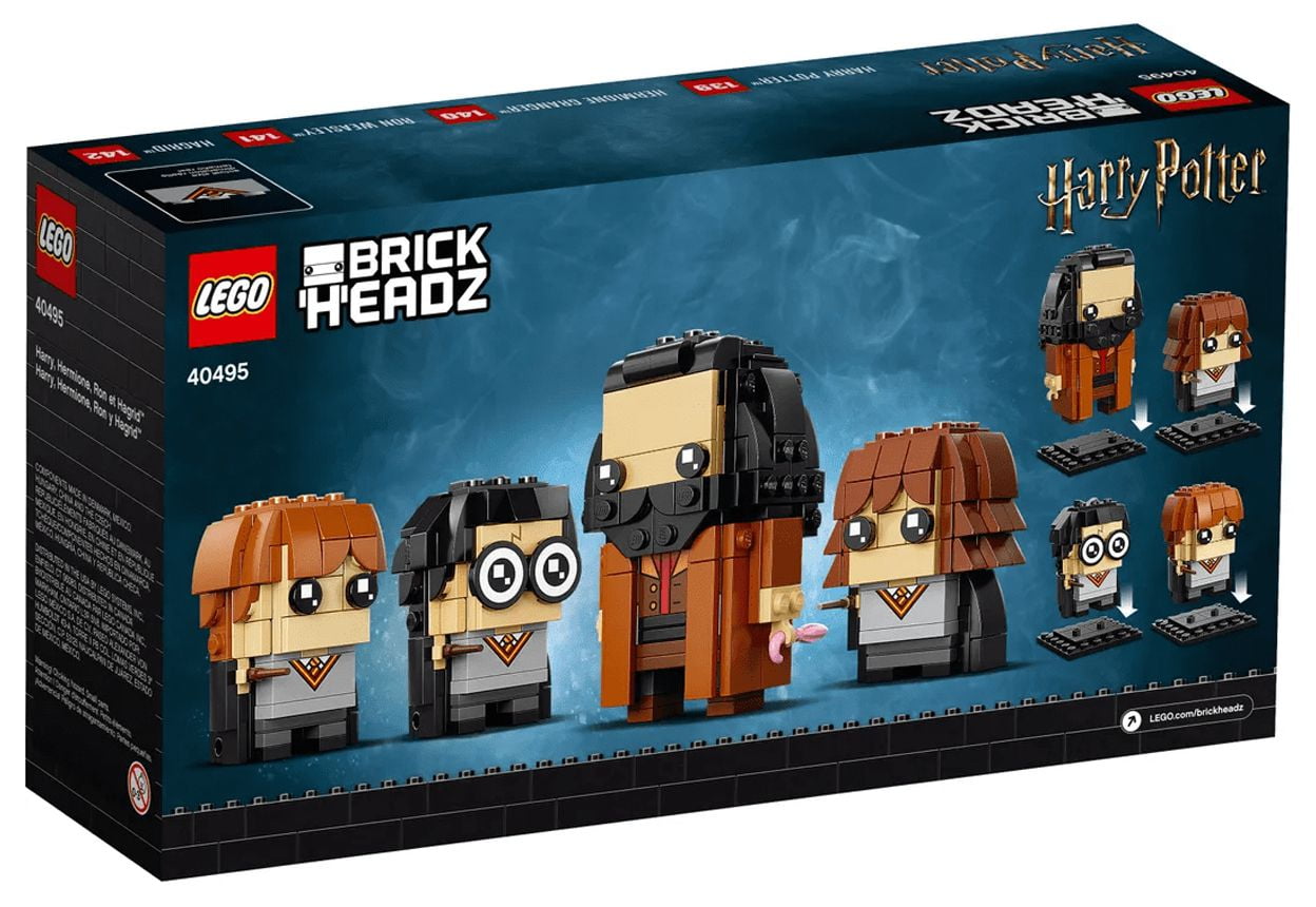 LEGO Brick Headz 40495 Harry Potter Hermione, Ron & Hagrid 466 Piece SetThe LEGO BrickHeadz Harry, Hermione, Ron & Hagrid (40495) building set lets kids create LEGO BrickHeadz models of the 4 popular Hogwarts characters in all their iconic detail. Build, play and display – Treat LEGO builders and Harry Potter fans aged 10 and up to this creative-construction gift.Harry Potter