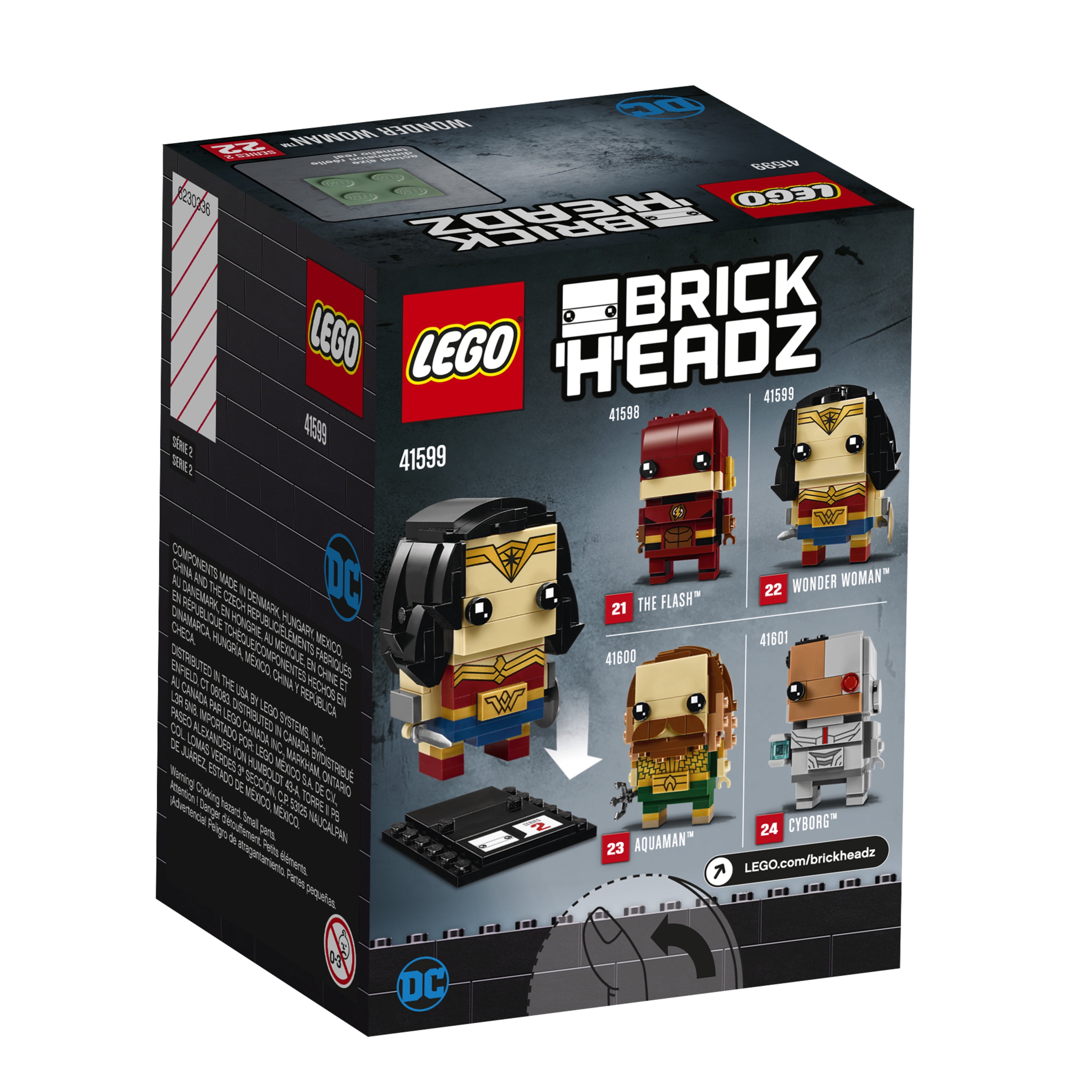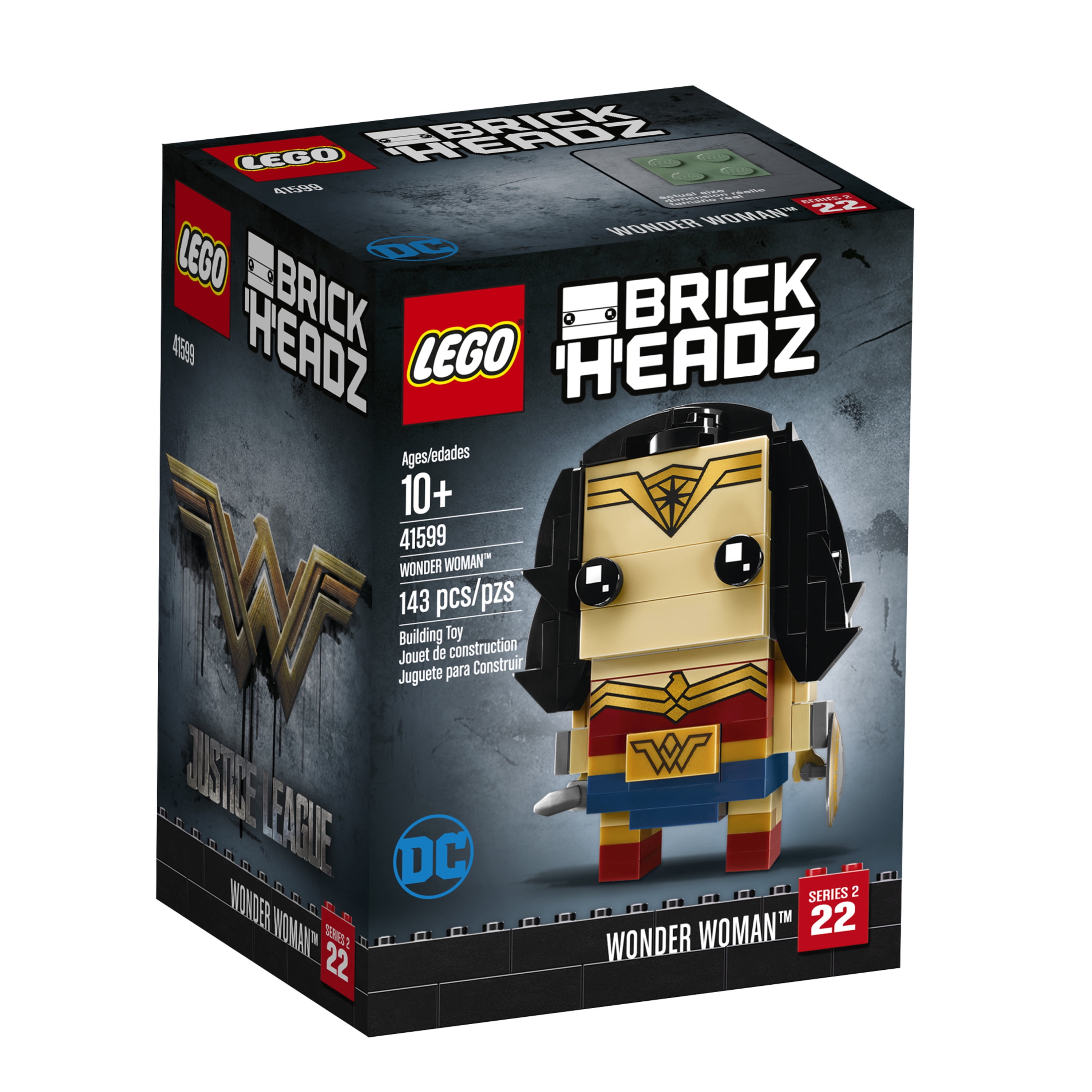 This Wonder Woman? LEGO® BrickHeadz construction character is fun to build using colorful LEGO bricks that recreate all of her iconic details, including flowing black hair, headdress and gauntlets. She also has a detachable sword and shield in her hands, and stands on a buildable collector?s baseplate with BrickHeadz icon for easy display. Add some Amazonian Warrior power to your home, office or anywhere you like.