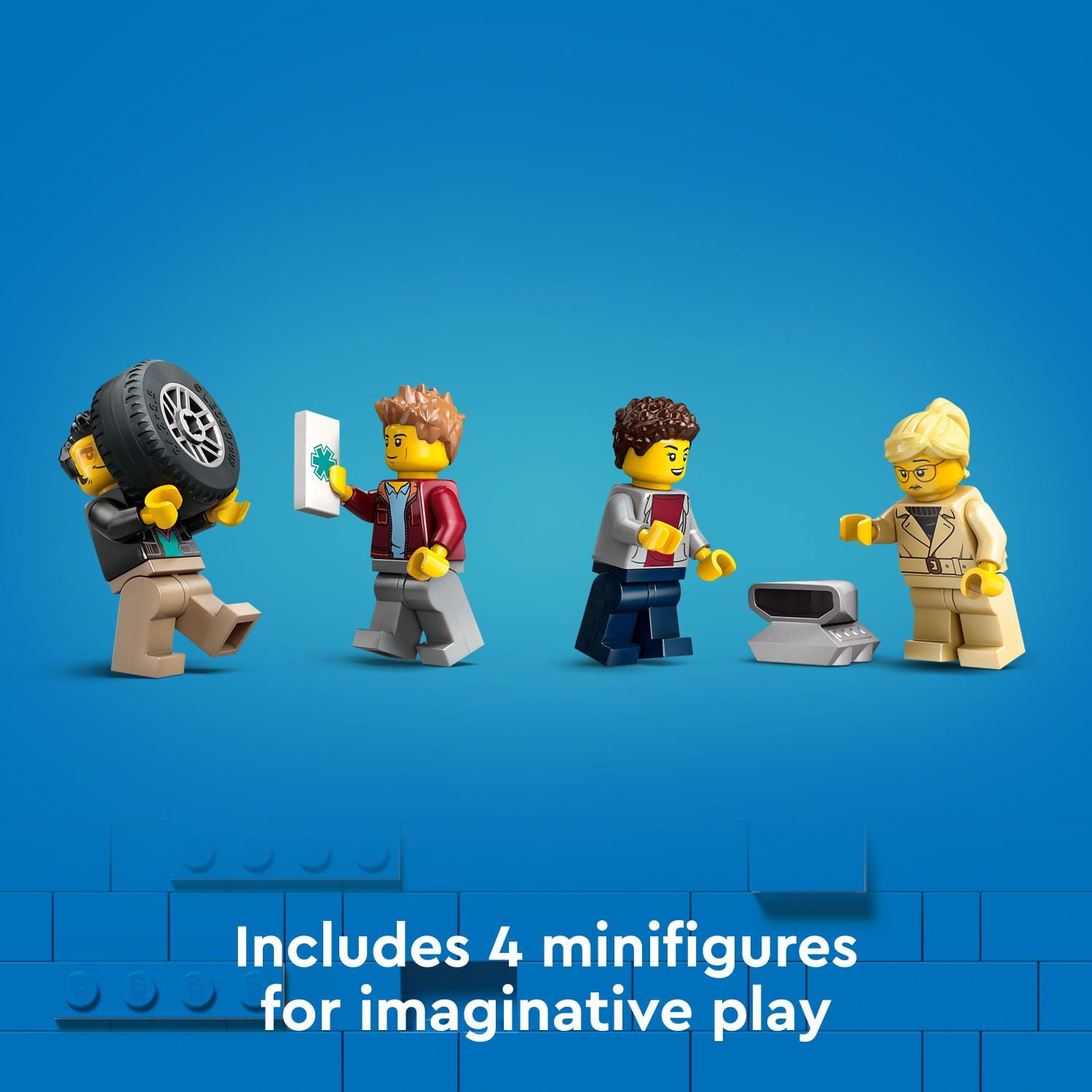 Transporter truck toy playset – Fans of toy vehicles will love this multi-vehicle LEGO City Car Transporter Truck with Sports Cars building set for boys and girls ages 7 and up What’s in the box? – This car toy construction set includes a toy truck with trailer, ’50s-style tail dragger car, ’70s-style muscle car and modern electric car model, plus 4 minifigures Fun addition to any toy car collection – Tilt the driver’s cab to access the engine, hitch the trailer and drop its upper deck and lower deck ramps for boarding the 3 toy cars for kids Vehicle transport toy with fun accessories – This creative toy playset comes with LEGO minifigure accessories for pretend play, including a toy medic kit and fire extinguisher A fun holiday or birthday kids gift idea – Give this LEGO car set building toy as a gift for boys and girls ages 7 and up A city without limits – LEGO City is a place where kids can unleash their limitless imaginations, with structures, vehicles and citizens that motivate them to build, create, explore and play Dimensions – The truck with trailer in this 998-piece LEGO City set measures over 4 in. (10 cm) high, 18 in. (46 cm) long and 3 in. (8 cm) wide