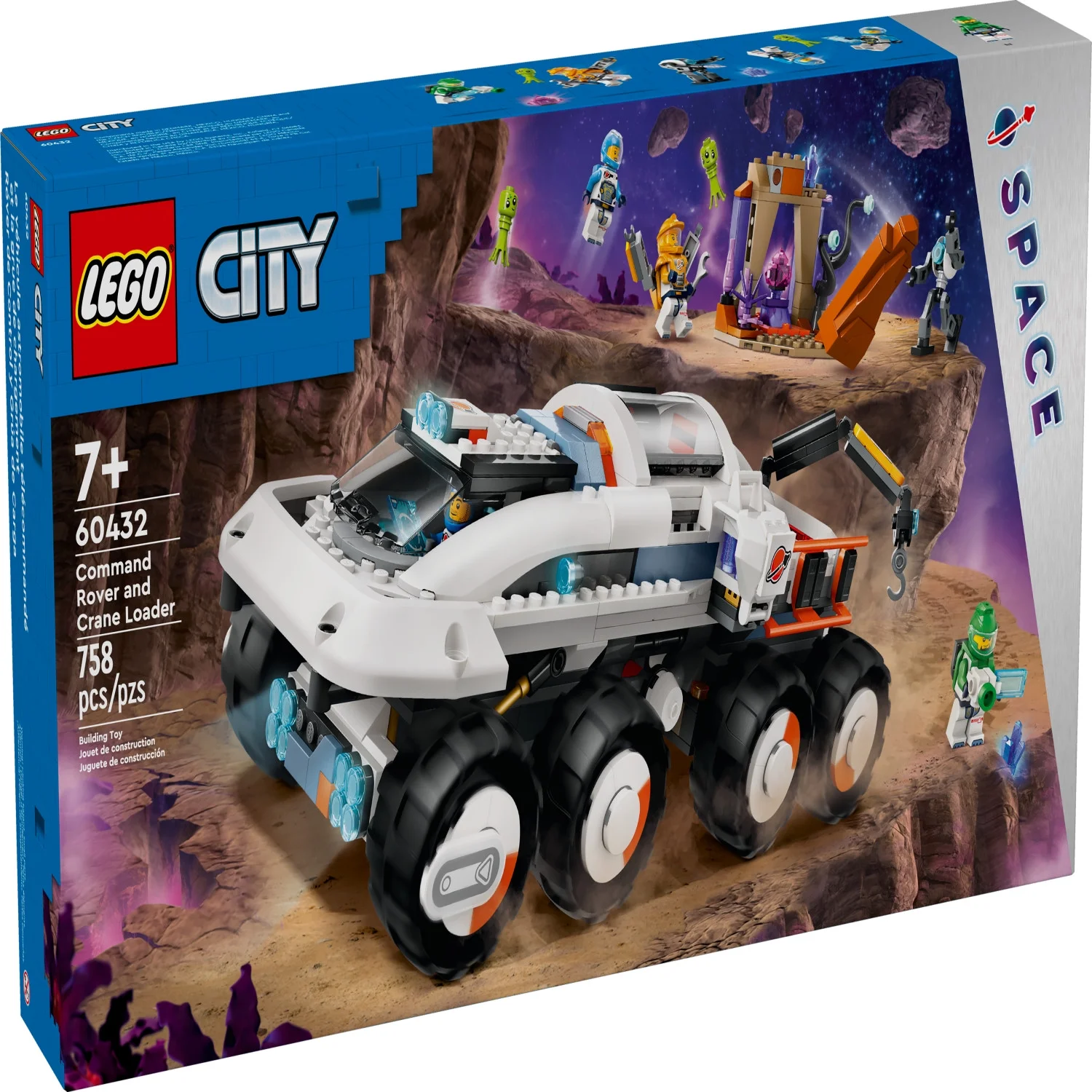 LEGO City Command Rover and Crane Loader Outer Space Toy Building Set, 4 Astronaut Toy Minifigures, Space Robot, 2 Alien Action Figures, Gift for 7 Year Old Boys, Girls, and Kids, 60432