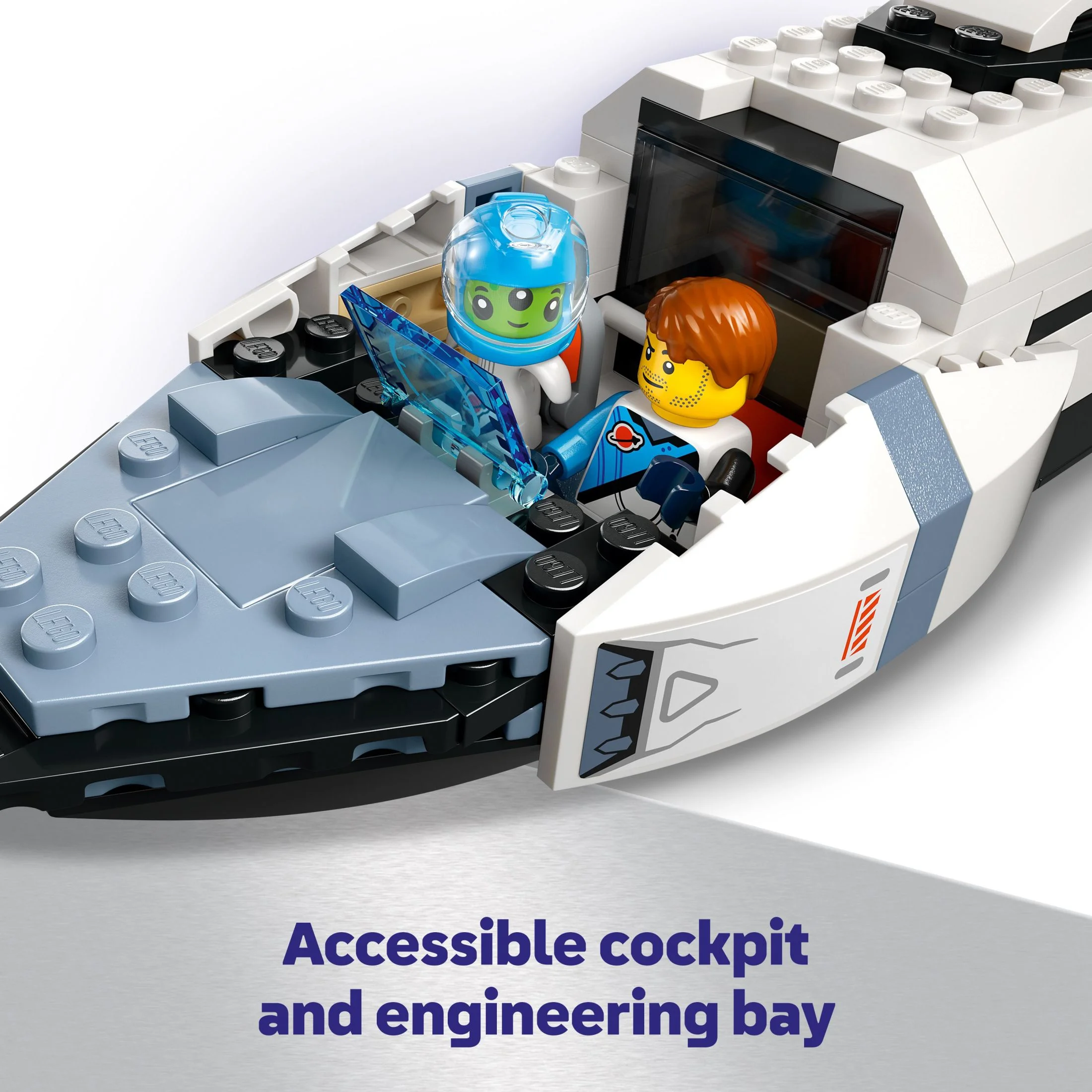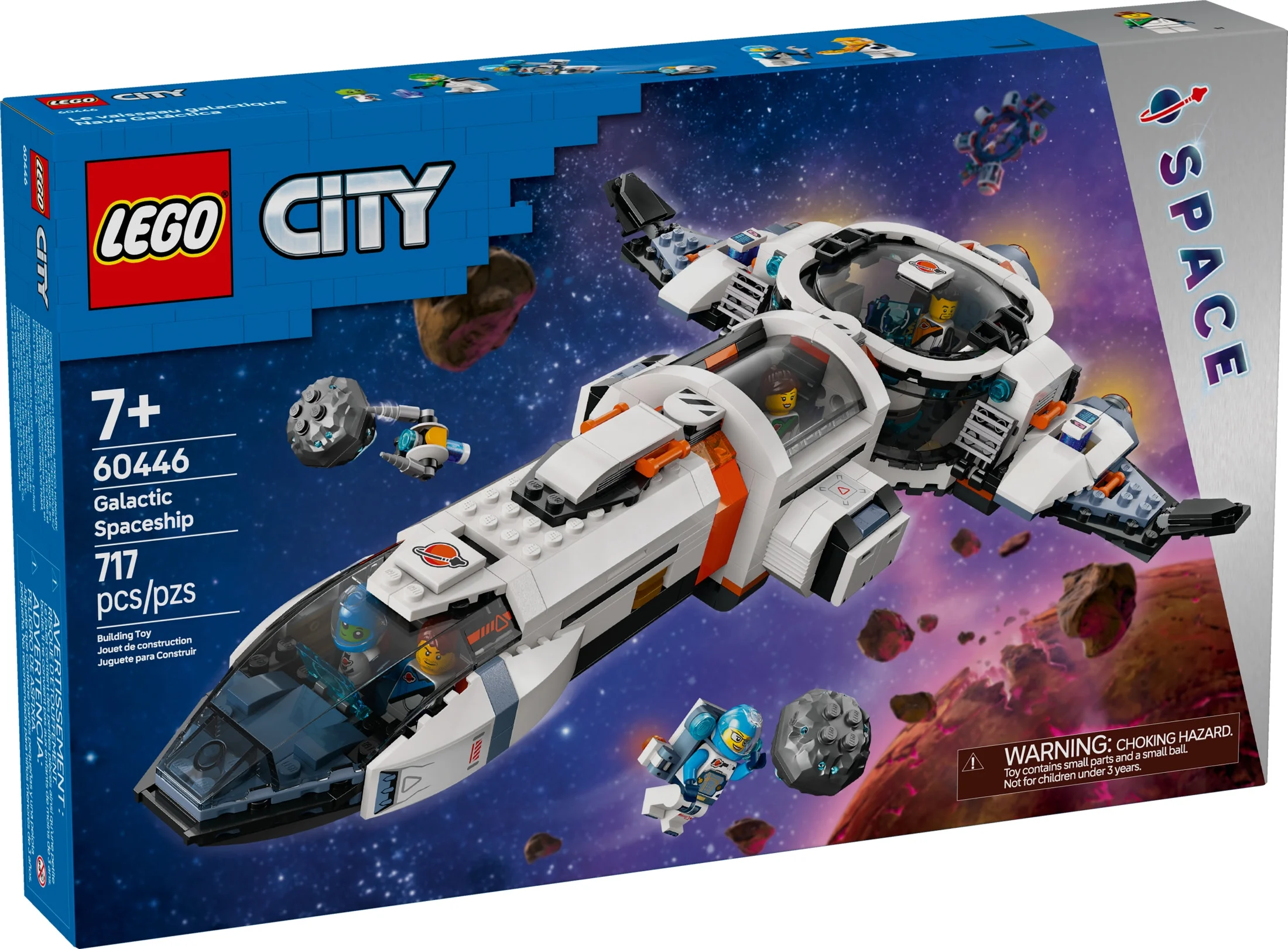 BUILDABLE SPACESHIP TOY – Young space enthusiasts can blast off for intergalactic action with this LEGO City Modular Galactic Spaceship playset SPACE TOY FIGURES & PLAYSET – Inside the box, kids will find everything they need to build a modular spaceship, 2 toy meteorites, 4 space crew minifigures, plus an alien figure and a driller robot figure SPACE SHUTTLE BUILDING TOY – Kids reconfigure the spaceship model to create a space shuttle and a land base with a lab, a medical bay and a kitchen DIGITAL INSTRUCTIONS – Space enthusiasts embark on a fun building adventure with the LEGO Builder app, where they can zoom in and rotate sets to visualize models in 3D as they build SPACE TOY GIFT IDEA – Launch kids imaginations into orbit with this playset; give it as a holiday or any-day gift for boys and girls aged 7 years old and older EXPAND THE FUN – This spaceship building set features a space airlock element that connects to other compatible space-themed LEGO playsets DIMENSIONS – The kids’ spaceship toy in this 717-piece set measures over 2.5 in. (6 cm) high, 15.5 in. (39 cm) long and 11.5 in. (29 cm) wide