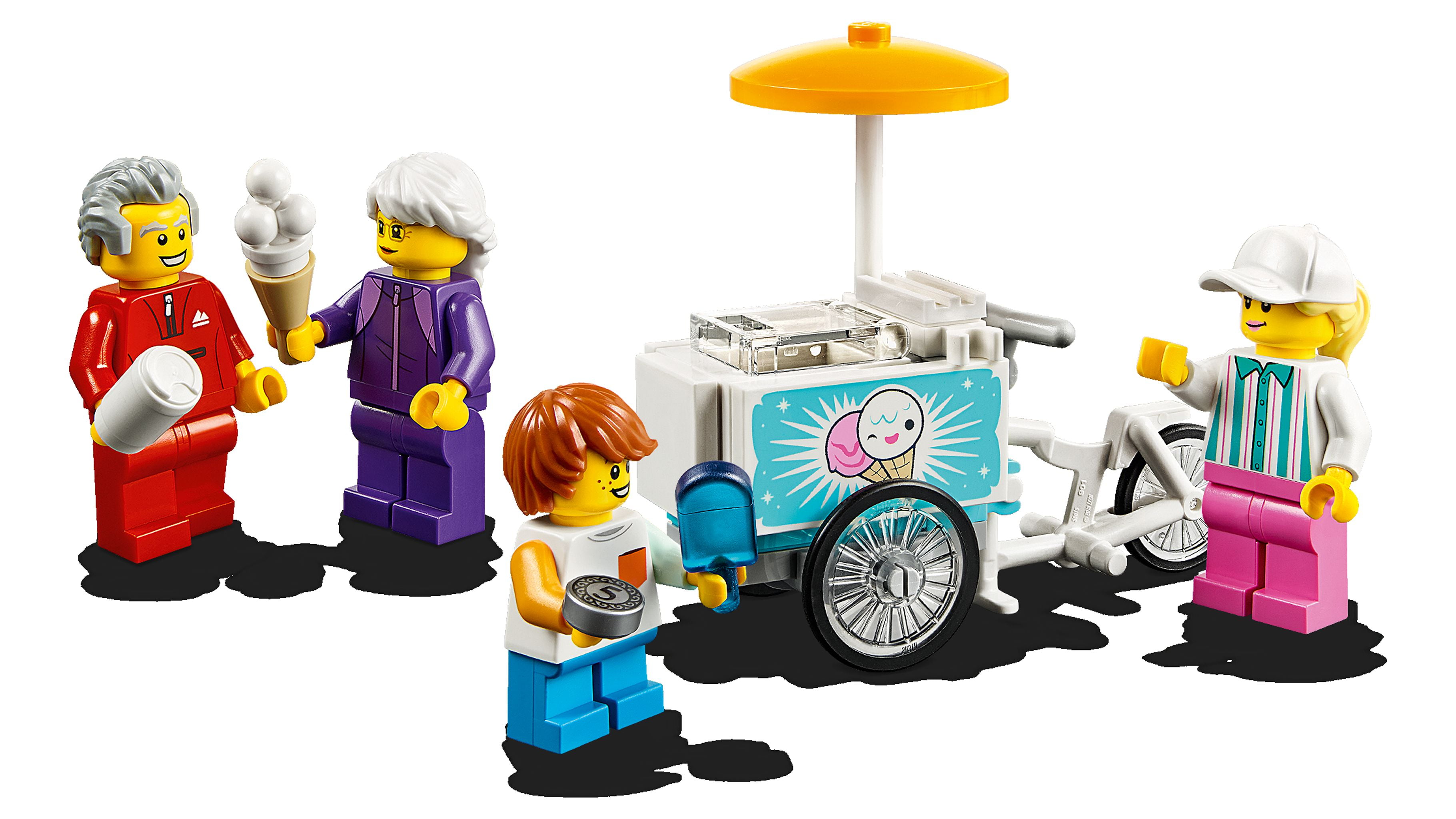 Includes 14 LEGO City minifigures: a stilt walker, 2 boys, 2 girls, 2 teenagers, grandpa, grandma, mom, dad, face painter, ice cream vendor and a fun fair stand worker Accessory elements include 2 rings, 3 new rubber ducks, a new whirly hat, ice cream cone, popsicle, paintbrush, 6 paint pots, teddy bear prize, 3 studs, balloon animal, hot dog and a buildable mallet Ice cream cargo bike measures over 2” (6cm) high, 2” (7cm) long and 1” (4cm) wide Shooting gallery game measures over 1” (4cm) high, 1” (5cm) wide and 1” (4cm) deep Duck pool ring toss game measures over 1” (3cm) wide and 1” (3cm) deep Strength test measures over 3” (8cm) high, 1” (3cm) wide and 1” (3cm) deep