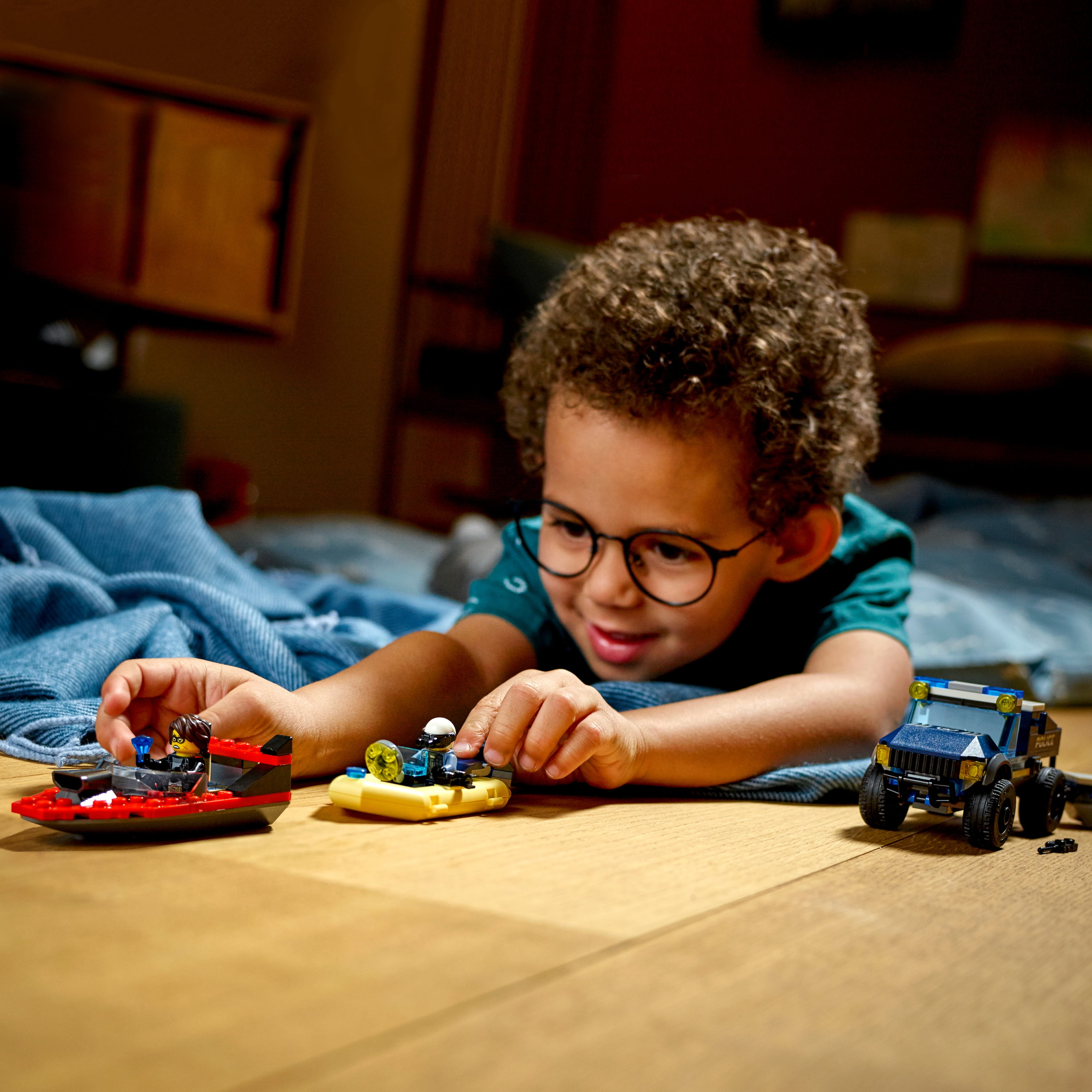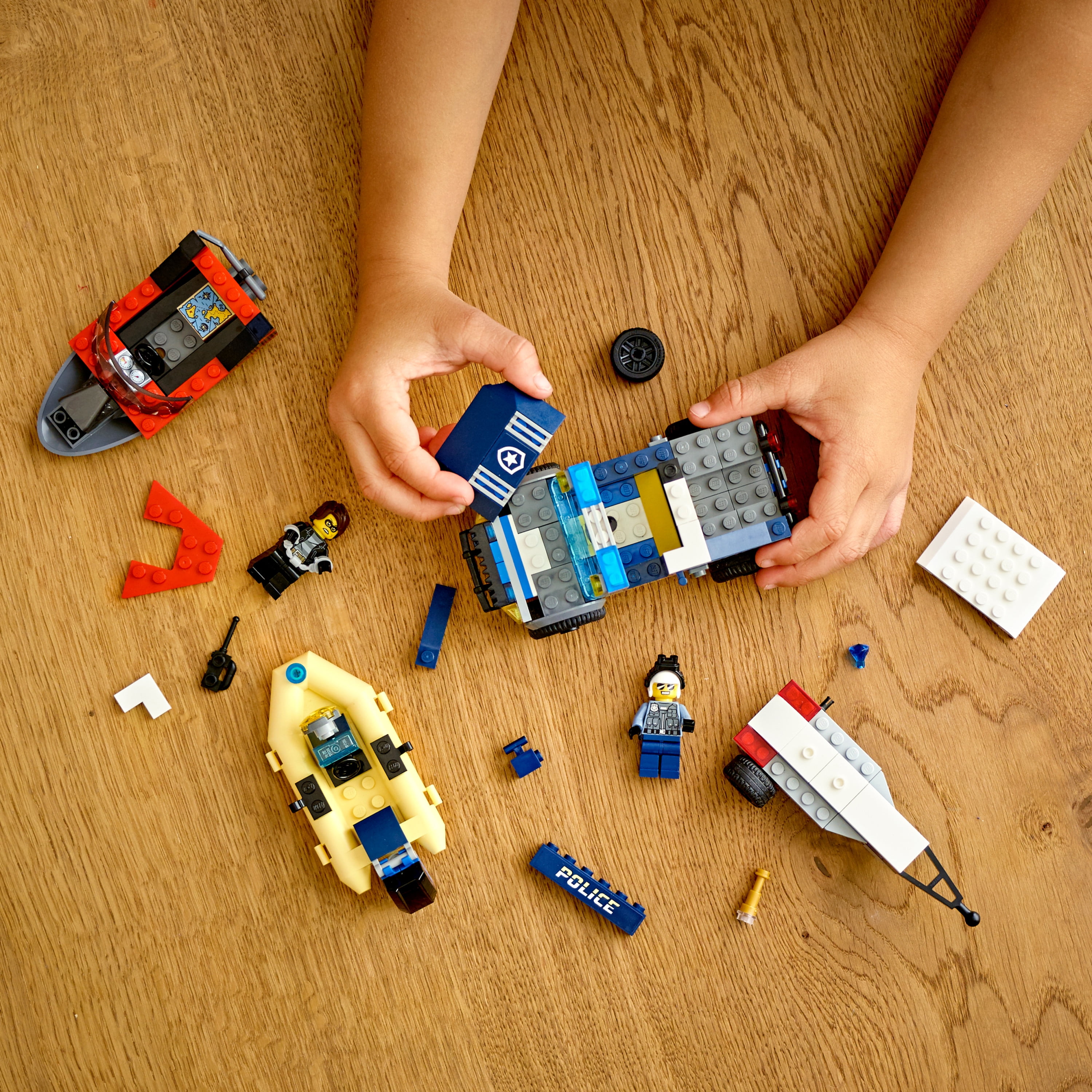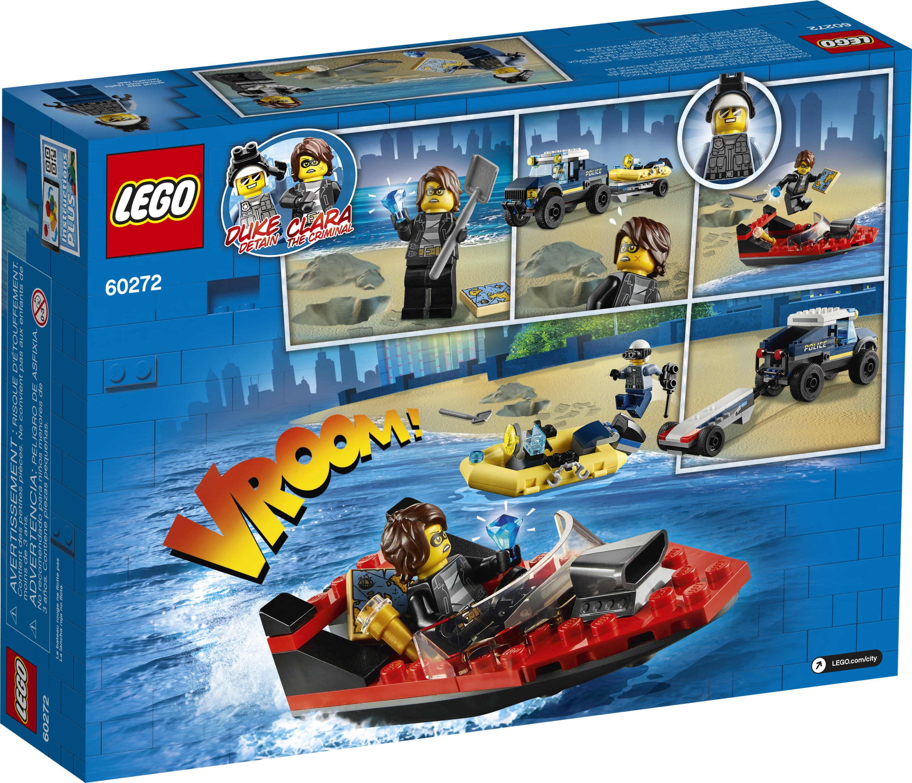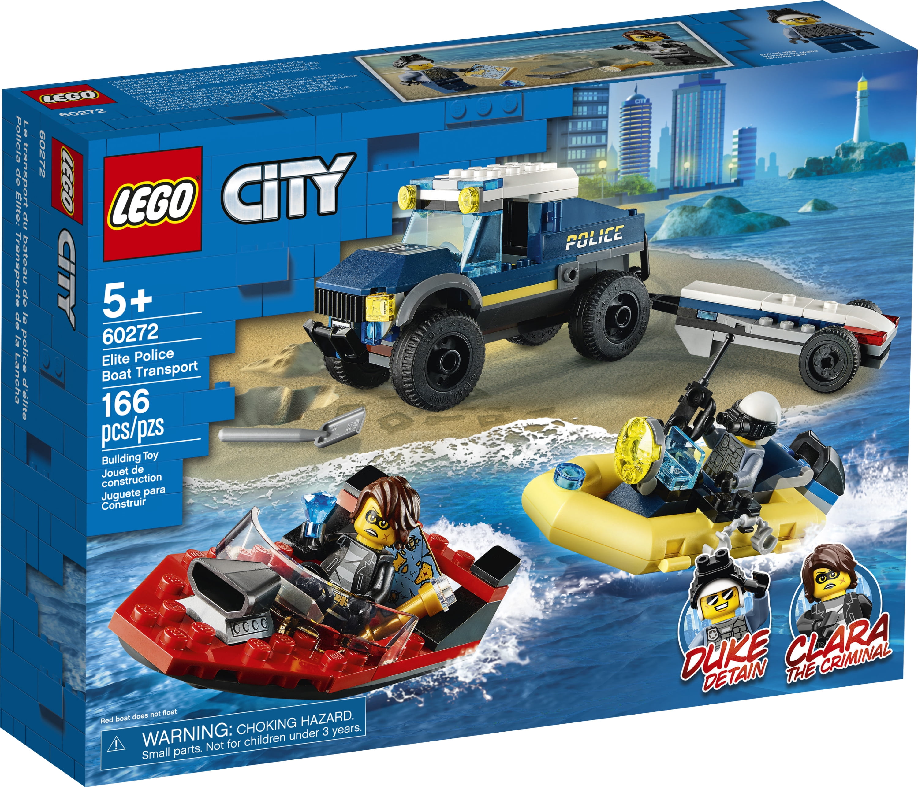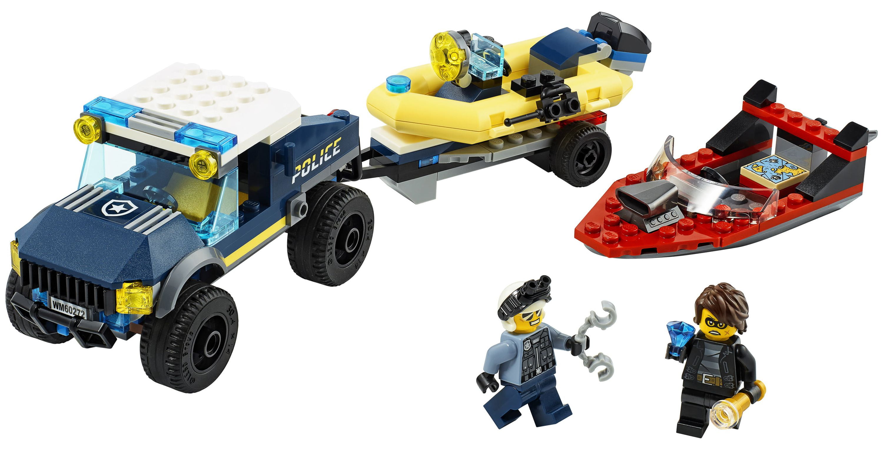 Youngsters love to role-play everyday heroes, and with this LEGO® City Elite Police Boat Transport (60272) playset they can do just that! There’s a cool police armored off-roader with detachable boat trailer, a police dinghy and a cool speedboat. Add to that the popular LEGO City Adventures TV series characters lieutenant Duke DeTain and Clara the Criminal, and the scene is set for action-packed LEGO fun. Fun and easy to build This awesome building toy comes with simple building instructions, but you also get Instructions PLUS – part of the free LEGO Building Instructions app for smartphones and tablets. This interactive building guide, with amazing zoom and rotate viewing tools, quickly helps budding LEGO builders become master builders. Cool toys for kids LEGO City Elite Police playsets deliver exciting play scenarios that reflect real life in a fun and imaginative way. The realistic vehicles and fun characters stimulate imaginative, open-ended role play and creativity for children aged 5 and up.