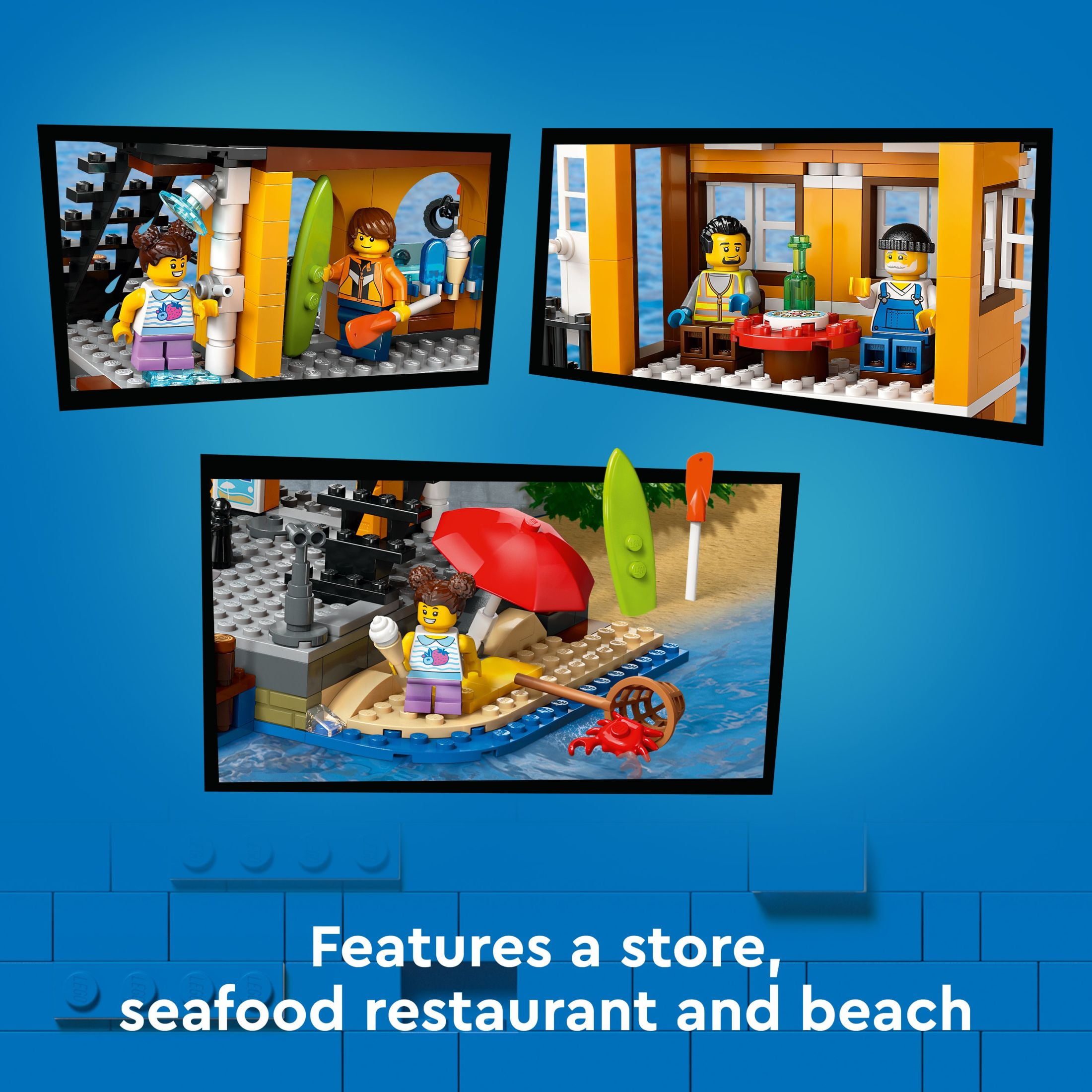 Seaside harbor and cargo ship toy – Bring a cozy quayside vibe to kids’ play with this LEGO City Seaside Harbor with Cargo Ship playset for boys and girls ages 8 and up What’s in the box? – This creative building toy includes a LEGO ship, 2 cargo containers, a working container crane, a harbor with a store and restaurant, water scooter, paddleboat, and 8 minifigures A building toy for kids who love imaginative play – Kids can access the cargo ship’s engine, bridge and hull and operate the crane to load and unload the containers of toy vehicles LEGO minifigure accessories – This adventure playset comes with fun accessories for pretend play, including a fishing rod, wrench, 2 walkie-talkies, crab net and a crab figure A fun kids’ gift idea – Give this LEGO building toy as a holiday gift, birthday gift, or for any other special occasion Digital building fun – This LEGO City boat-themed set features instructions in the LEGO Builder app, where kids can save sets, track progress and zoom in and rotate models in 3D while they build Dimensions – The harbor in this 1,226-piece building set measures over 9.5 in. (25 cm) high, 18 in. (45 cm) wide and 11.5 in. (30 cm) deep