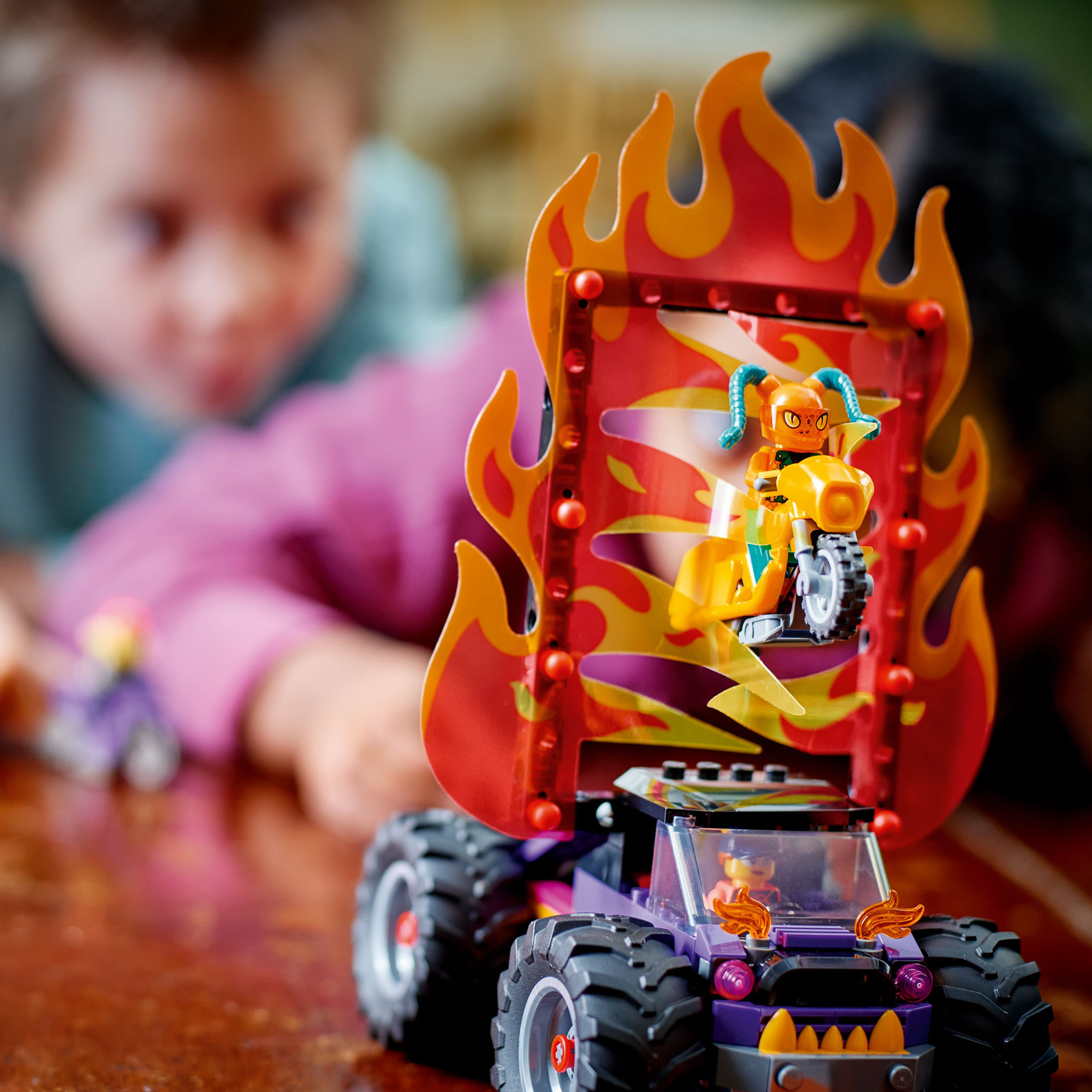 LEGO City Stuntz Double Loop Stunt Arena 60339, Monster Truck Playset with 2 Toy Motorcycles, Ramp, Wall of Flames, Ring of Fire, Snapping Snake Loop and 7 Minifigures, for Kids Ages 7 Plus