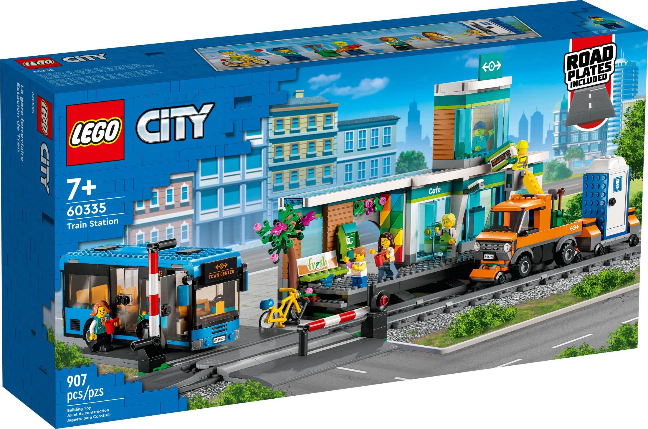 Set the scene for imaginative play with this LEGO City Train Station (60335) building toy set for kids 7+ years old. This toy Train Station is packed with cool features, including a ticket office, coffee bar, control room, platform with tree shaded bench for travelers and a train track piece that’s compatible with other LEGO City train sets. Kids also get a toy bus, a road-and-rail cherry-picker truck toy with a portable toilet in tow, plus a level crossing with a LEGO City Road-Plate for connection to other City sets. Just add the 6 minifigures: a station worker, bus driver, engineer, plus 3 passengers to let the adventures begin. Kids can help the engineer aboard the road-and-rail cherry-picker truck or join the bus driver for fun excursions aboard the cool toy bus. There are endless scenarios to act out with this fun buildable toy and when the day’s play is over this set looks great on display in kids’ bedrooms. This toy Train Station playset comes with easy-to-follow building instructions for each model, so kids can choose to build their own LEGO toys or join friends and family members for a fun group building experience. LEGO City sets put kids at the heart of the action with realistic vehicles, feature-rich structures and inspiring characters for fun role play that’s based on real-life scenarios and they make great birthday, Christmas or any time gift ideas. When built, the toy Train Station measures over 8 in. (21 cm) high, 14.5 in. (37 cm) wide and 4.5 in. (12 cm) deep. Contains 907 pieces.