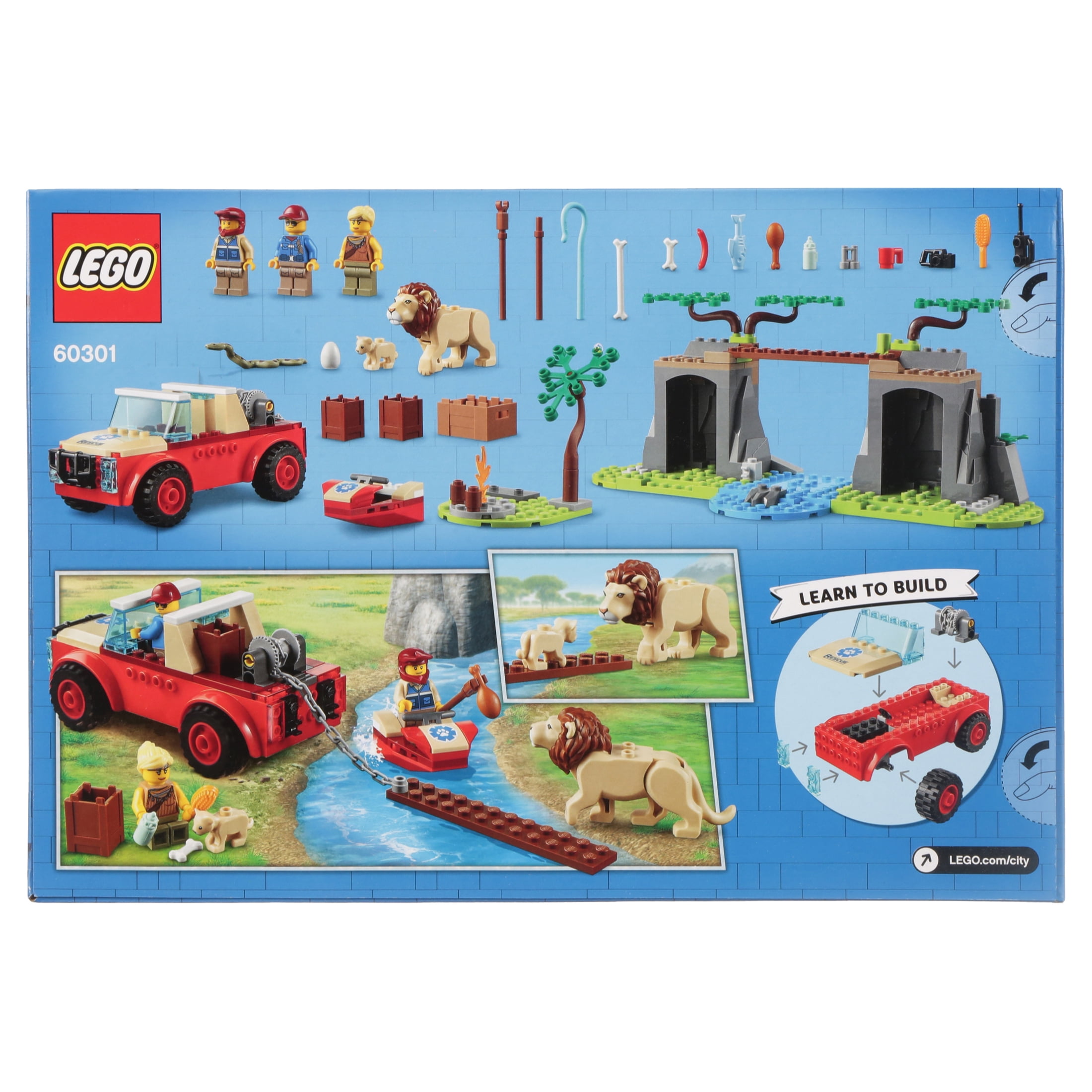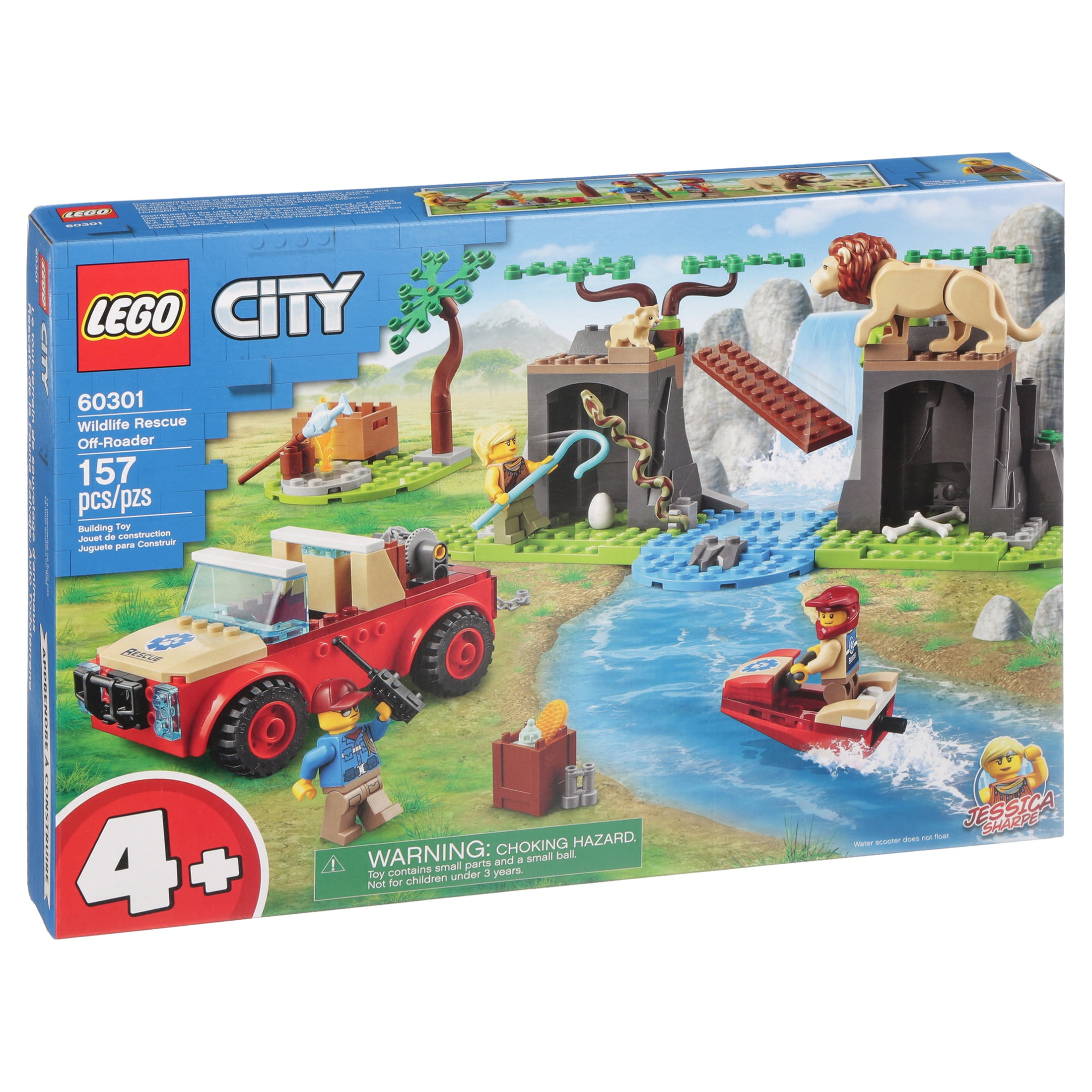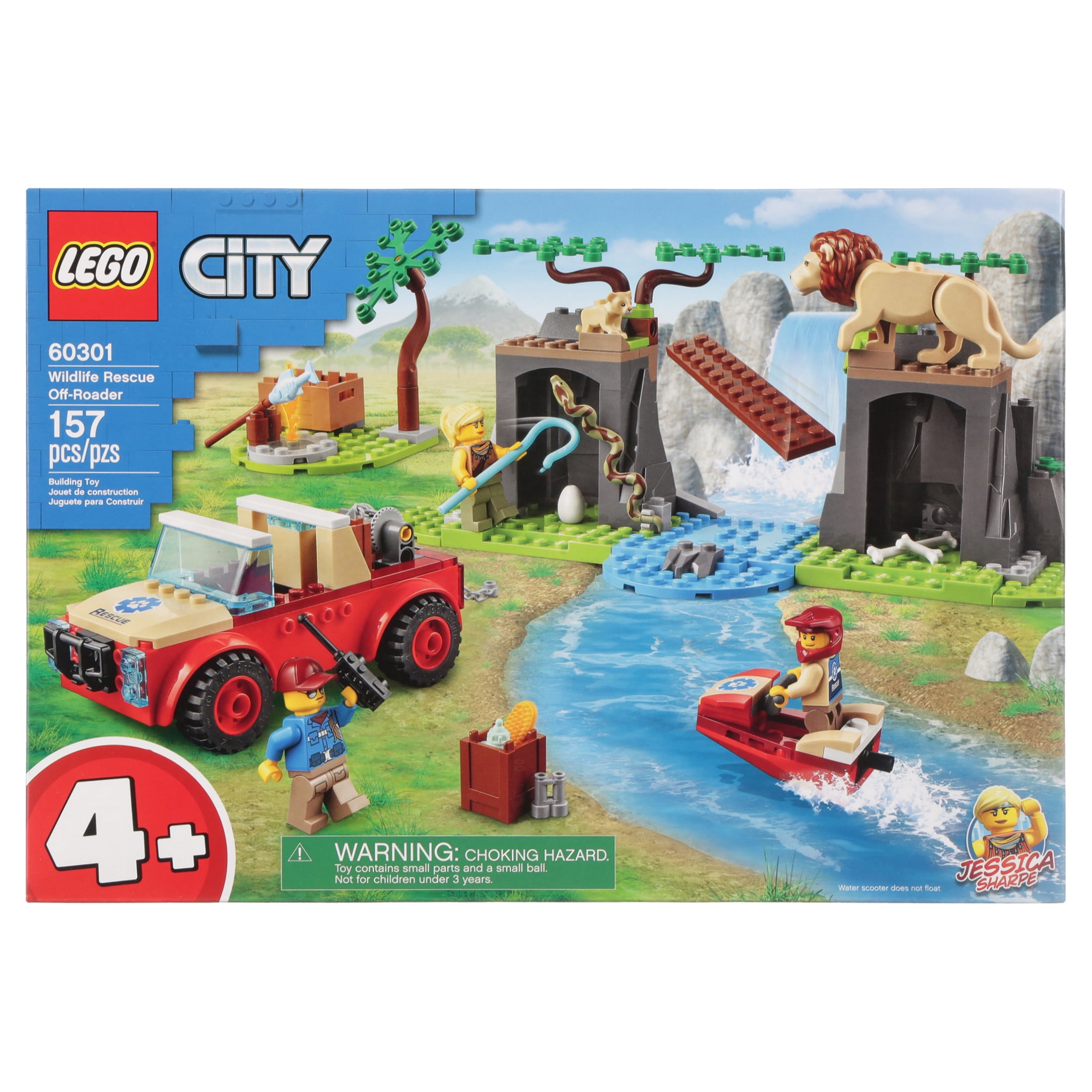 Kids can become everyday heroes with this LEGO 60301 City Wildlife Rescue Off-Roader playset, featuring an animal-rescue team including LEGO City Adventures TV series hero Jessica Sharpe, plus a lion, lion cub, and a snake with its egg. Just add the river setting, toy water scooter and 4×4 to set the scene for exciting wildlife-rescue adventures. LEGO 4+ sets deliver hours of fun for kids, friends and families. Each set comes with a simple building guide and a Starter Brick element to help youngsters along. And with 4+ sets, you also get Instructions PLUS – part of the LEGO Building Instructions app. This interactive building guide, with zoom and rotate viewing tools, really does make LEGO building child’s play. LEGO City Wildlife playsets put kids at the heart of the action, with iconic animals, realistic settings, cool vehicles and inspiring characters that stimulate imaginative role play based on real-life events. Measures about 5 1/2-inches long x 2 1/2-inches wide x 2-inches tall. The LEGO 60301 City Wildlife Rescue Off-Roader includes 157 pieces. Ages 4 and up.